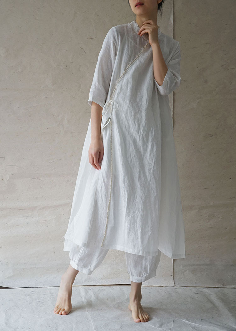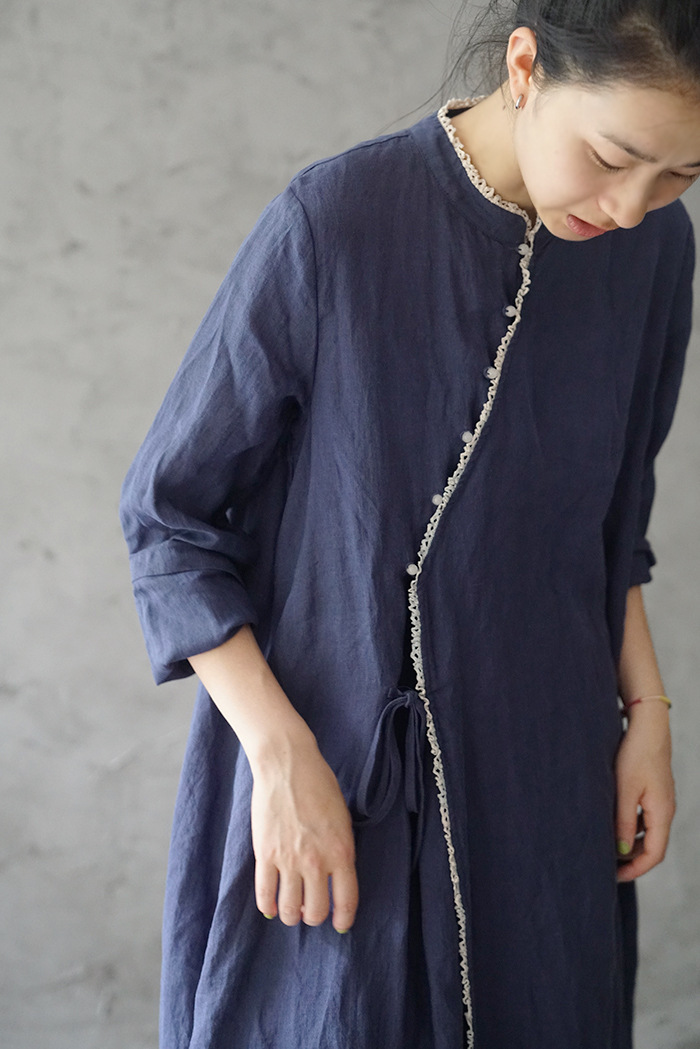 원래 국가 스타일 슬랜트 플래켓 레이스 비드 라미 원피스 새로운 중국 스타일 개선 청삼 우아한 원피스 L2002