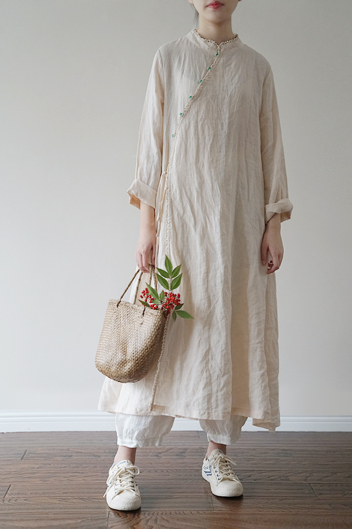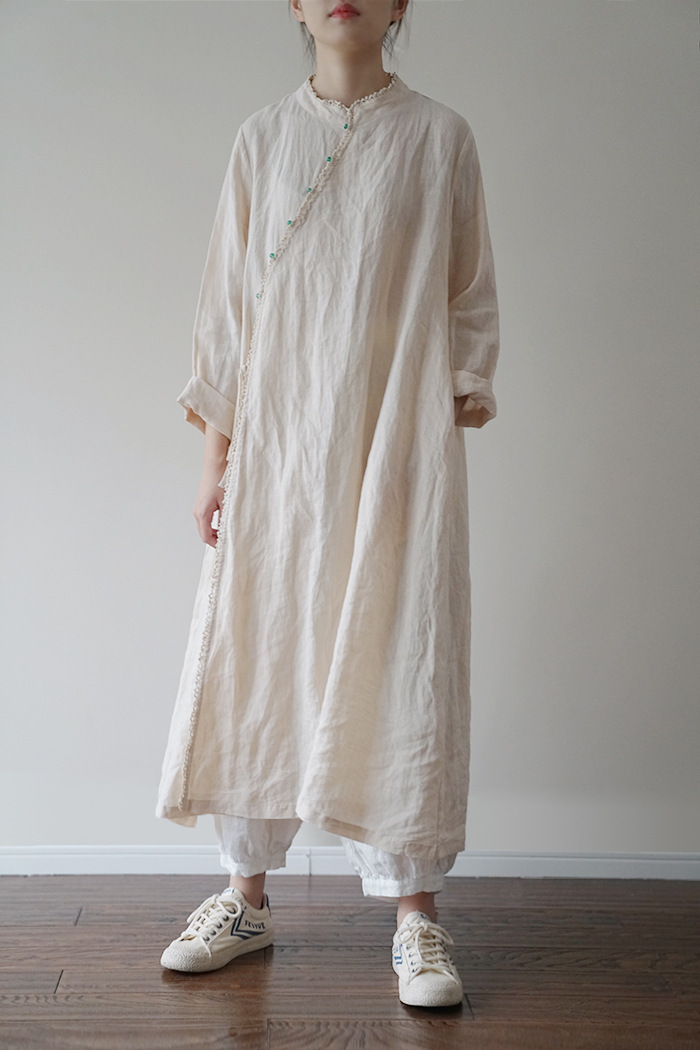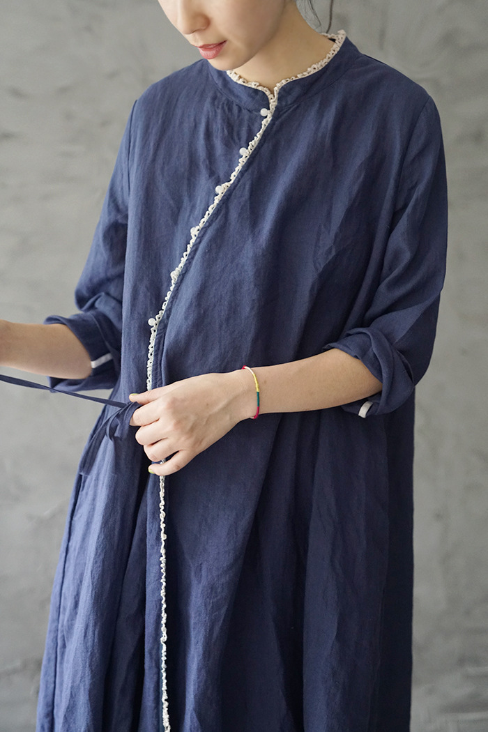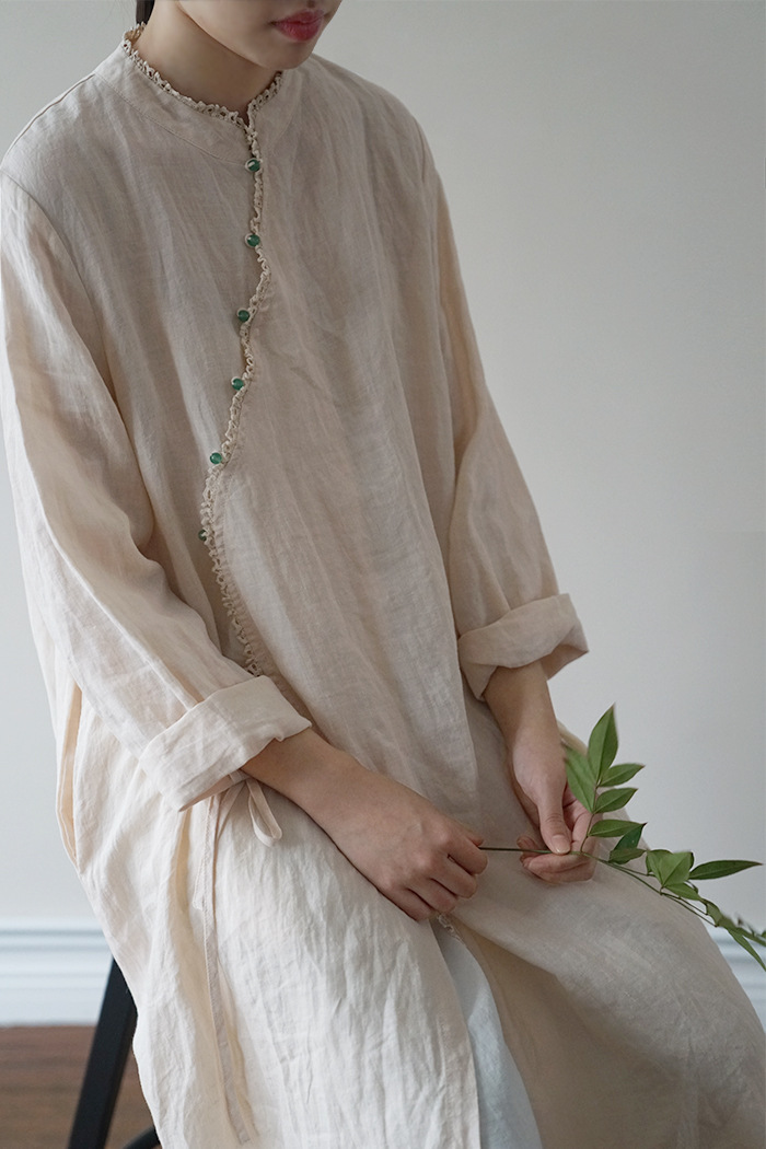 원래 국가 스타일 슬랜트 플래켓 레이스 비드 라미 원피스 새로운 중국 스타일 개선 청삼 우아한 원피스 L2002스토어 가기