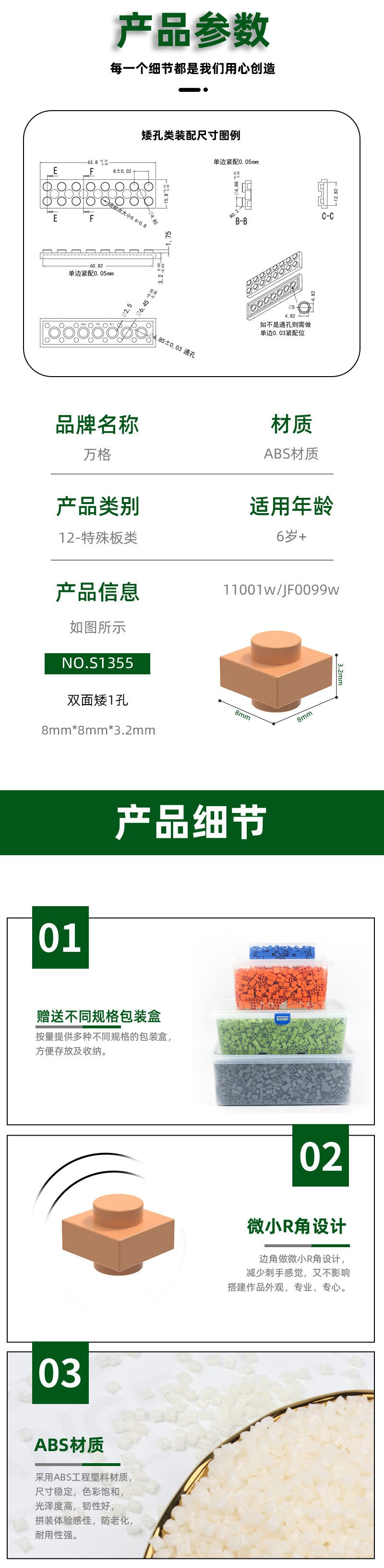 완게 청해 소형 블록 11001W 조립 부품 양면 낮은 1홀 장난감 해외 도매 MOC 맞춤 제작
