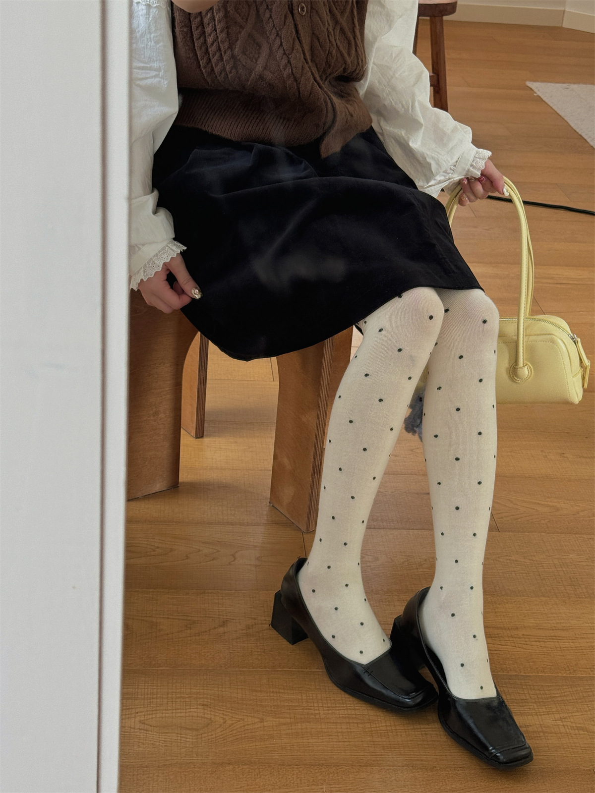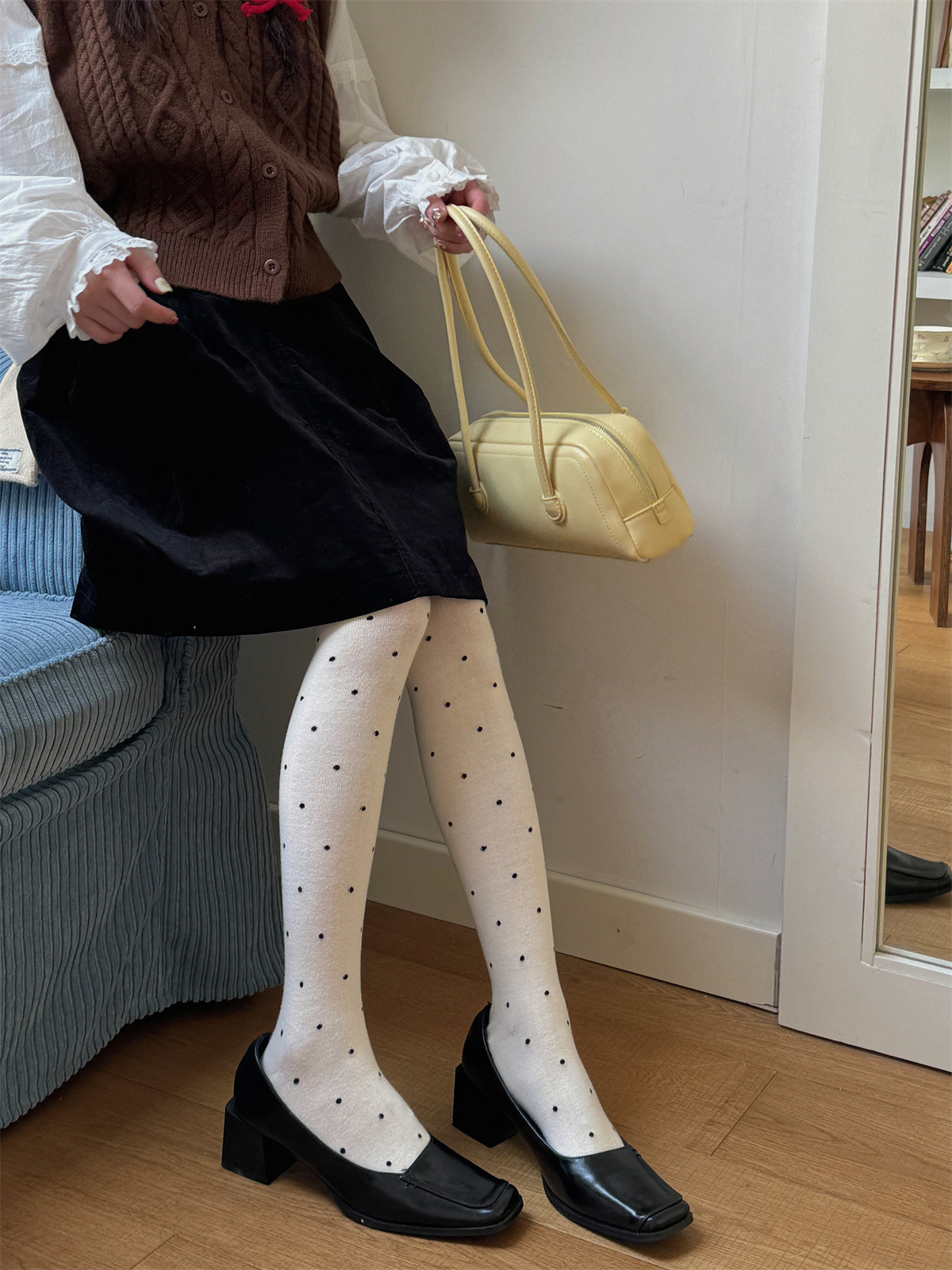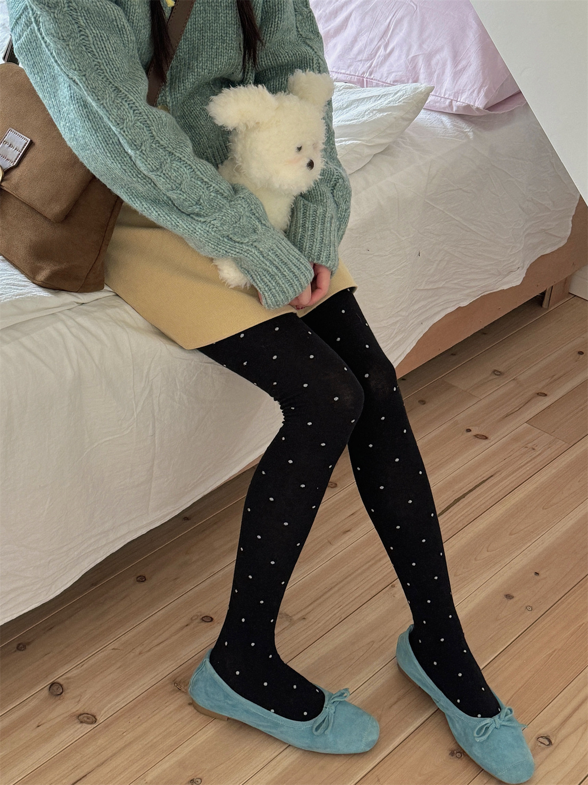 IOULOR 복고풍 웨이브 포인트 팬티 스타킹 달콤한 소녀 유행 에어로빅 코튼 레깅스 슬림 조커 팬티 스타킹 도매스토어 가기