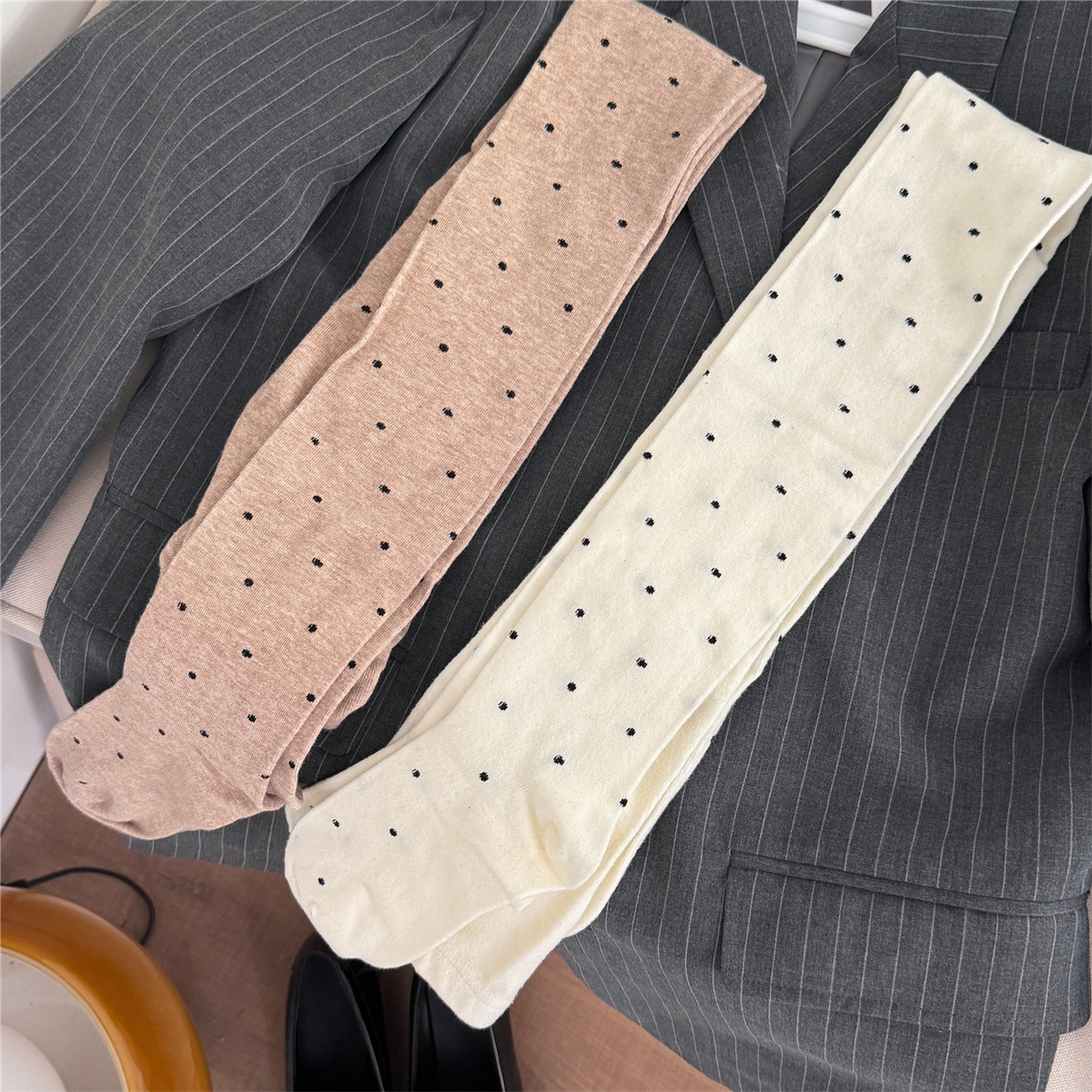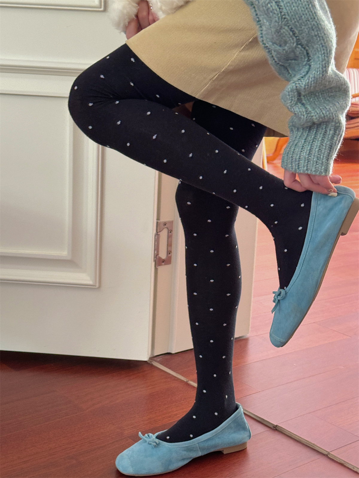 IOULOR 복고풍 웨이브 포인트 팬티 스타킹 달콤한 소녀 유행 에어로빅 코튼 레깅스 슬림 조커 팬티 스타킹 도매