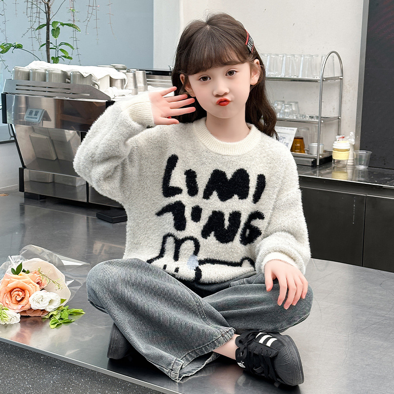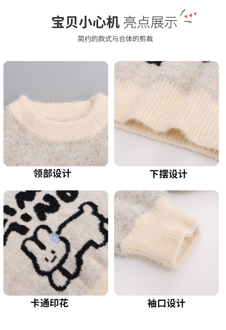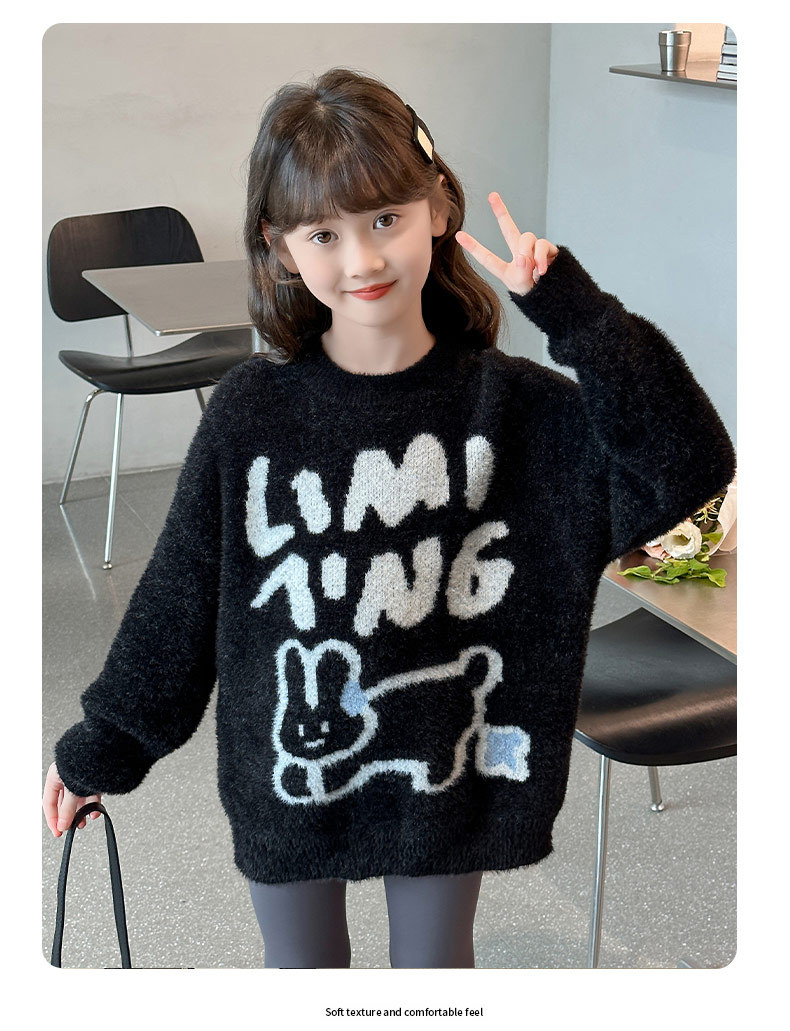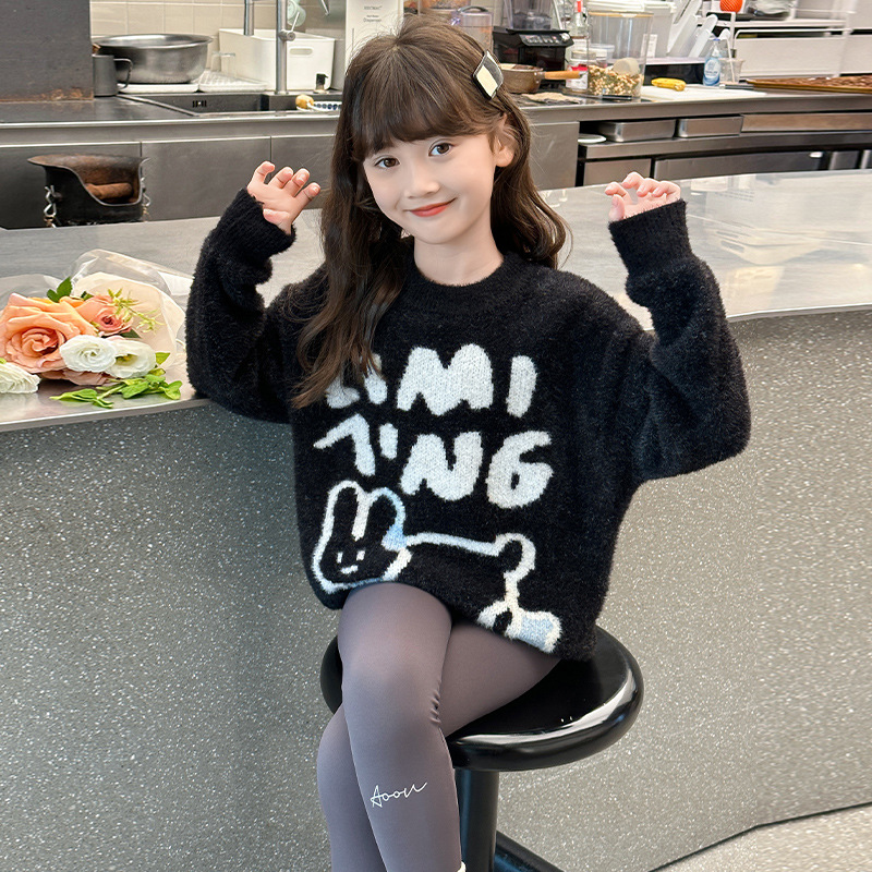한국식 게으른 스타일 모방 밍크 스웨터 소녀를위한 겨울 두꺼운 느슨한 분위기 니스 니트 풀오버 탑 트렌디스토어 가기