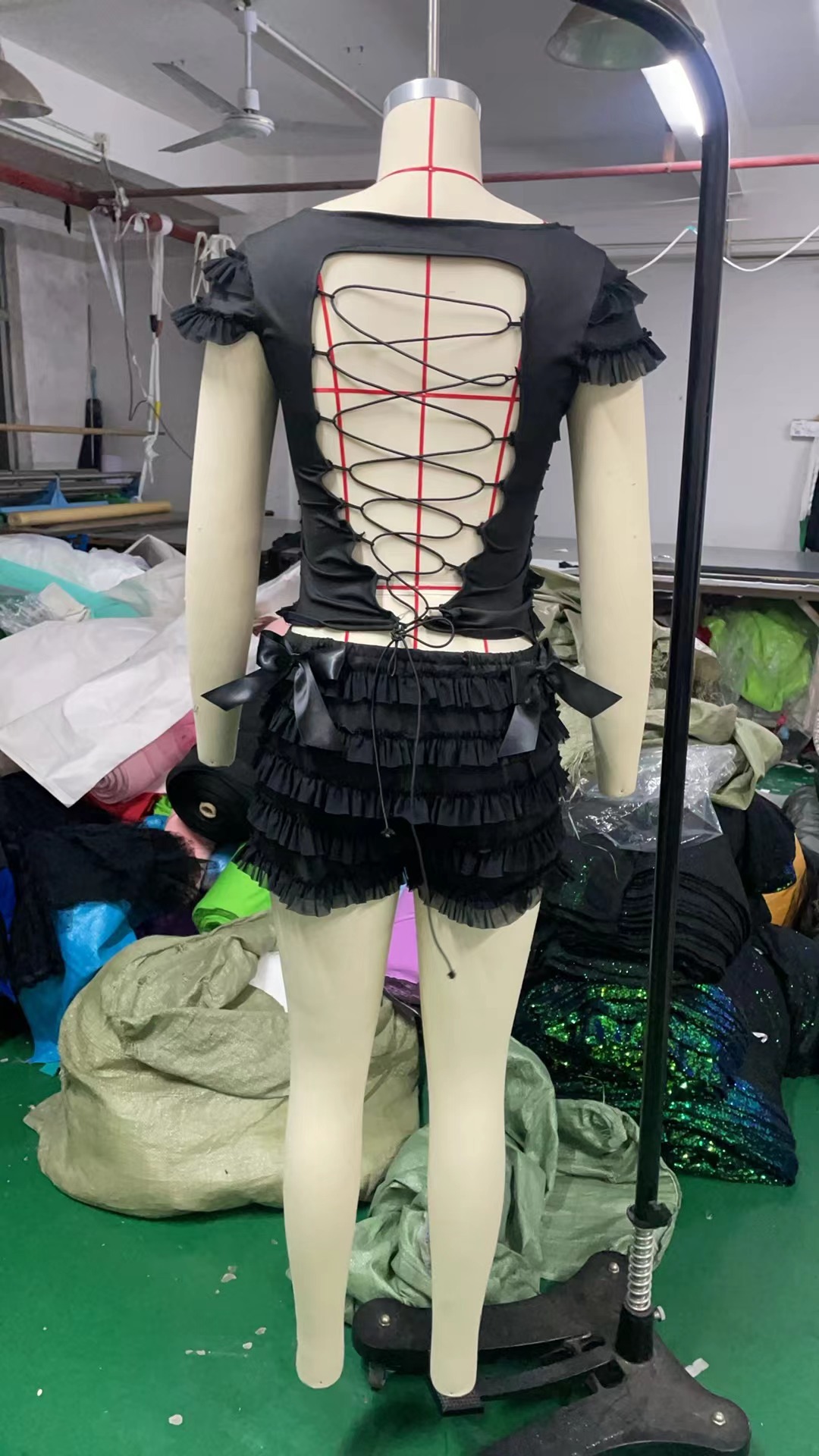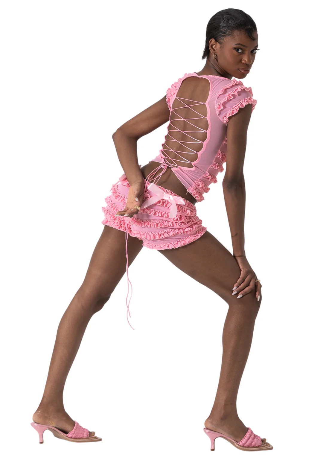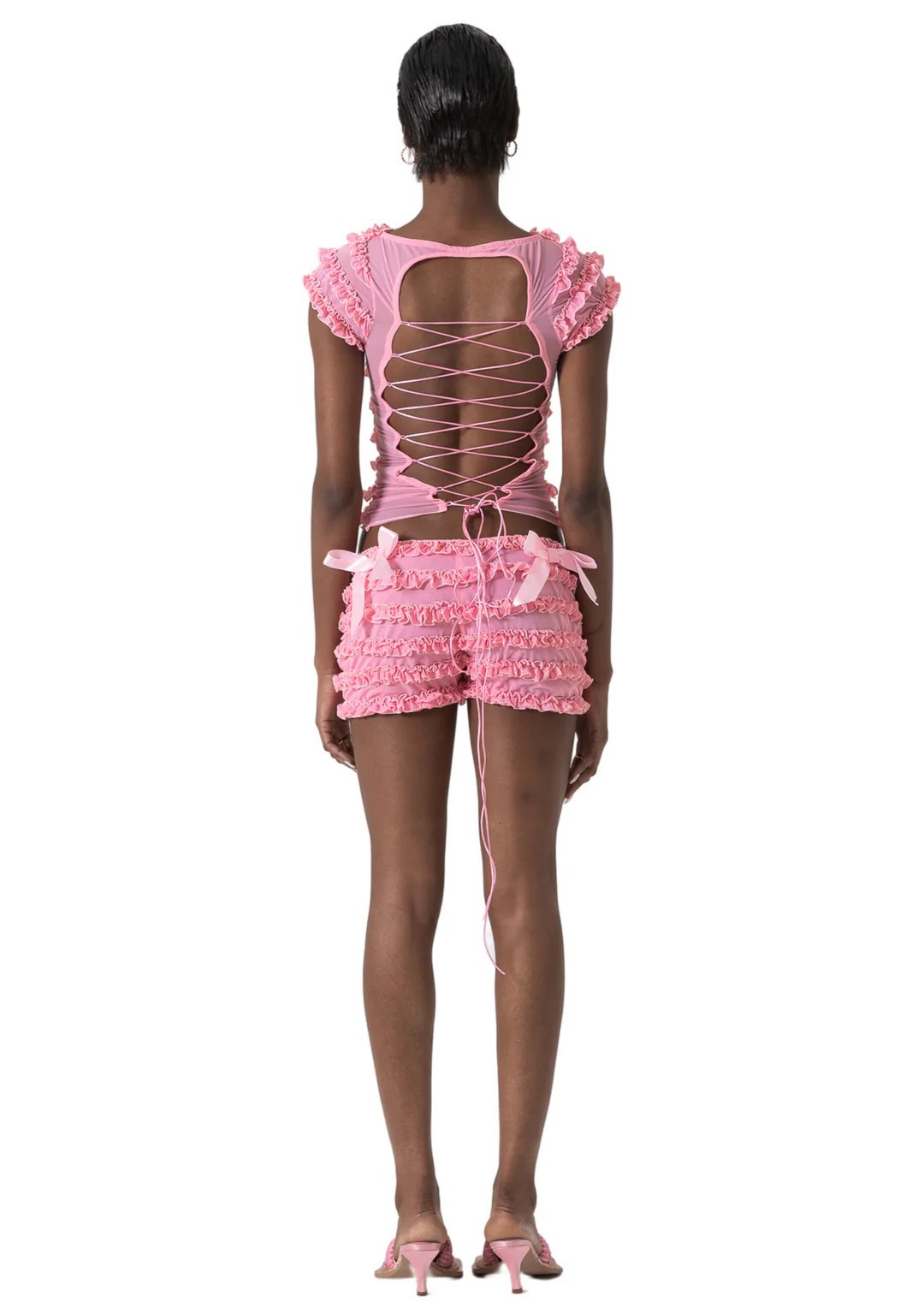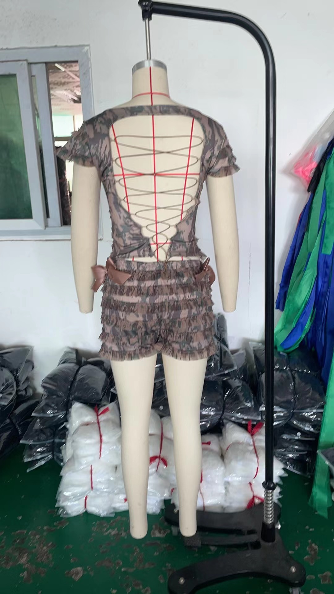 국경 간 달콤한 스파이스 소녀 컷 아웃 스트랩 카미 솔 여성의 여름 레이스 레이스 퍼프 반바지 두 조각