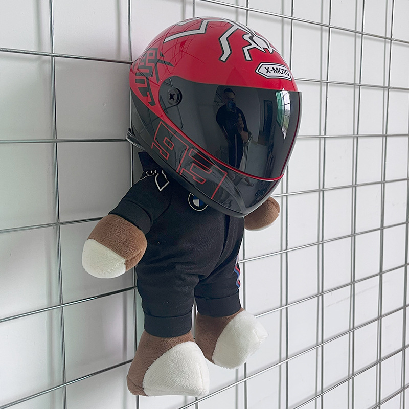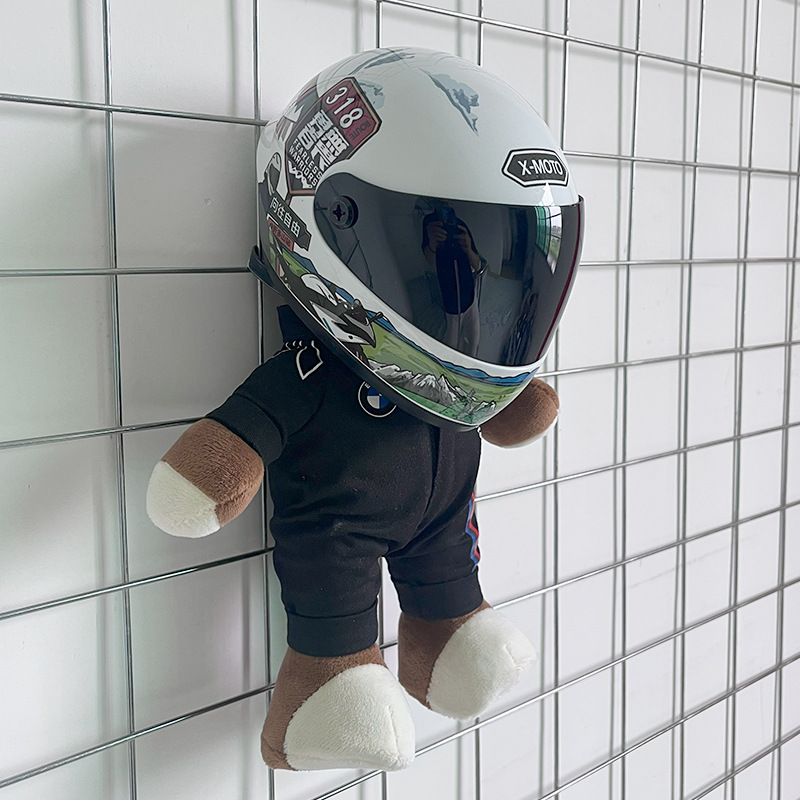 오토바이 곰 헬멧 오토바이 뒷좌석 장식 인형 리 곰 플러시 장난감 오토바이 트렁크 펜던트 인형스토어 가기
