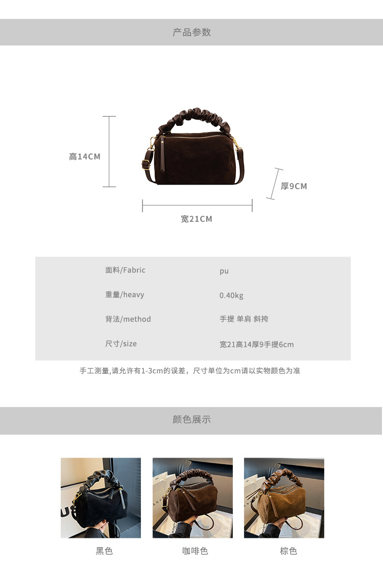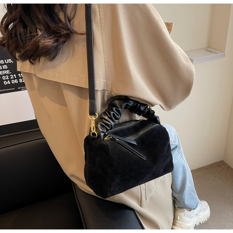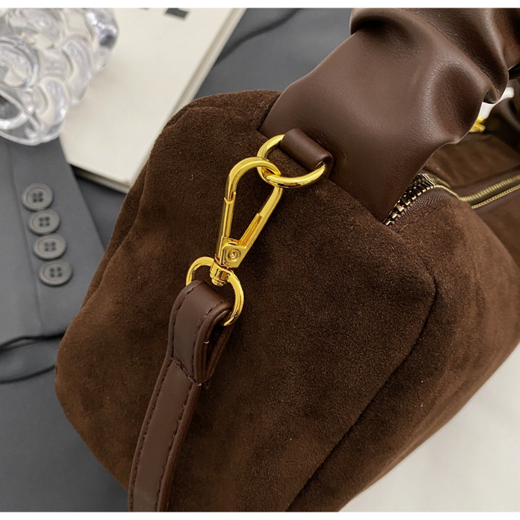 Maillard Suede 작은 광장 가방 2024 가을과 겨울 유행 모든 경기 베개 가방 대용량 통근 어깨 크로스 바디 백
