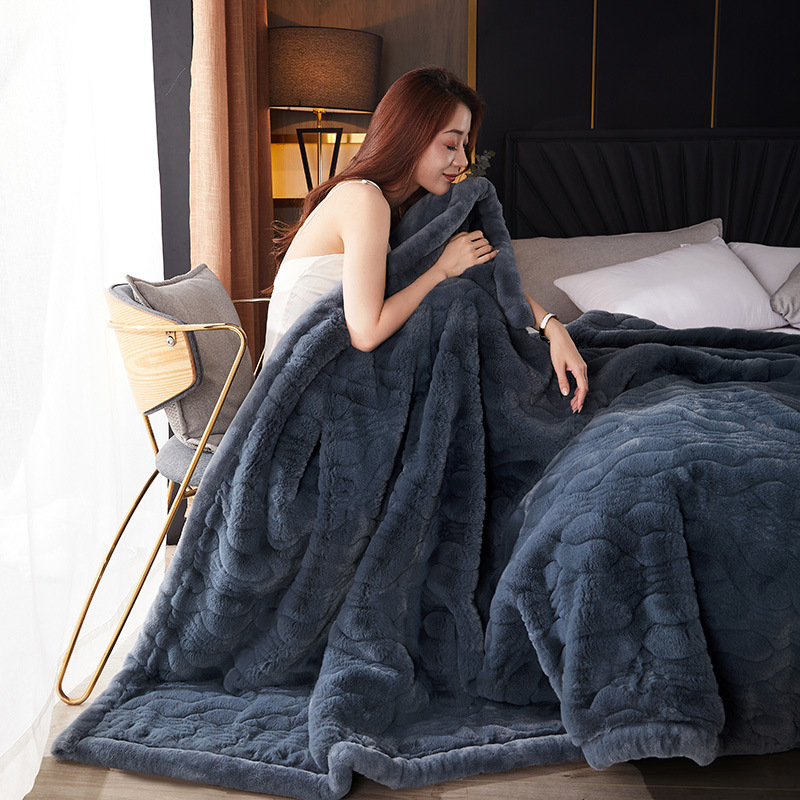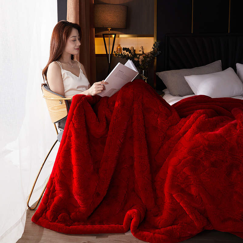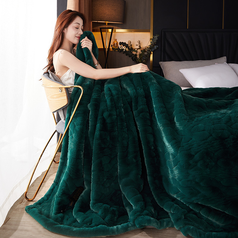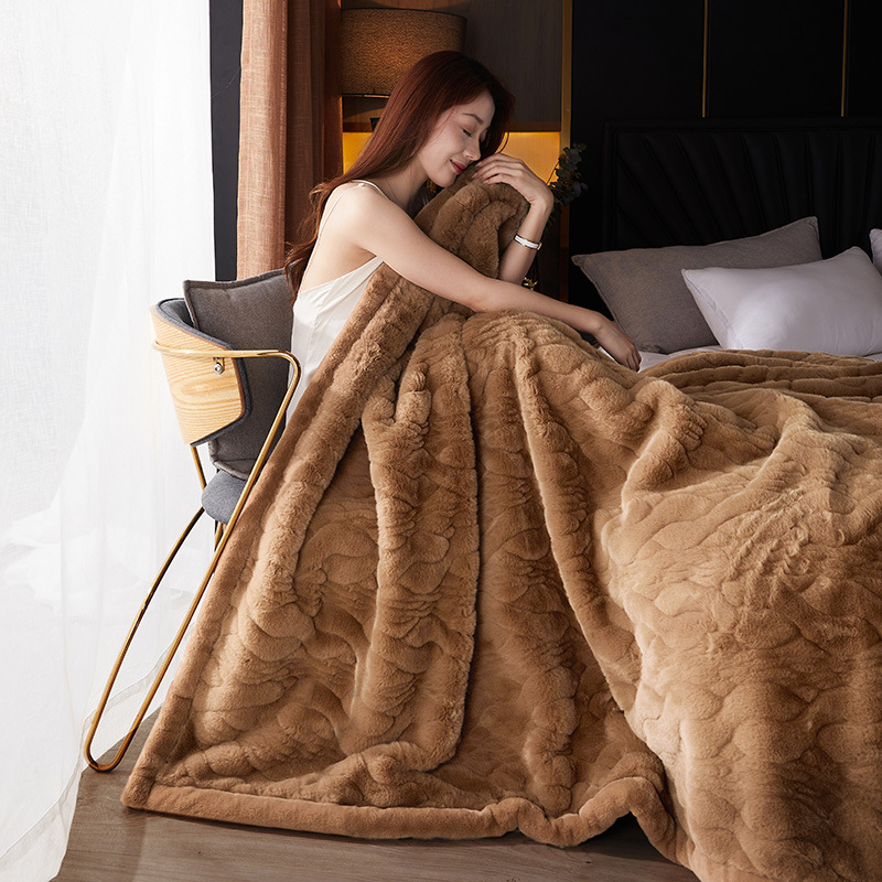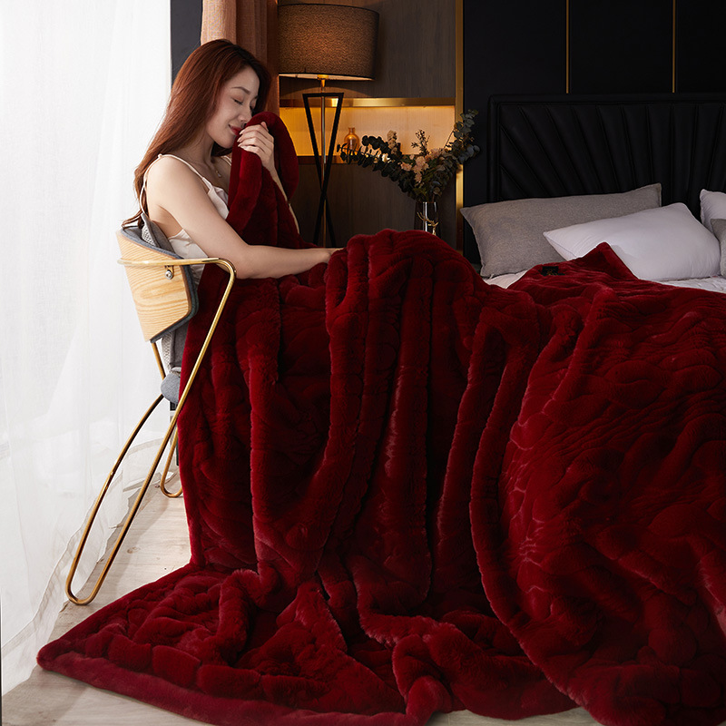 국경 11 진 모방 밍크 모피 담요 빛 럭셔리 더블 레이어 두꺼운 슈퍼 소프트 하이 엔드 웨딩 라셀 담요