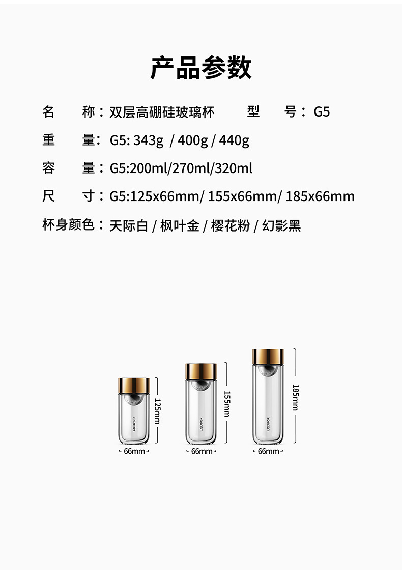 LEIDFOR Redf G5 이중층 유리 고 부가가치 남성과 여성의 물 컵 휴대용 차 마시는 컵