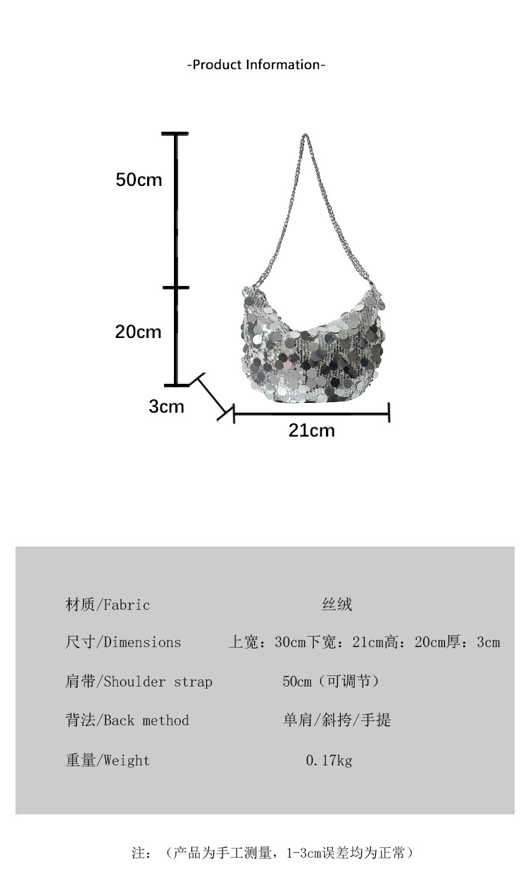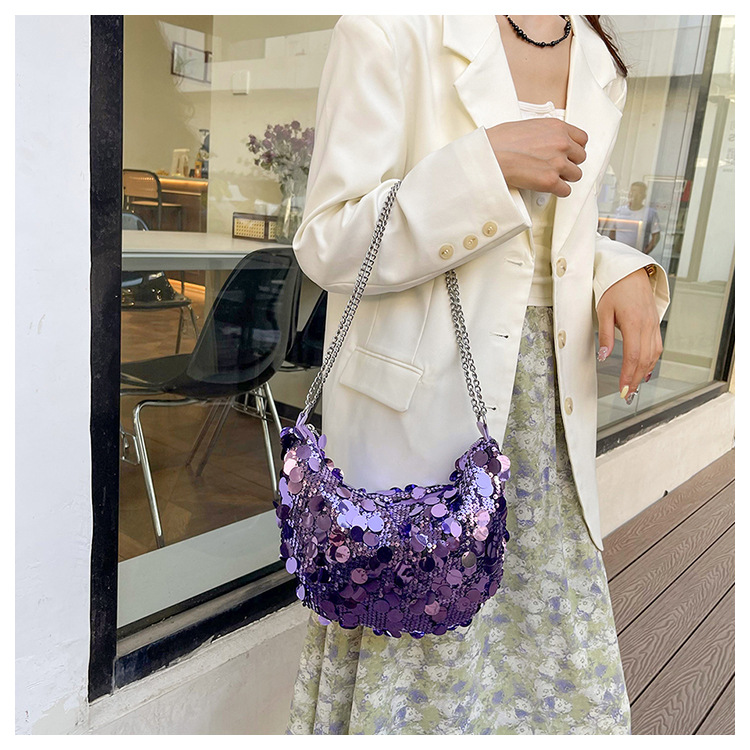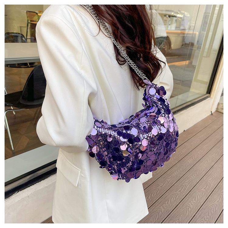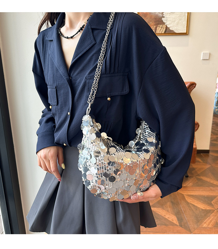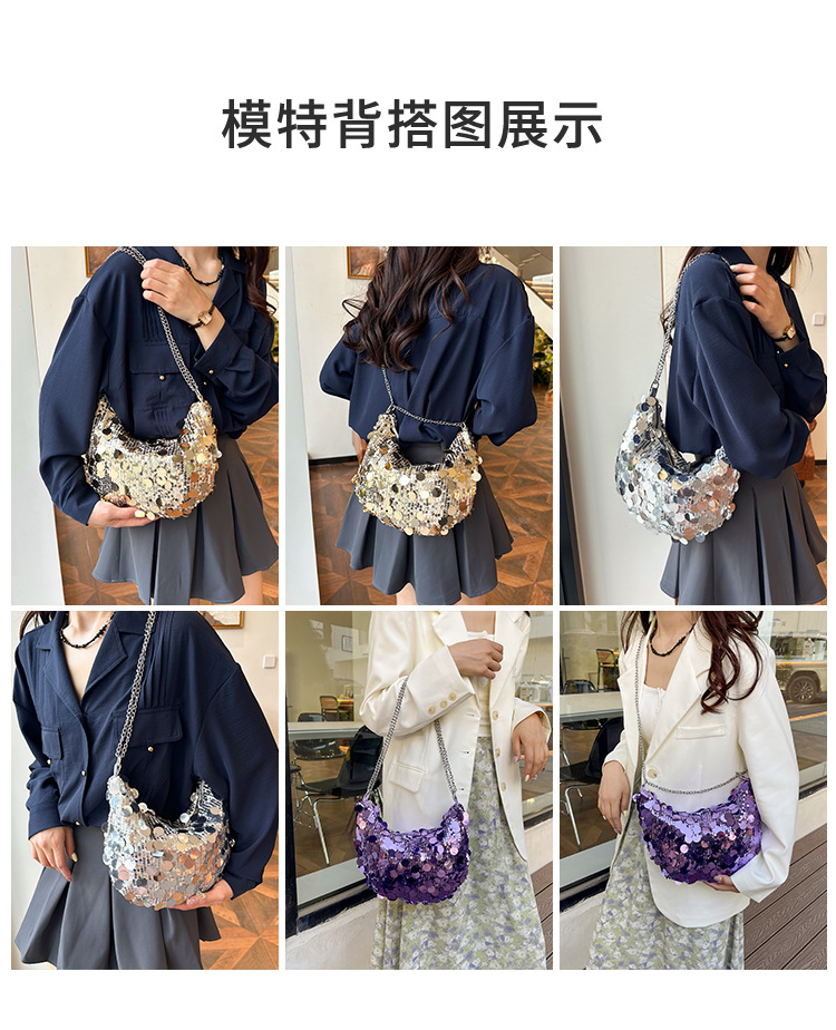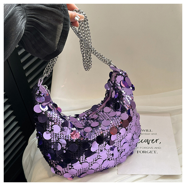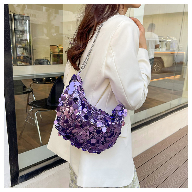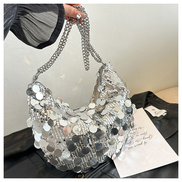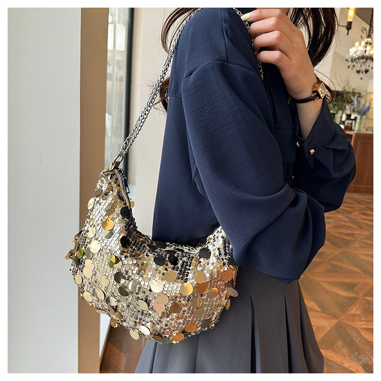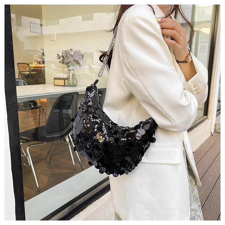 Sequin Bag 여성의 2024 새로운 패션 틈새 독특한 체인 만두 백 대용량 유행 어깨 크로스 백스토어 가기