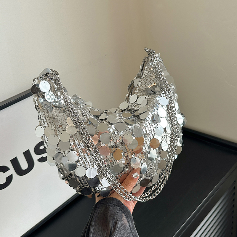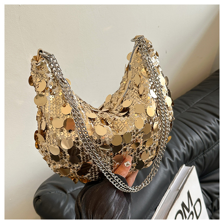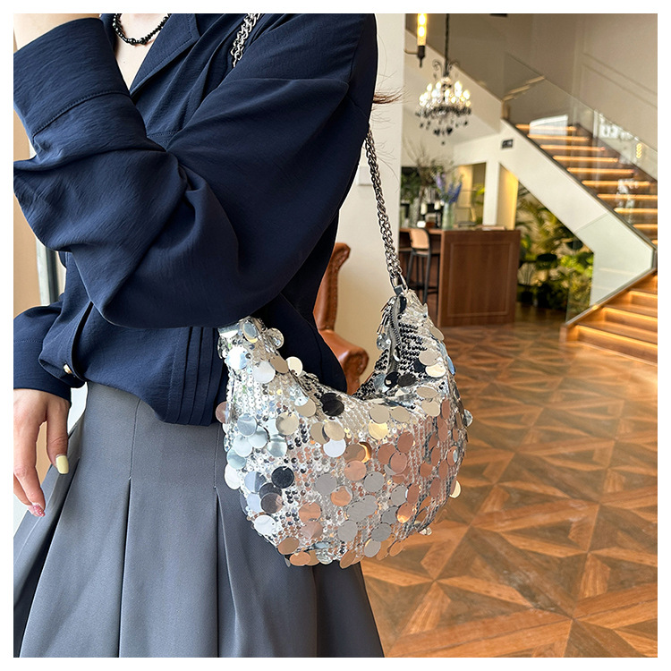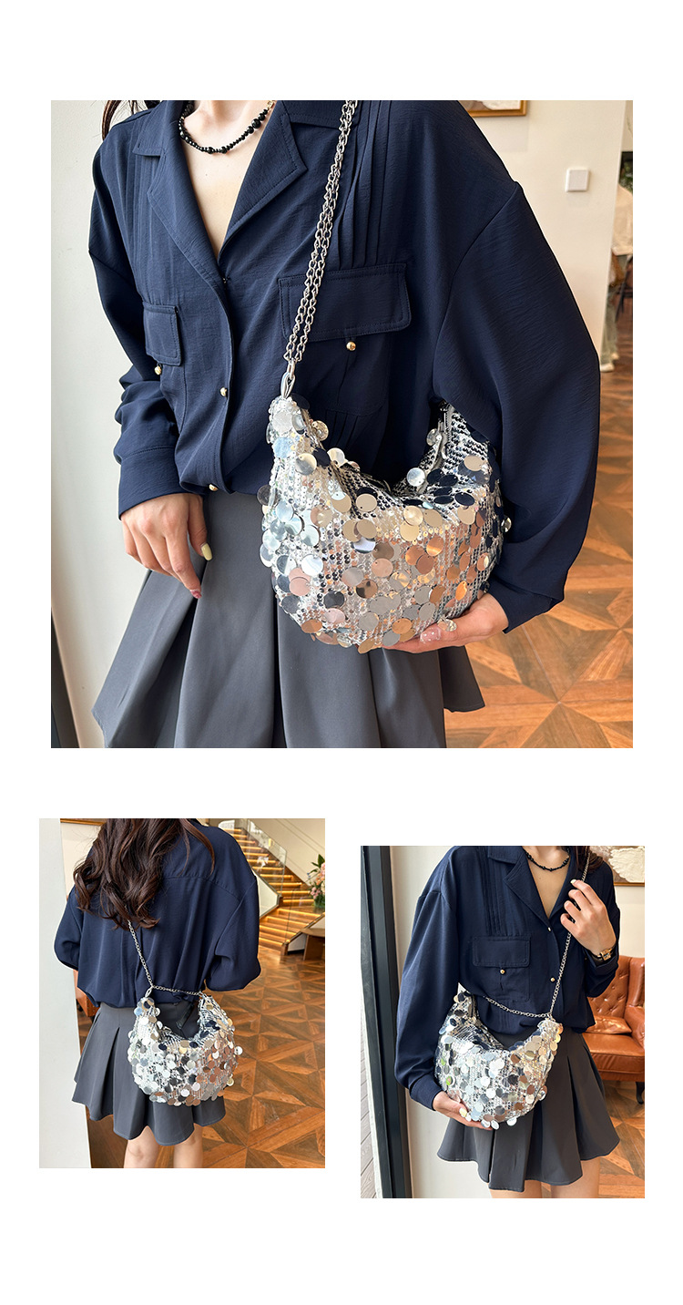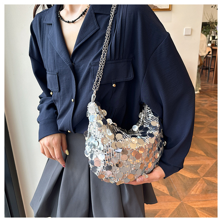 Sequin Bag 여성의 2024 새로운 패션 틈새 독특한 체인 만두 백 대용량 유행 어깨 크로스 백