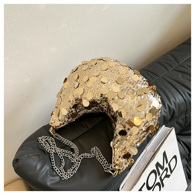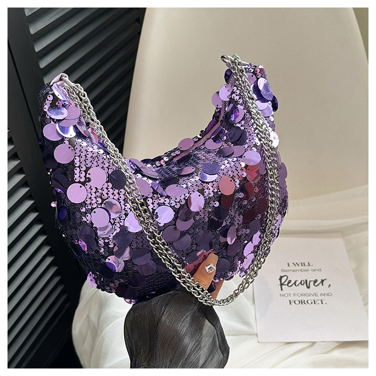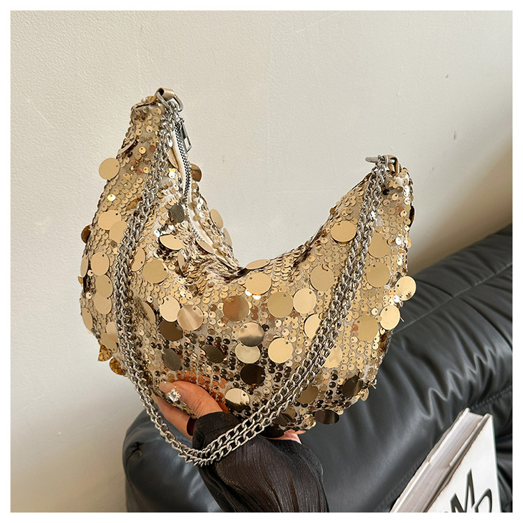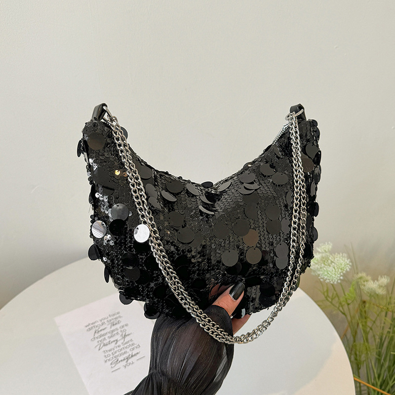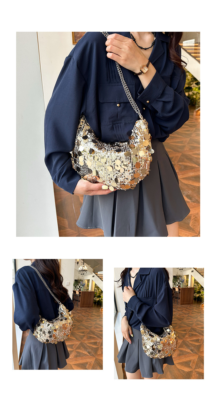Sequin Bag 여성의 2024 새로운 패션 틈새 독특한 체인 만두 백 대용량 유행 어깨 크로스 백