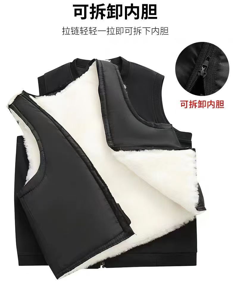 양모 조끼 아빠를위한 남자 모피 원피스 조끼 조끼 조끼 가을과 겨울의 중년 및 노인을위한 따뜻한 두꺼운 면화 조끼 착용