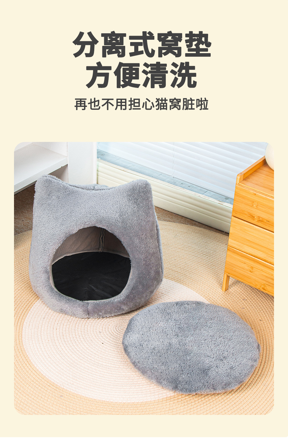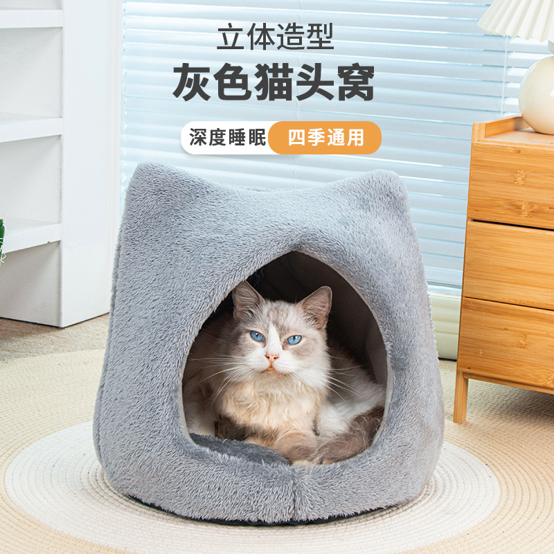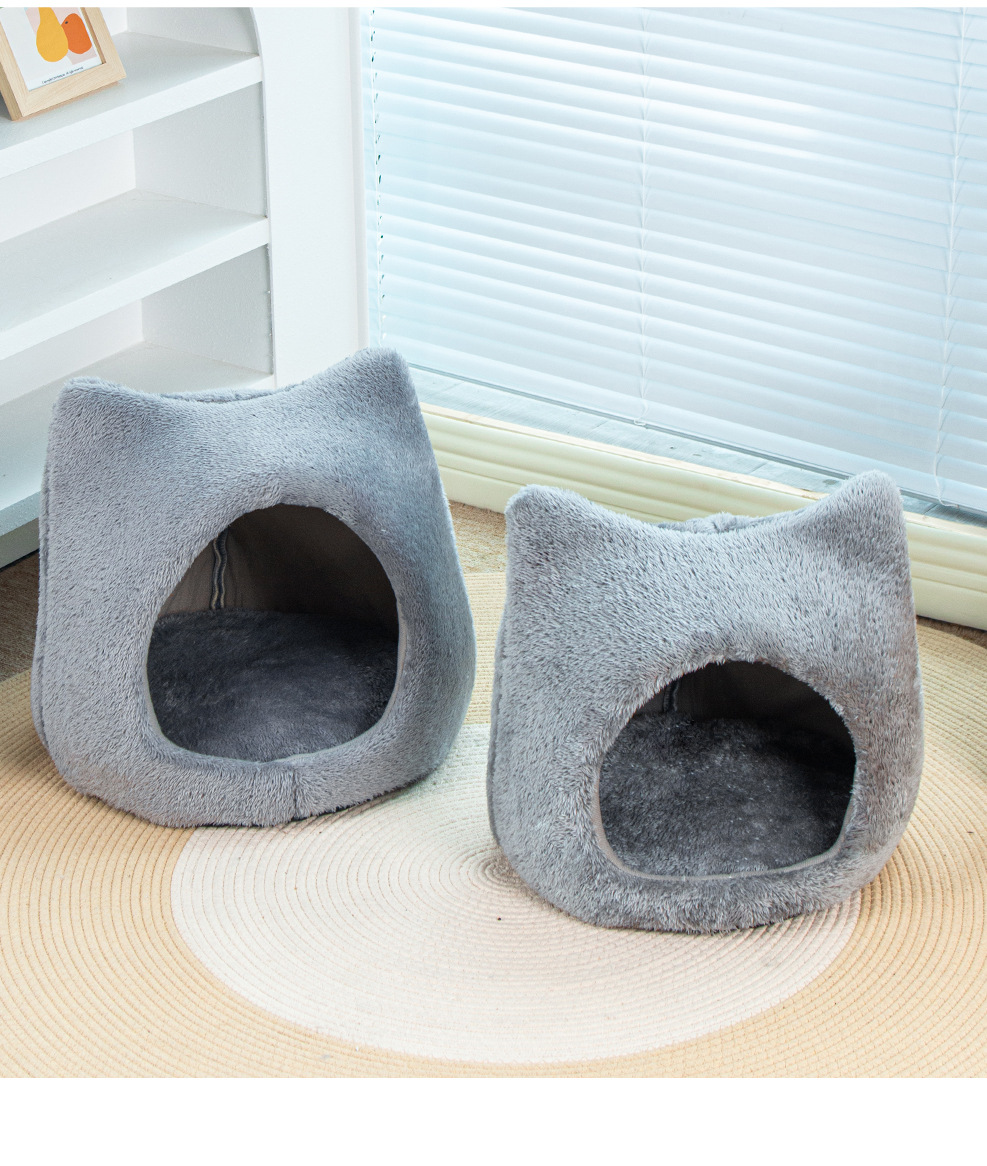 사계절 유니버설 귀여운 고양이 머리 둥지 두꺼운 양면 양면 양털 패드 이동식 및 세척 가능한 고양이 집 미끄럼 방지 바닥 고양이 둥지 용품스토어 가기