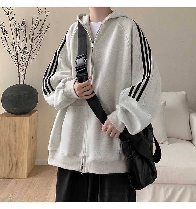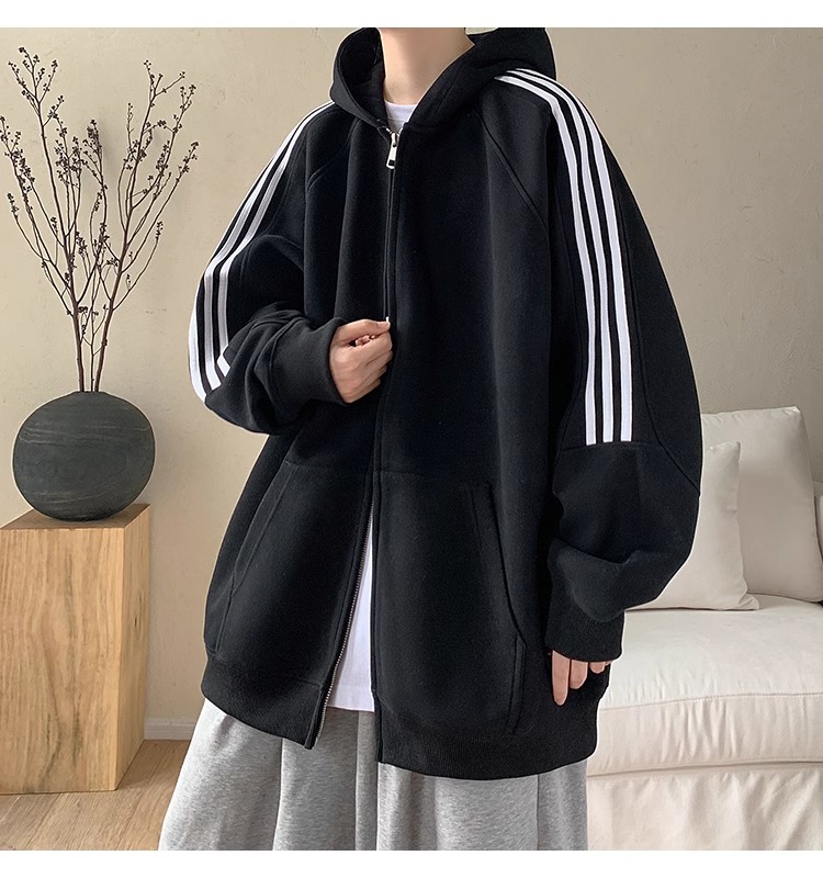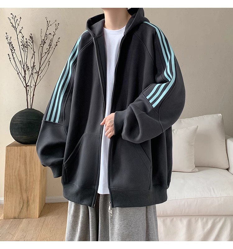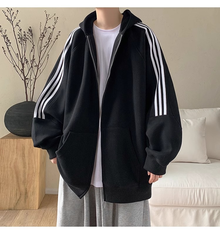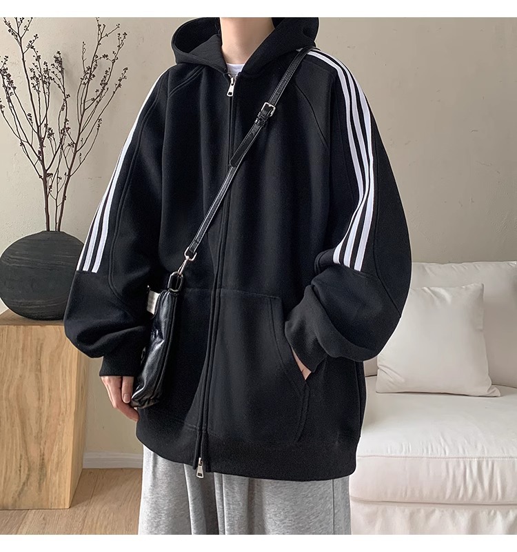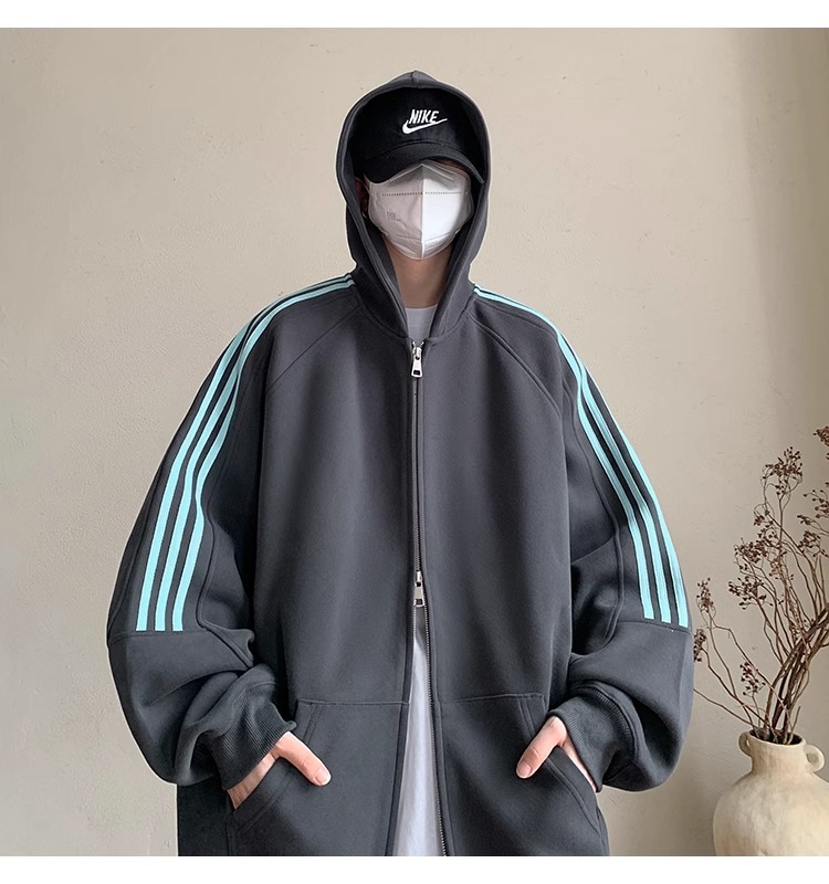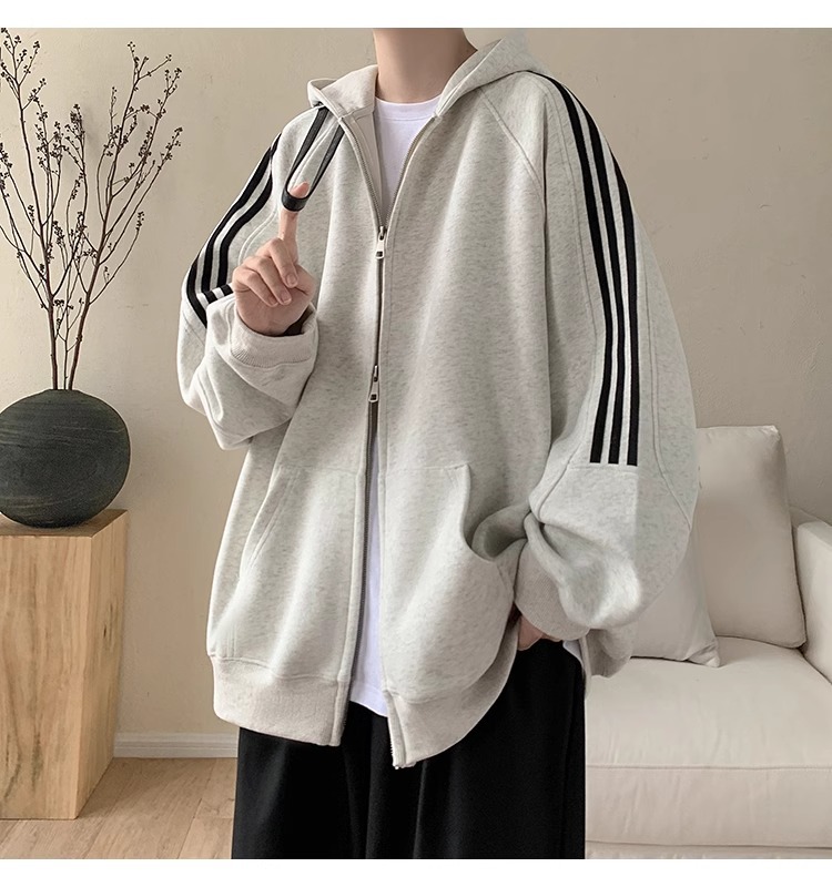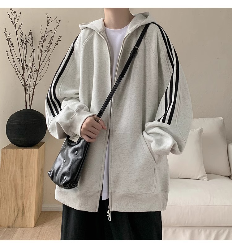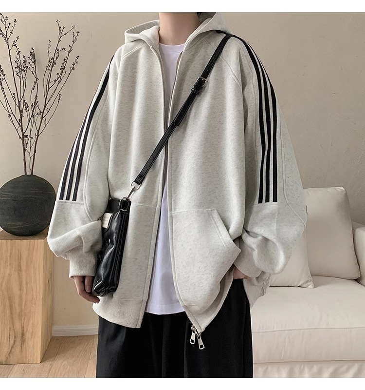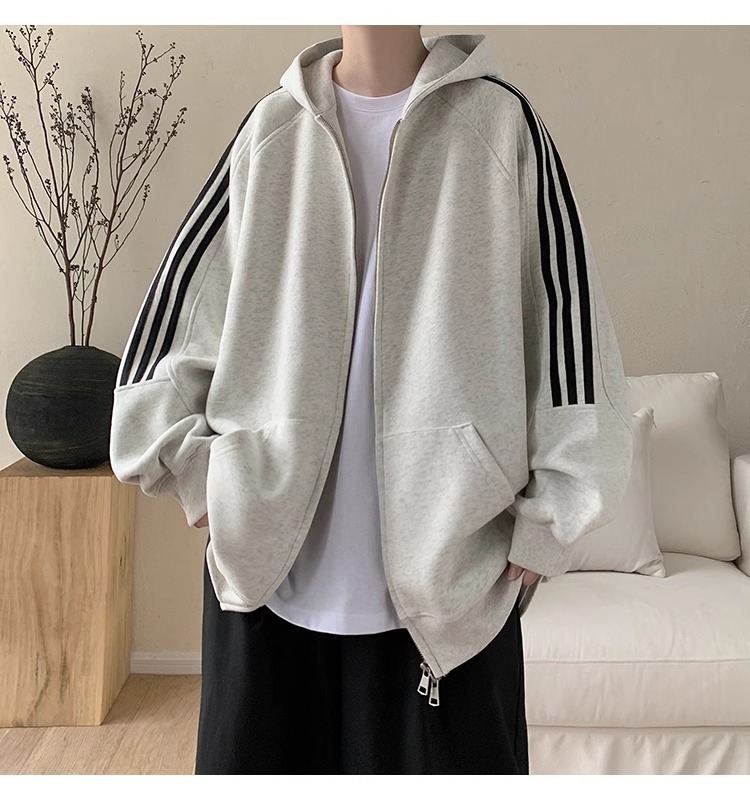 아메리칸 스타일 레트로 남자 줄무늬 스웨터 남자 2024 봄 가을 후디 지퍼 느슨한 캐주얼 자켓 남성 의류스토어 가기