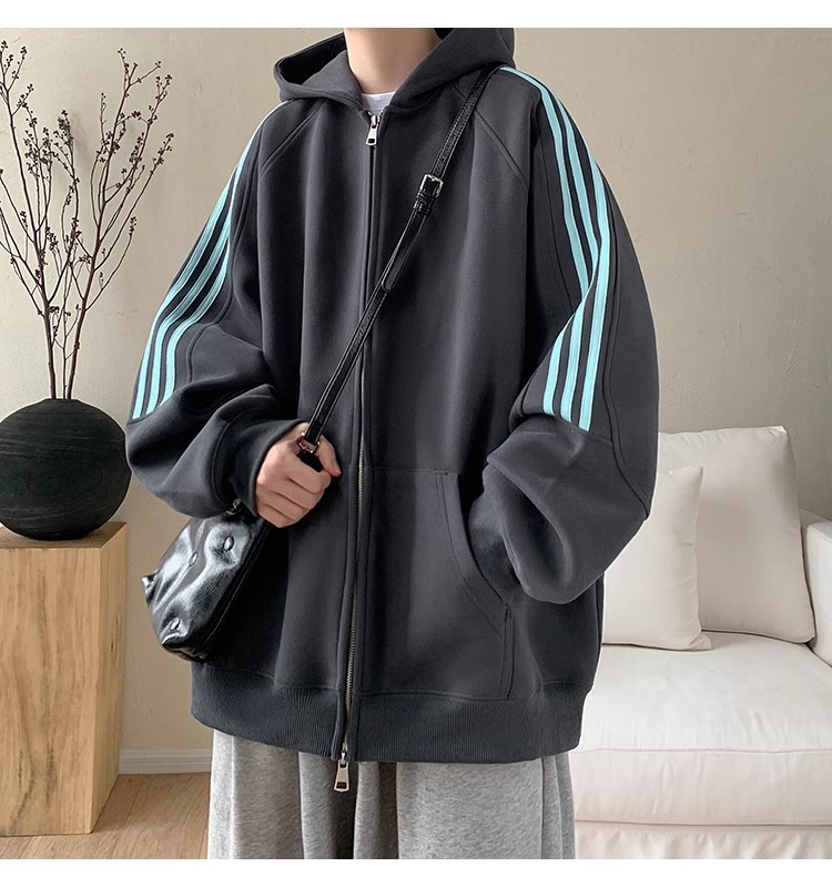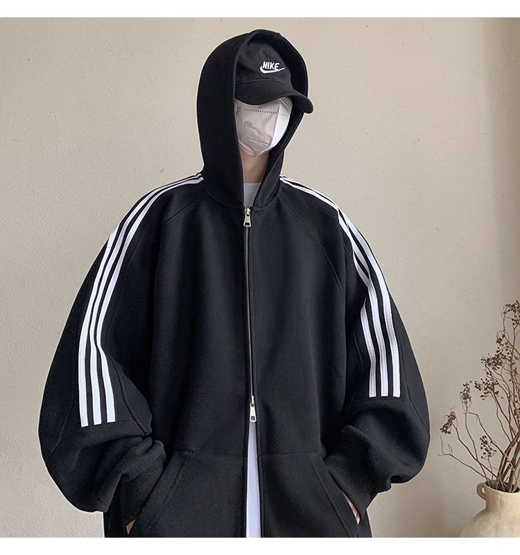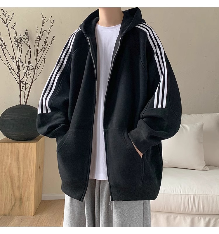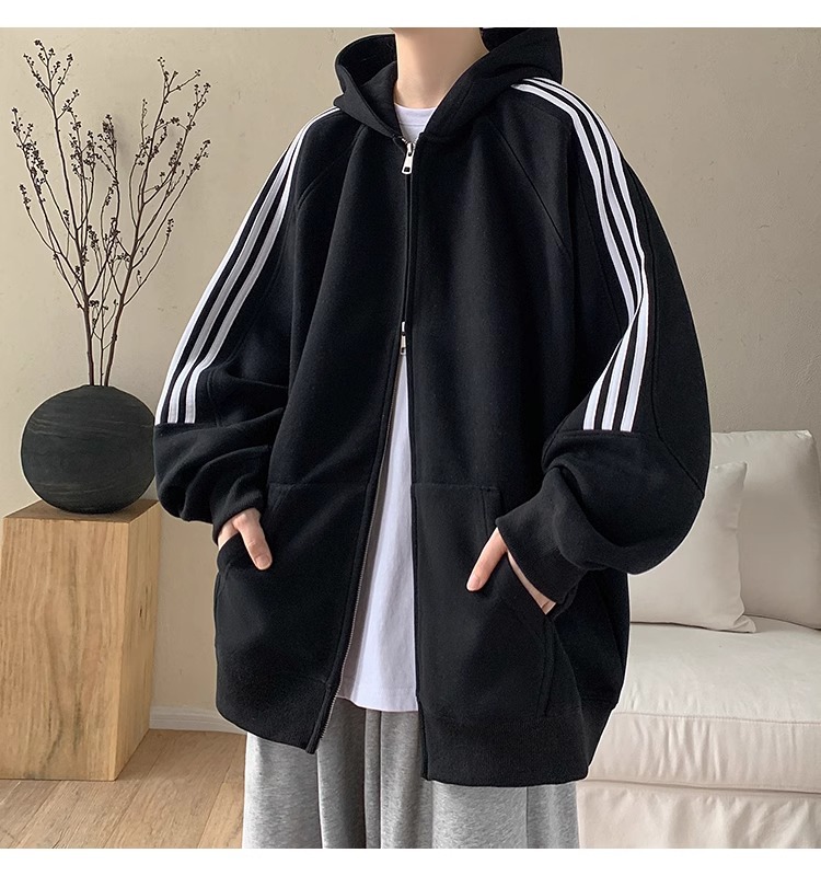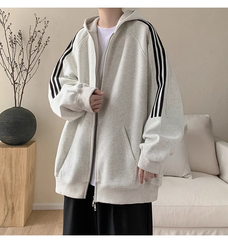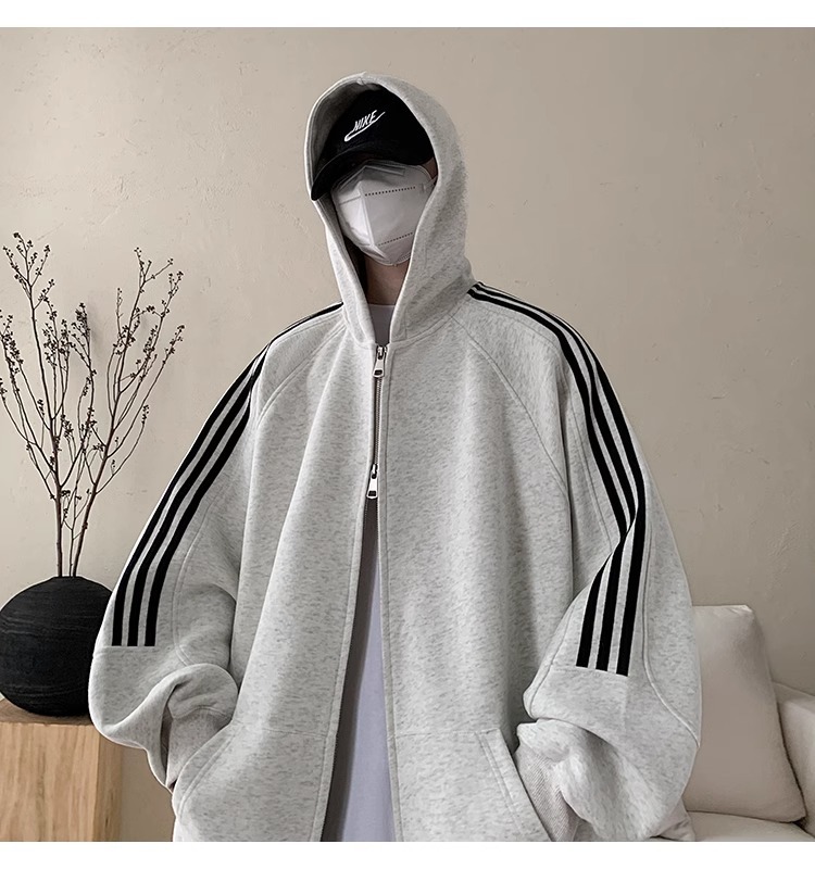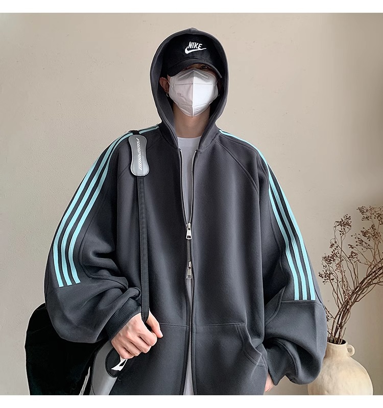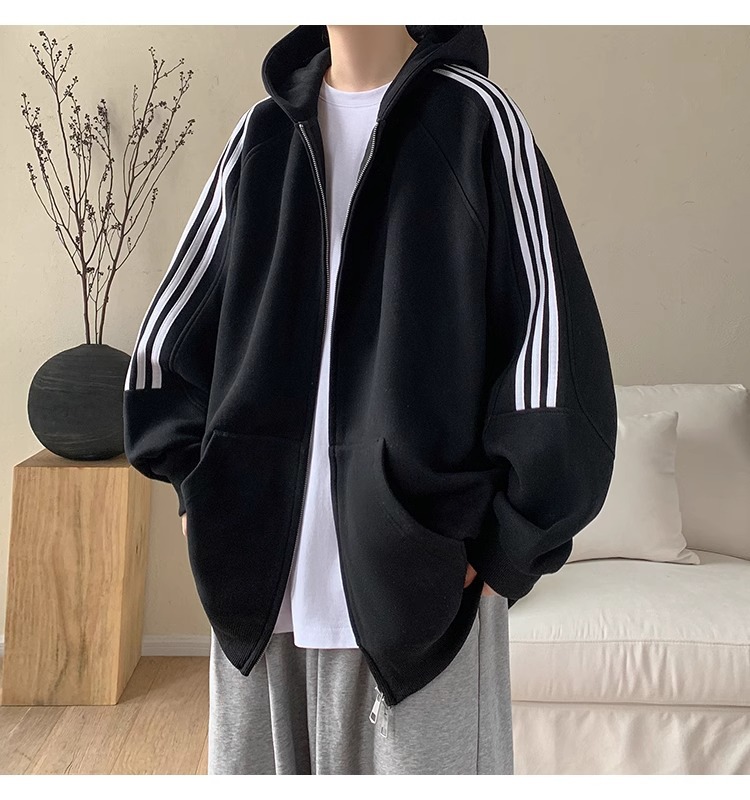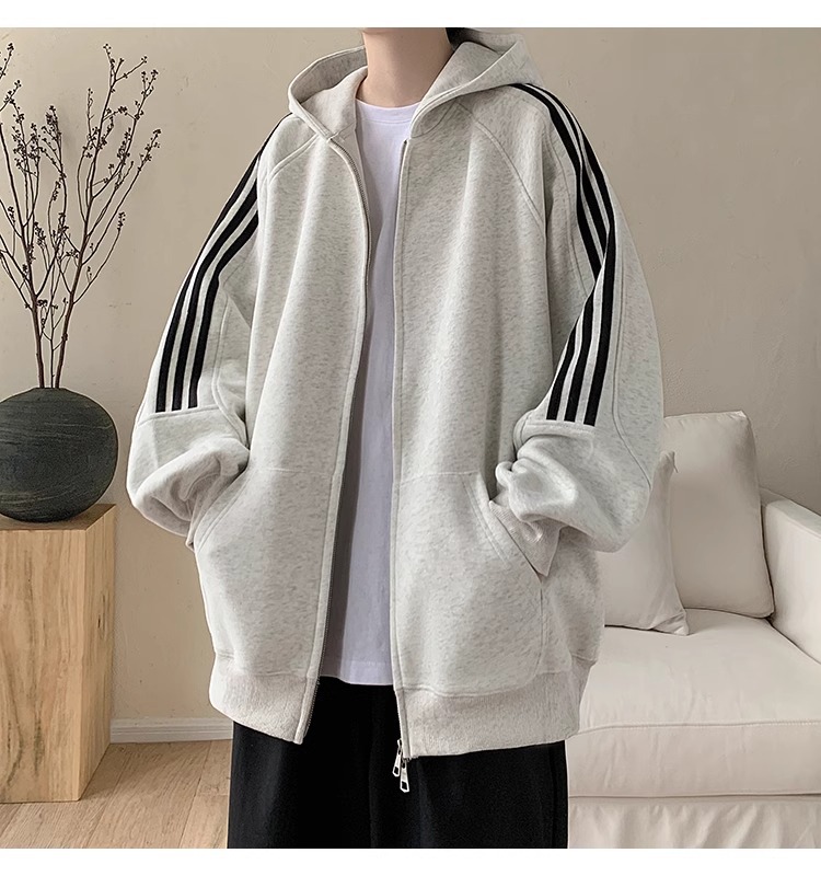 아메리칸 스타일 레트로 남자 줄무늬 스웨터 남자 2024 봄 가을 후디 지퍼 느슨한 캐주얼 자켓 남성 의류스토어 가기