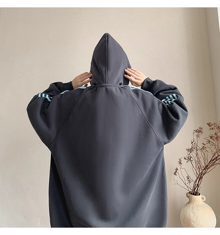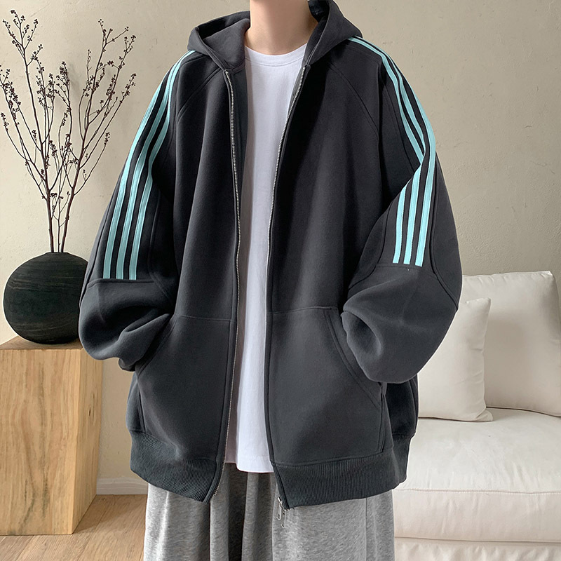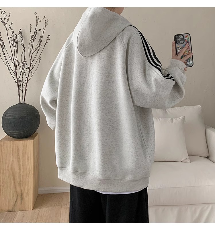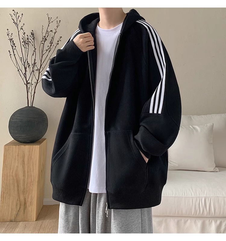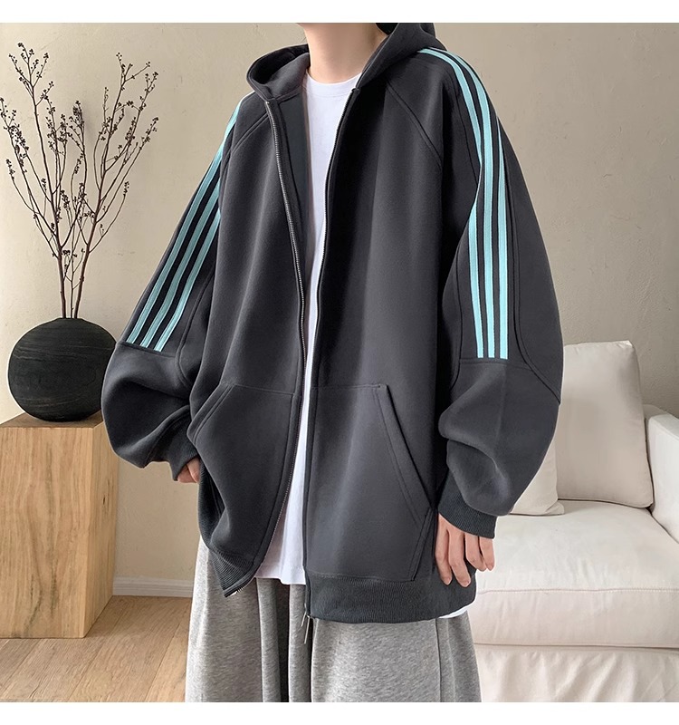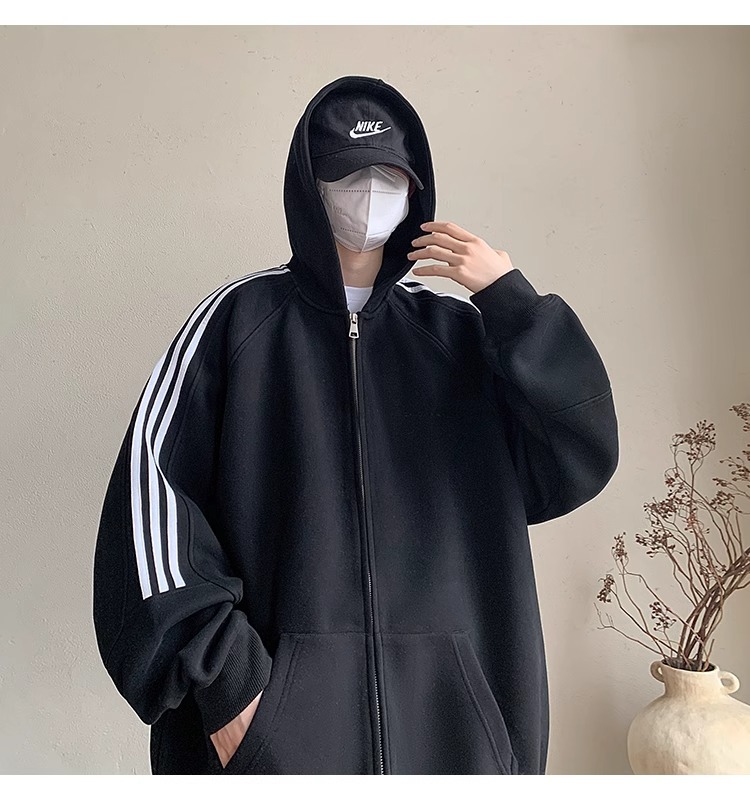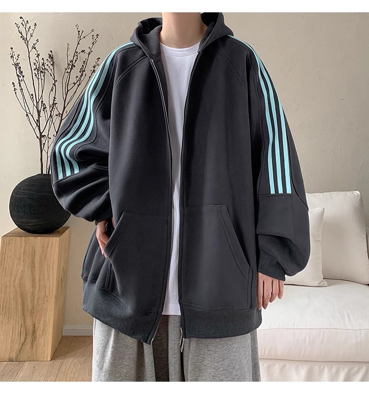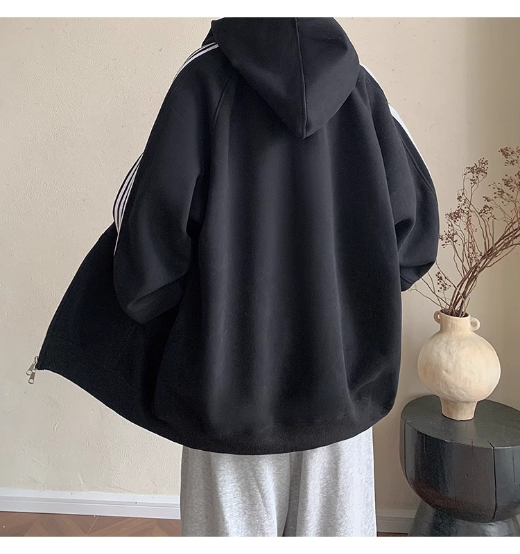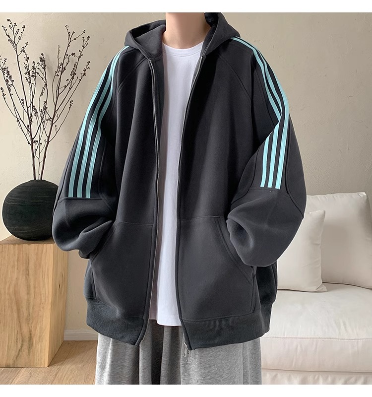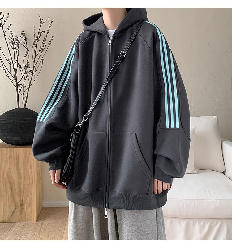 아메리칸 스타일 레트로 남자 줄무늬 스웨터 남자 2024 봄 가을 후디 지퍼 느슨한 캐주얼 자켓 남성 의류스토어 가기