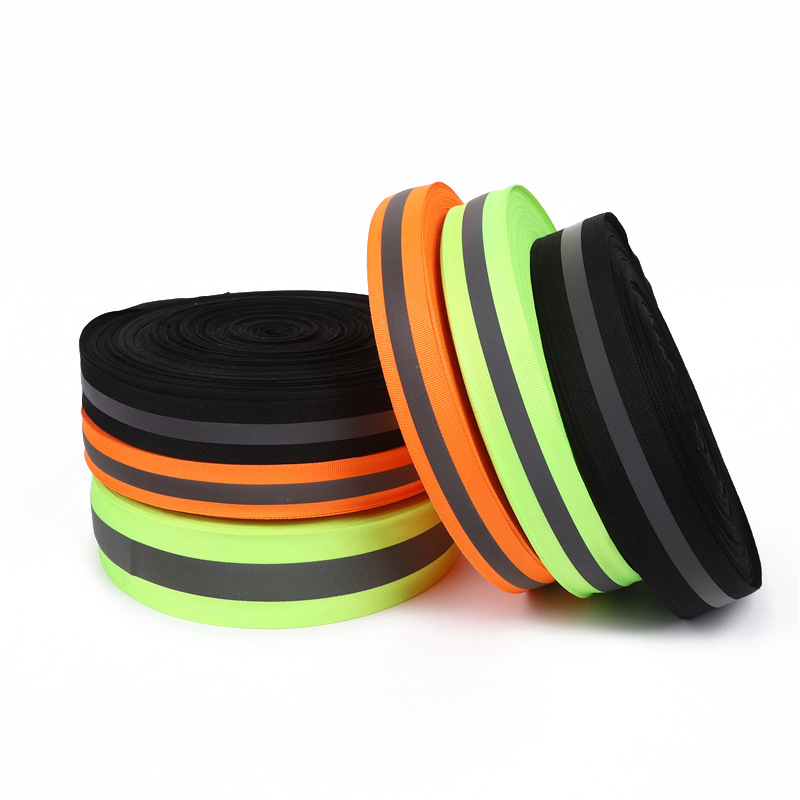 공장 도매 하이라이트 의류 의류 반사 리본 형광 녹색 화재 경보 위생 액세서리 반사 리본스토어 가기