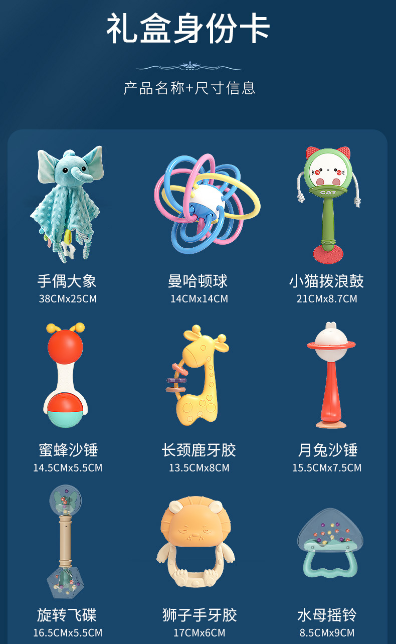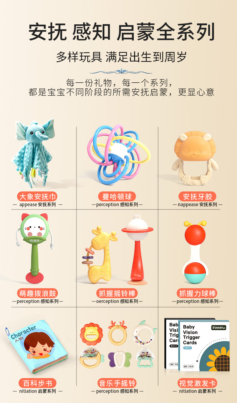 • 독점 선물 [선물 선호] 치발기/딸랑이 + 감각 세트 + 위안 인형 (21종 세트) [맨해튼 공 색상 랜덤]