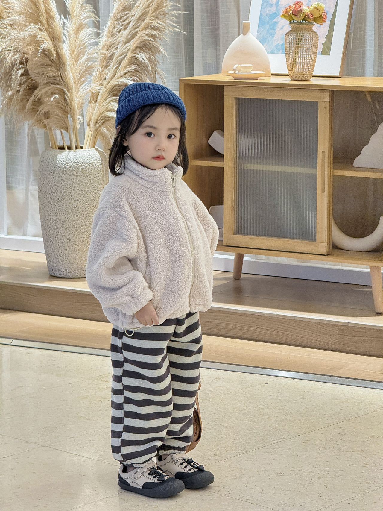 소녀 양고기 양모 코트 겨울 2024 새로운 가을과 겨울 아기 양고기 양모 스웨터 어린이 탑