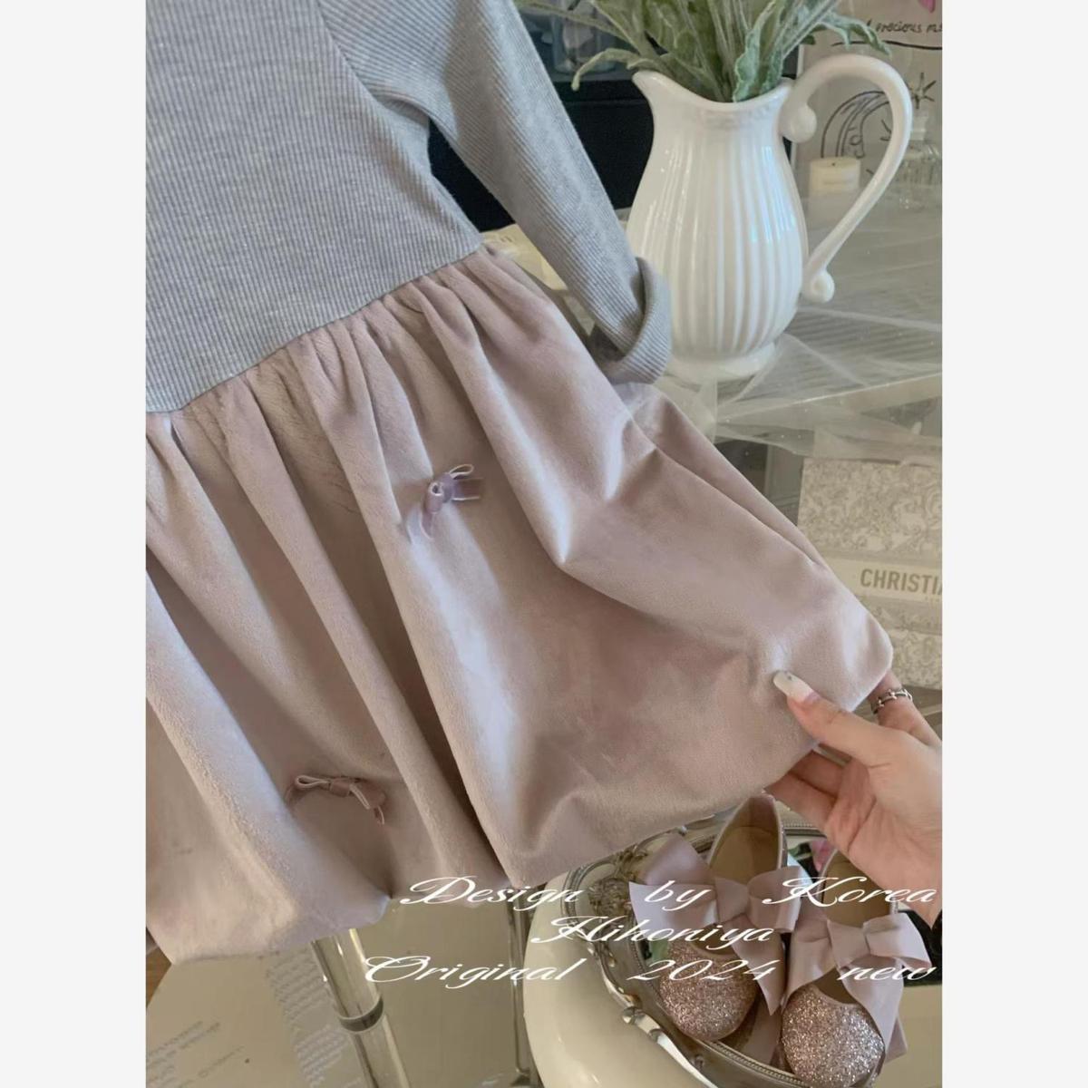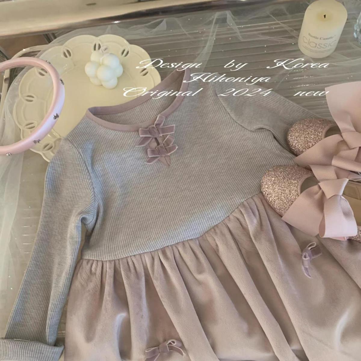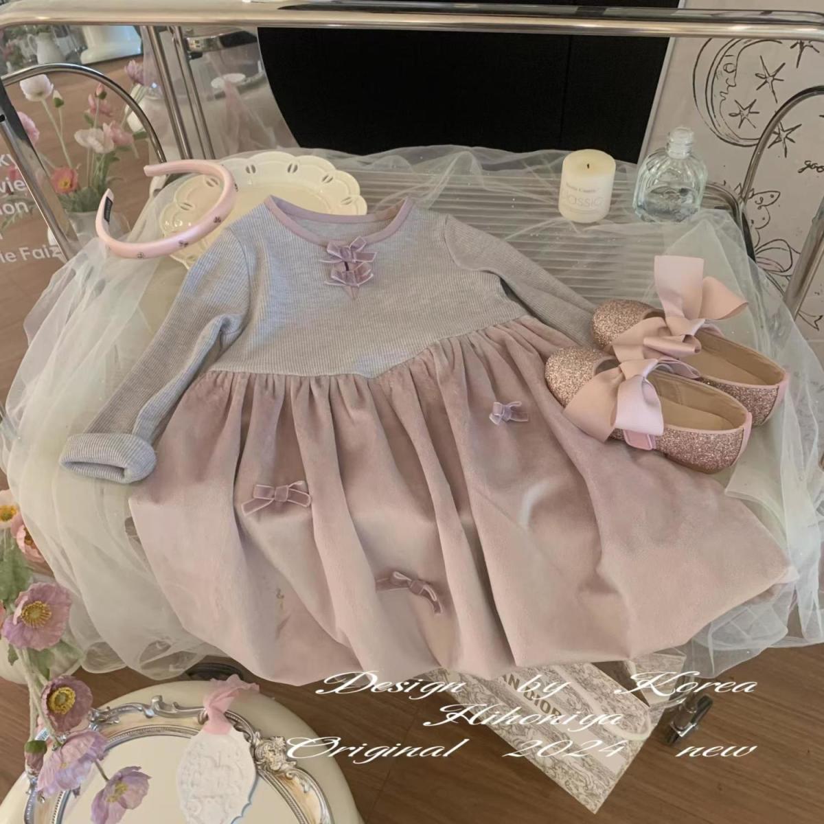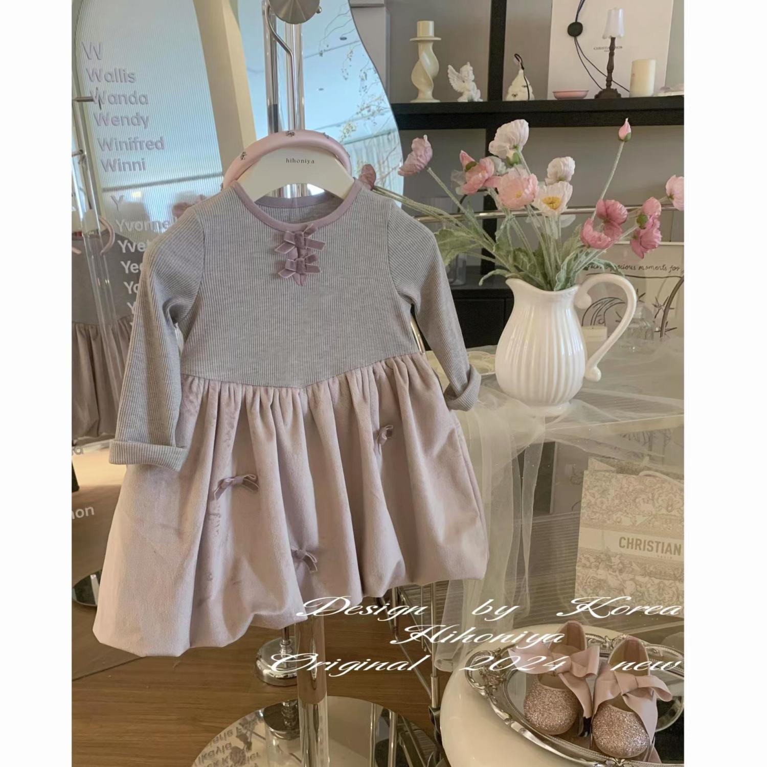 여자 공주 드레스 아동 의류 2025 어린이 봄, 가을 새로운 스타일 보우 드레스 스커트 아기 드레스스토어 가기