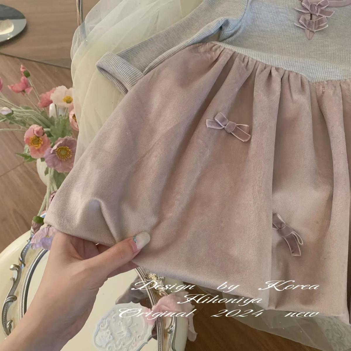 여자 공주 드레스 아동 의류 2025 어린이 봄, 가을 새로운 스타일 보우 드레스 스커트 아기 드레스