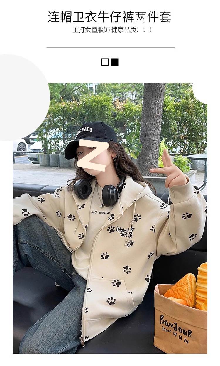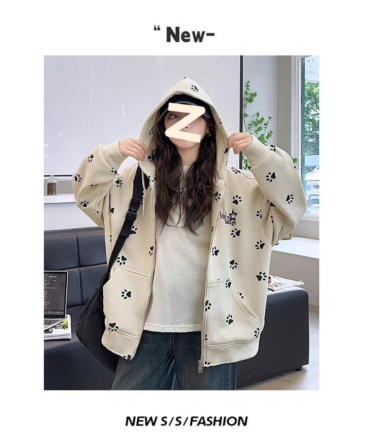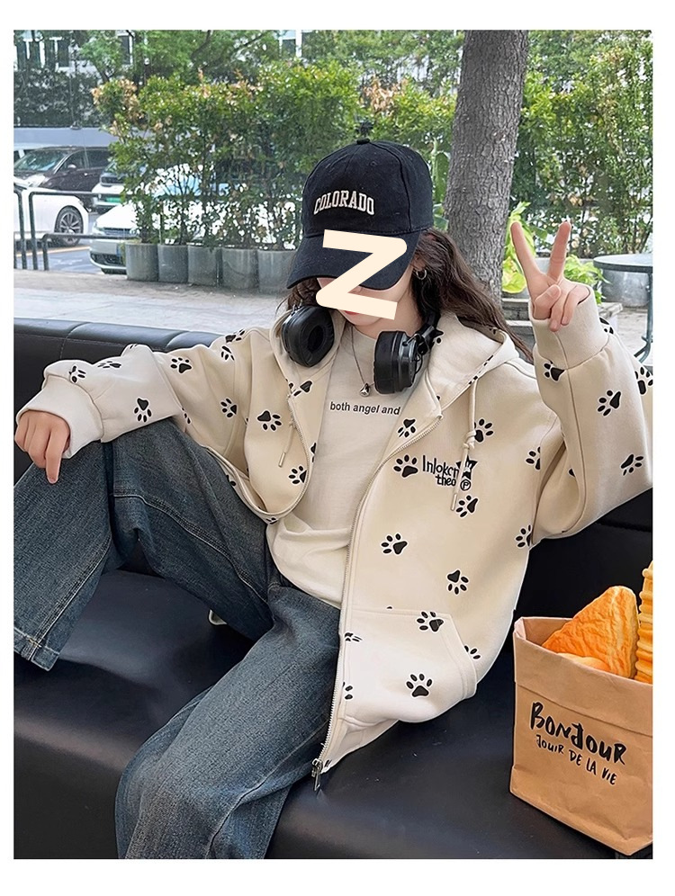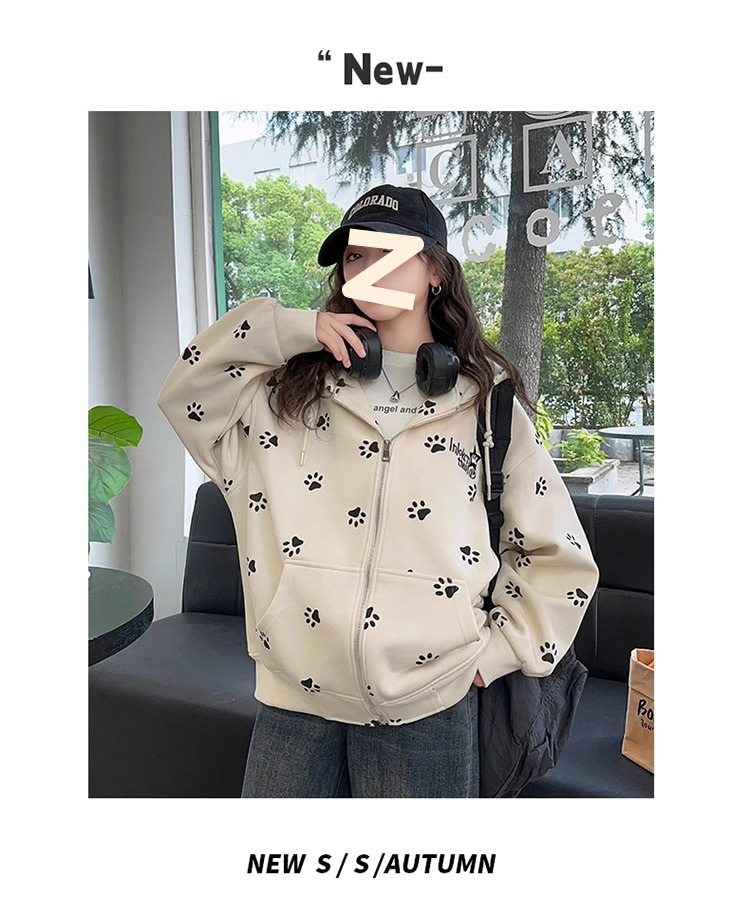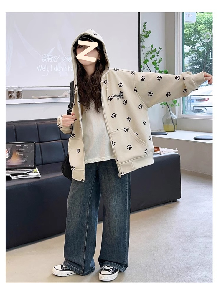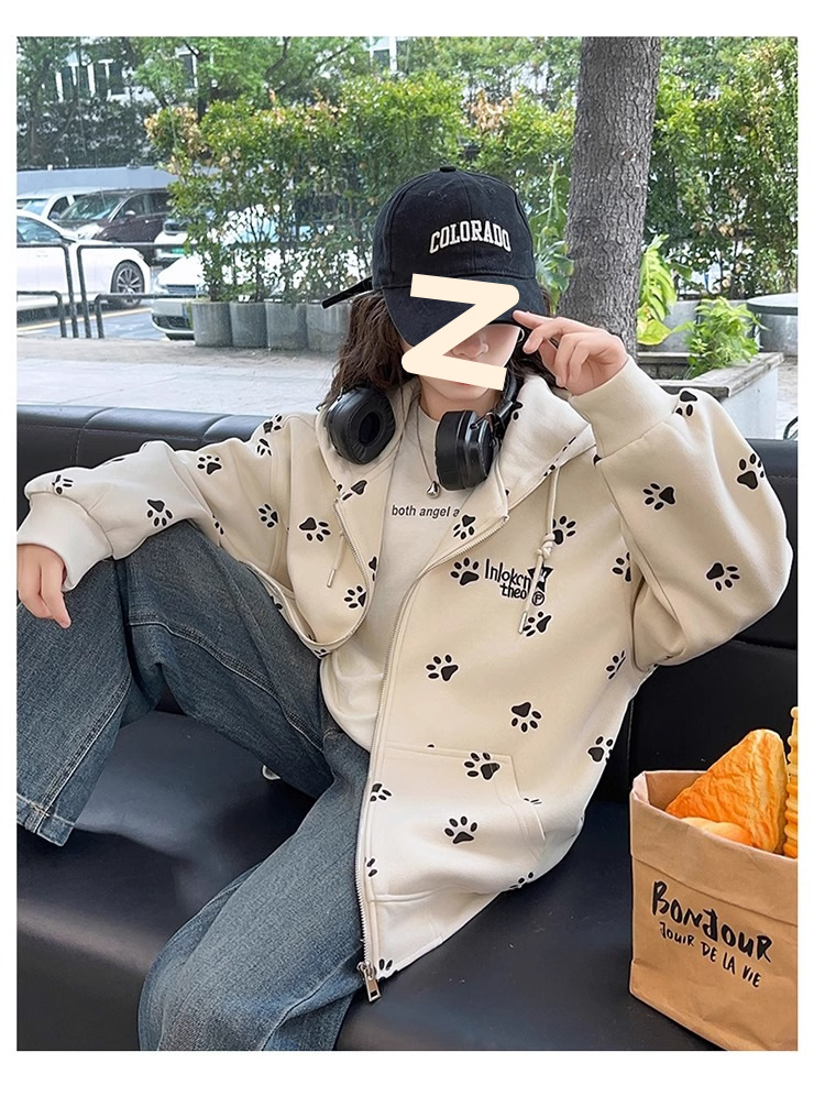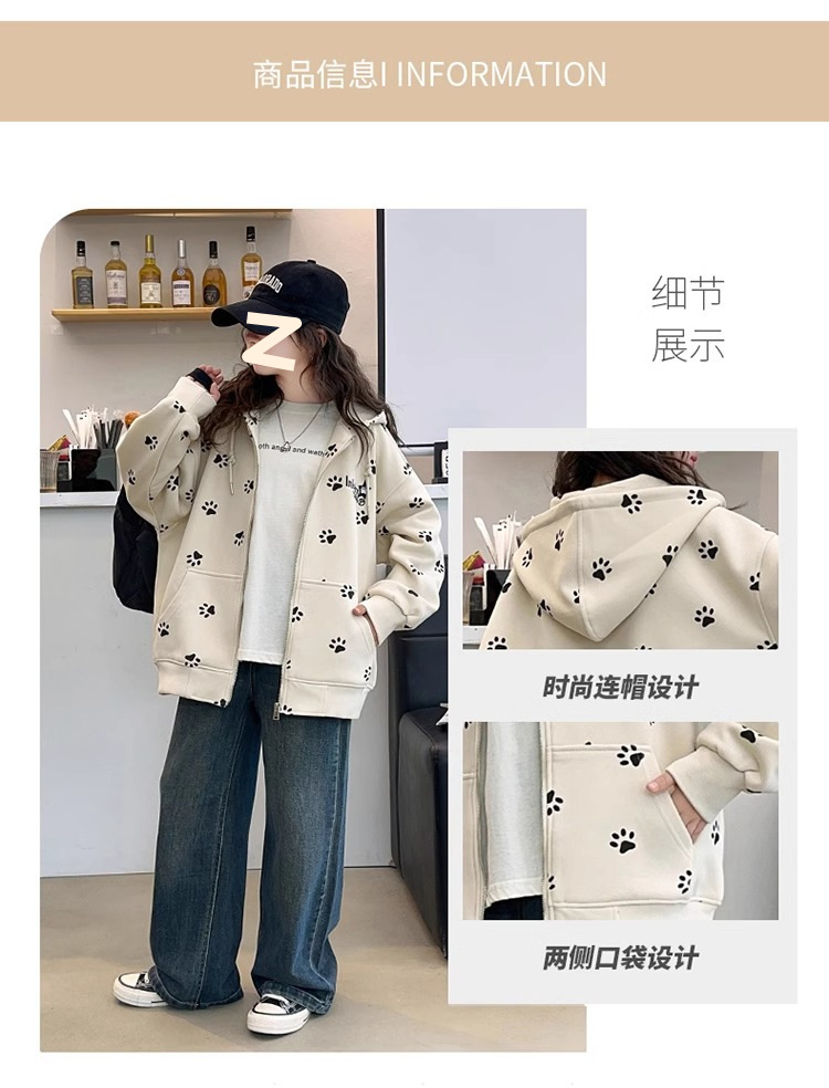 소녀 가을 한국 코트 2024 새로운 큰 키즈 만화 개 포 인쇄 느슨한 후드 카디건 탑스토어 가기