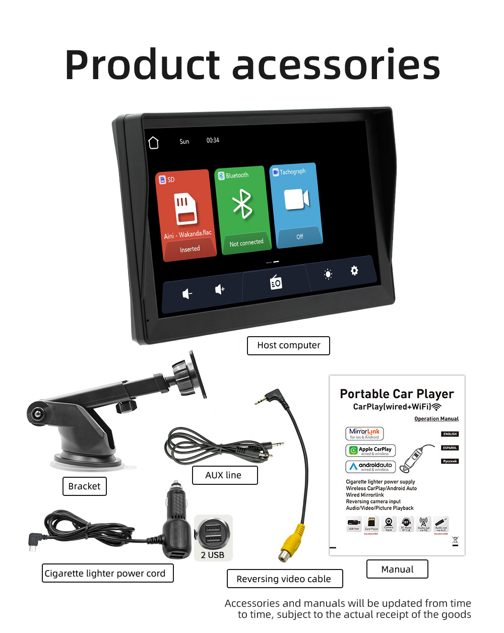 9 인치 carplay 운전 레코더 휴대용 자동차 MP5 듀얼 블루투스 듀얼 채널 carplay 스마트 스크린