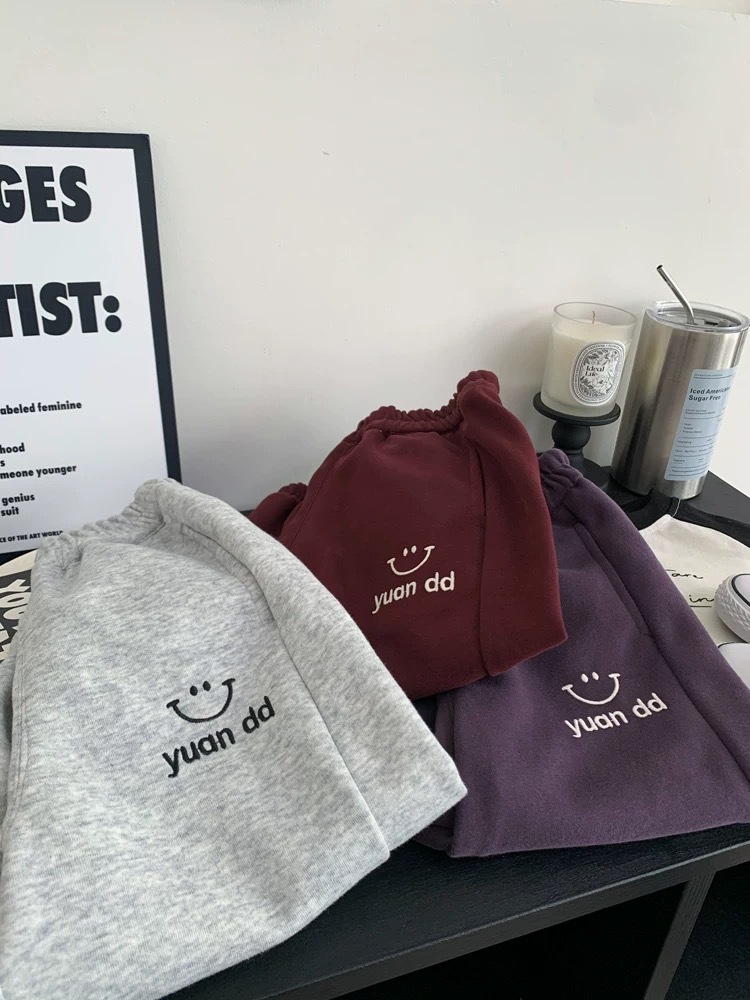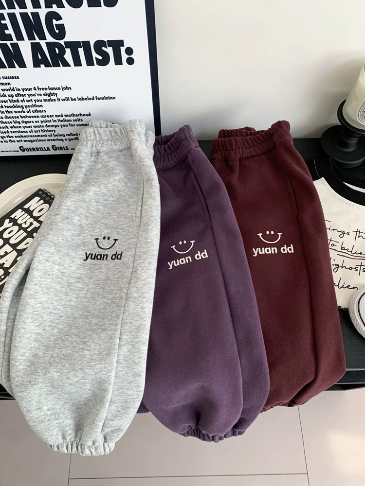 남성과 여성의 캐주얼 바지 봄과 가을 새로운 어린이 귀여운 스마일 패션 포켓 팬츠 소프트 스포츠 바지스토어 가기