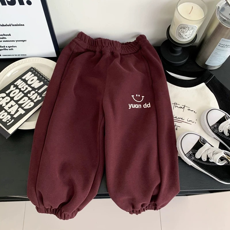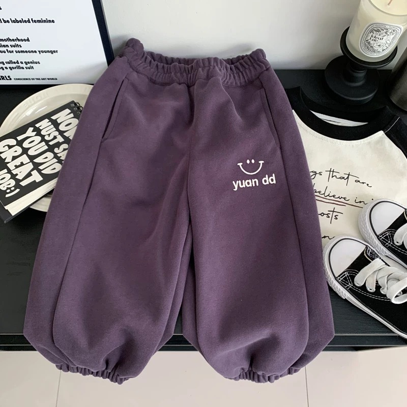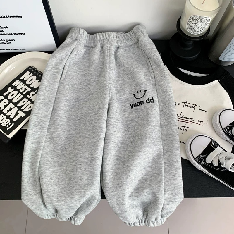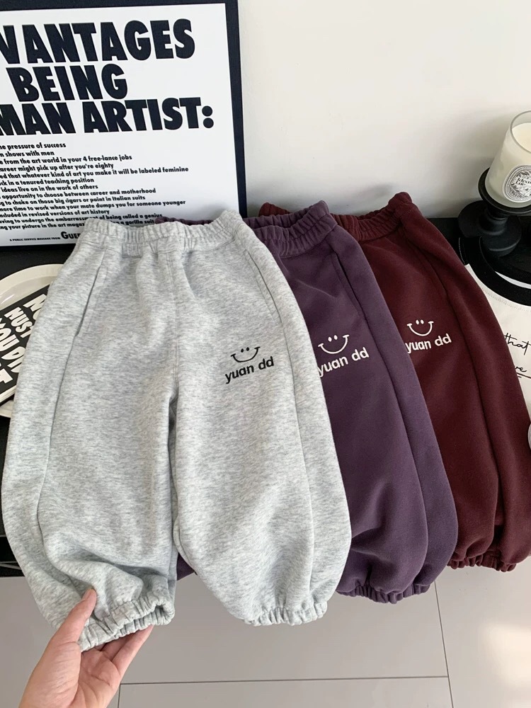 남성과 여성의 캐주얼 바지 봄과 가을 새로운 어린이 귀여운 스마일 패션 포켓 팬츠 소프트 스포츠 바지