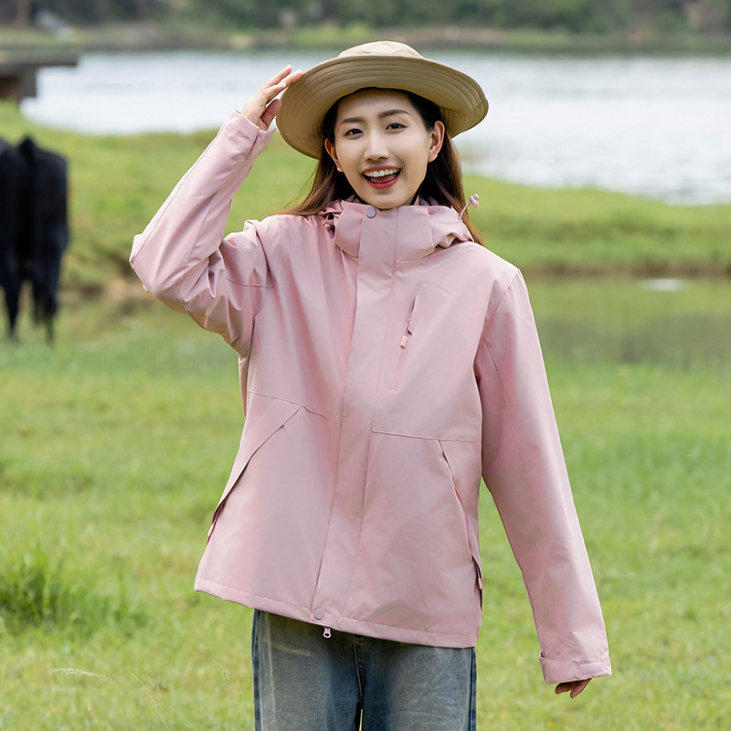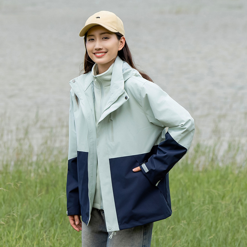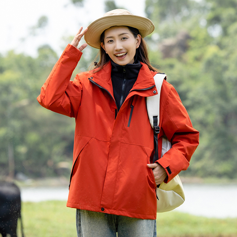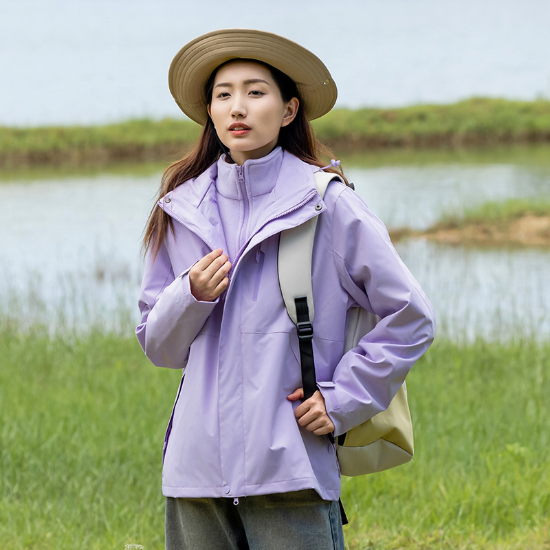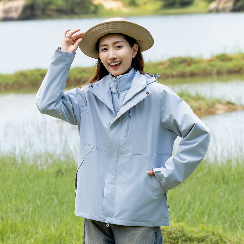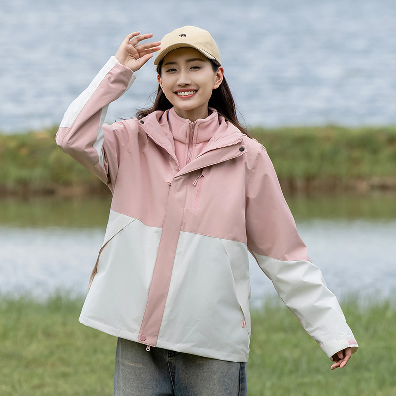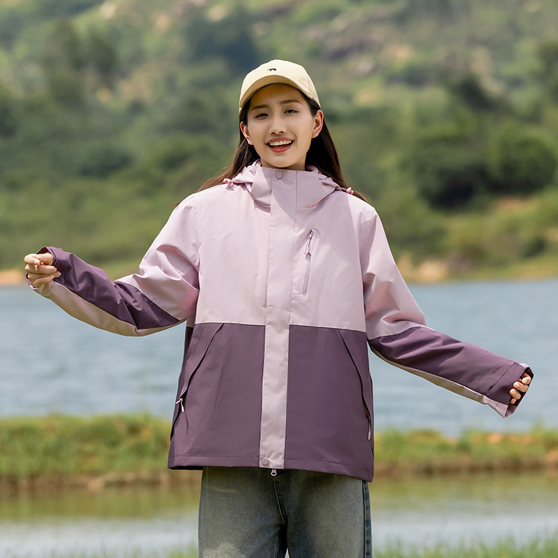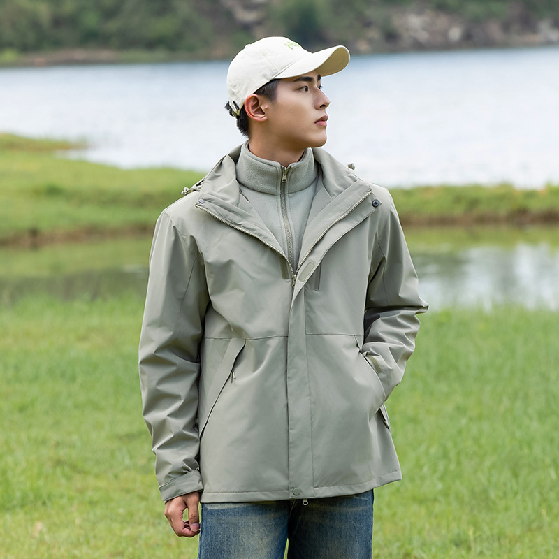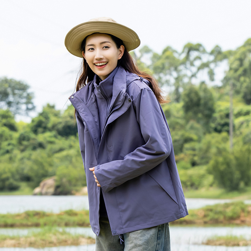 커플의 3 대 1 맞춤 분리 가능한 여성 야외 여행 방풍 및 라이너 남성 자켓이있는 방직 등산 세트스토어 가기
