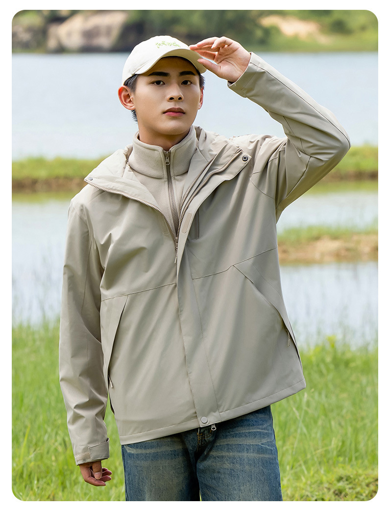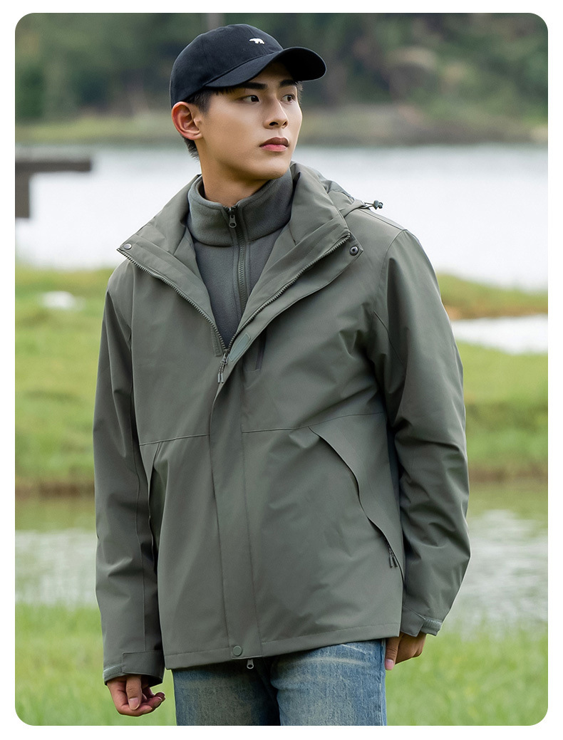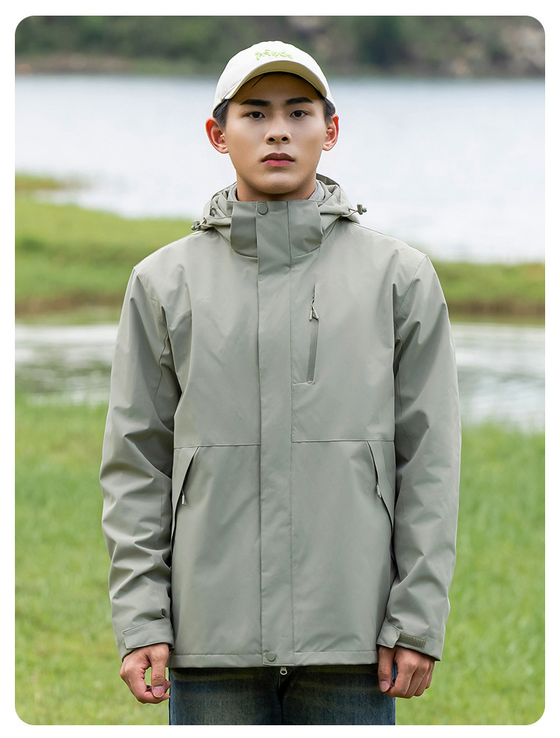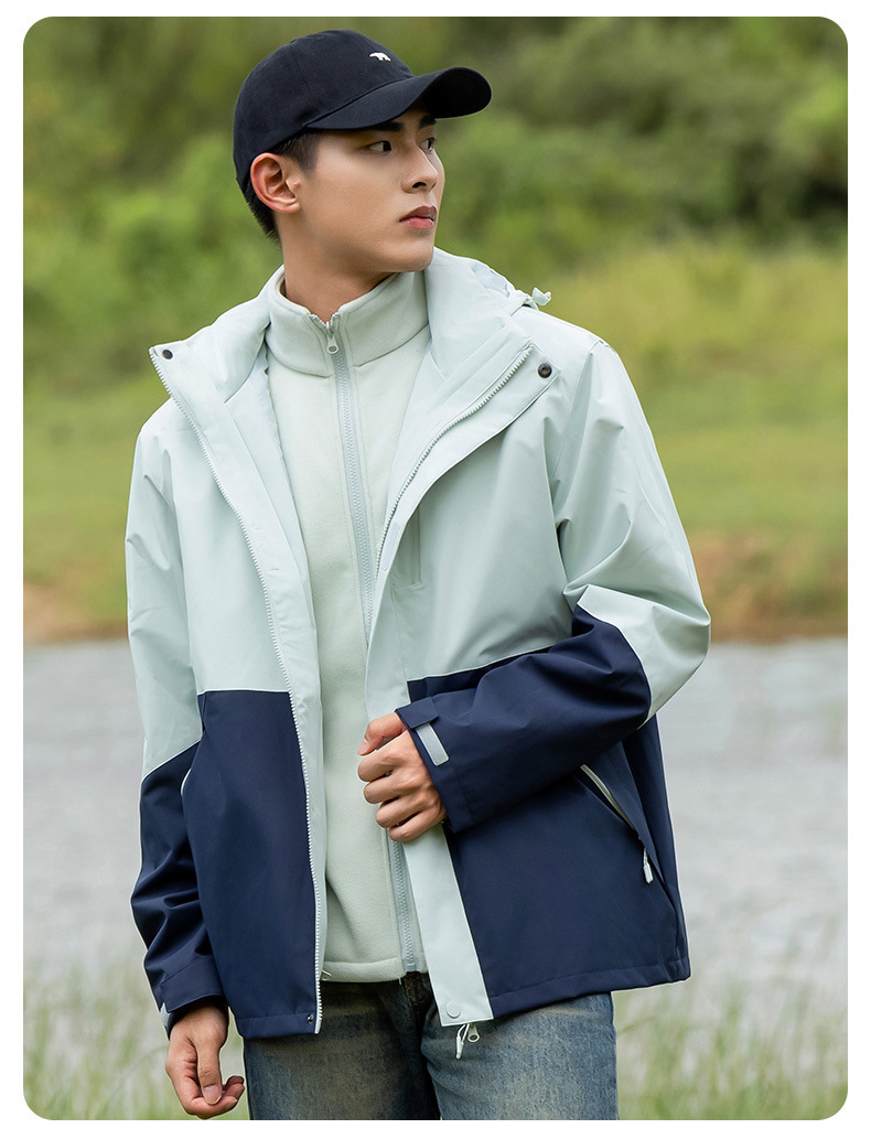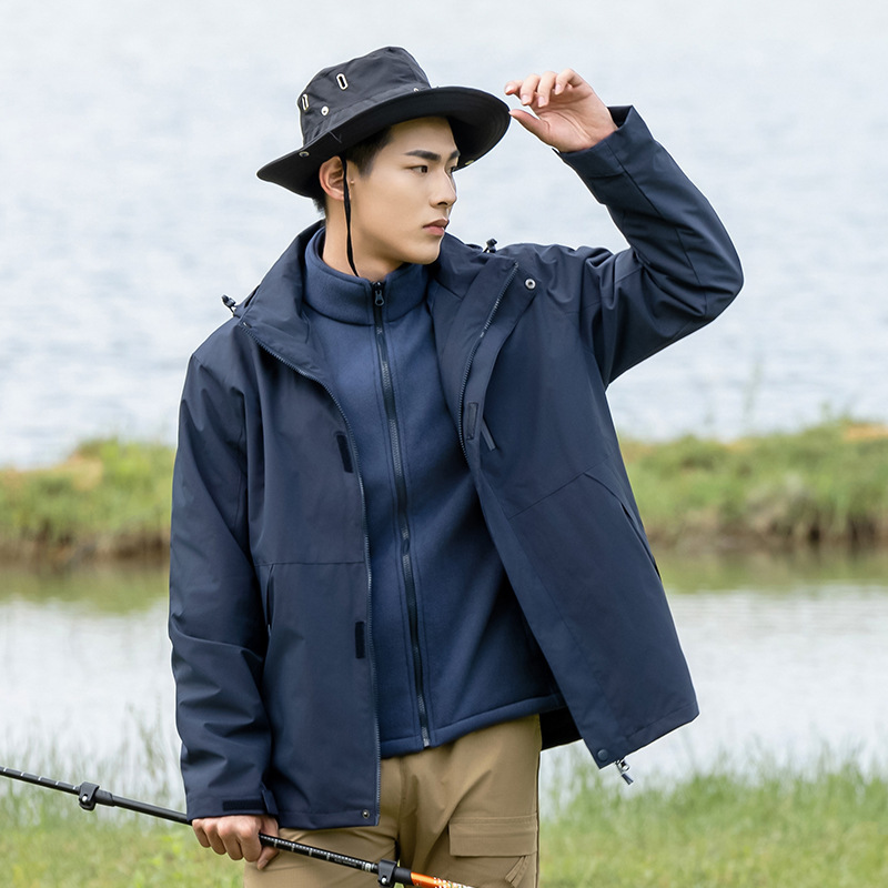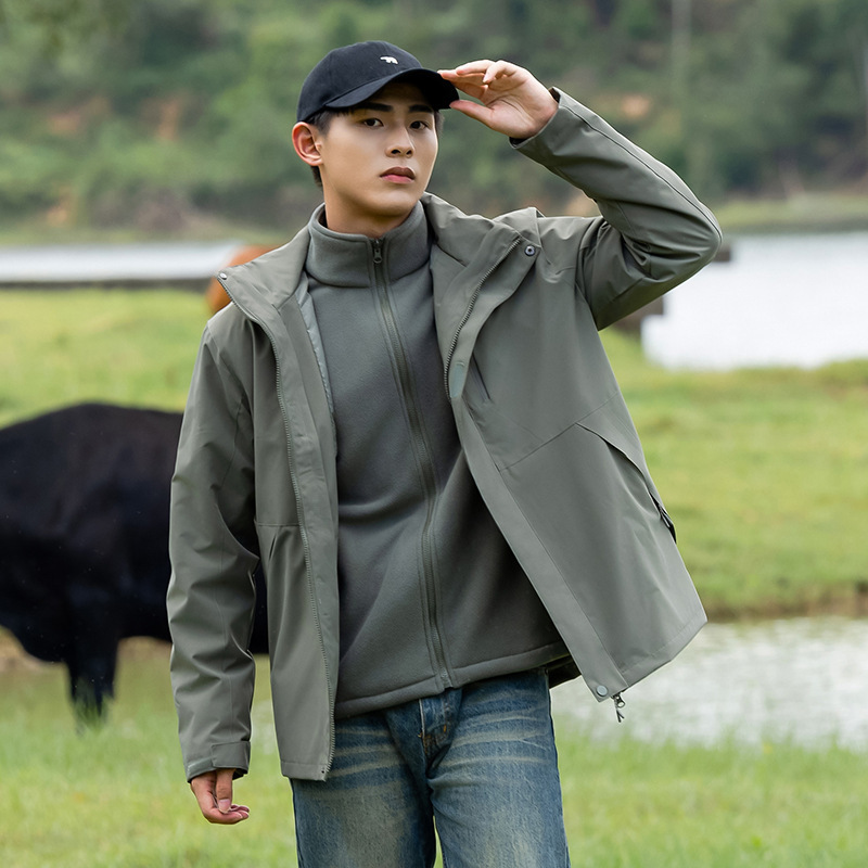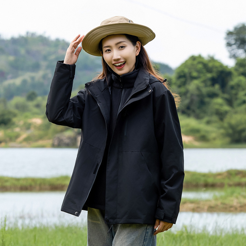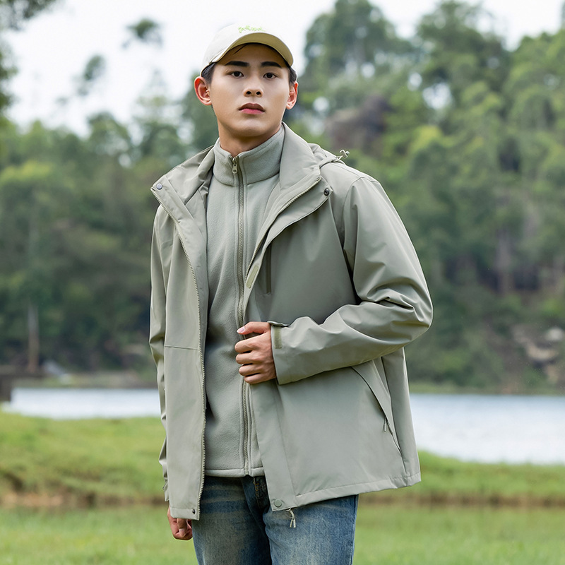 커플의 3 대 1 맞춤 분리 가능한 여성 야외 여행 방풍 및 라이너 남성 자켓이있는 방직 등산 세트스토어 가기