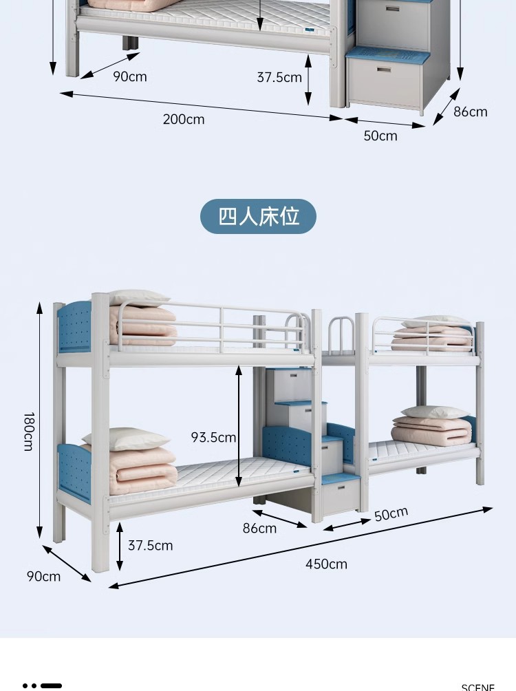 이층침대, 성인 직원 기숙사 침대, 학생용 이층침대, 두꺼운 철제 4인용 이층침대