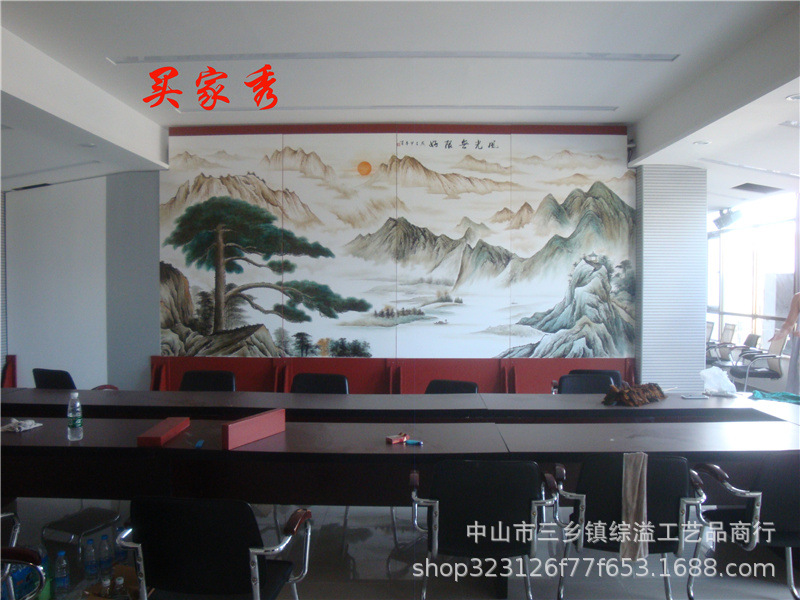 손으로 그린 소나무 고대 소나무 거실 사무실 사진 스튜디오 배경 장식 파티션 접이식 화면 금박 화면
