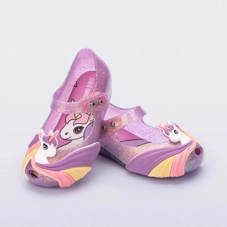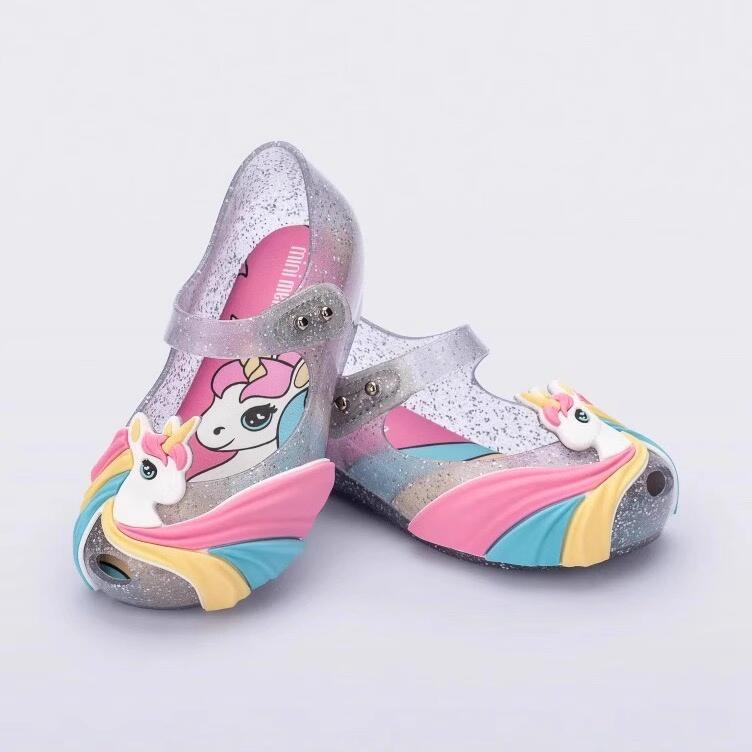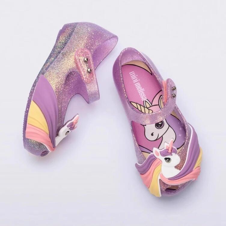 2024 새로운 멜리사 신발 소녀 샌들 공주 신발 귀여운 만화 소프트 하단 유니콘 베이비 비치 신발