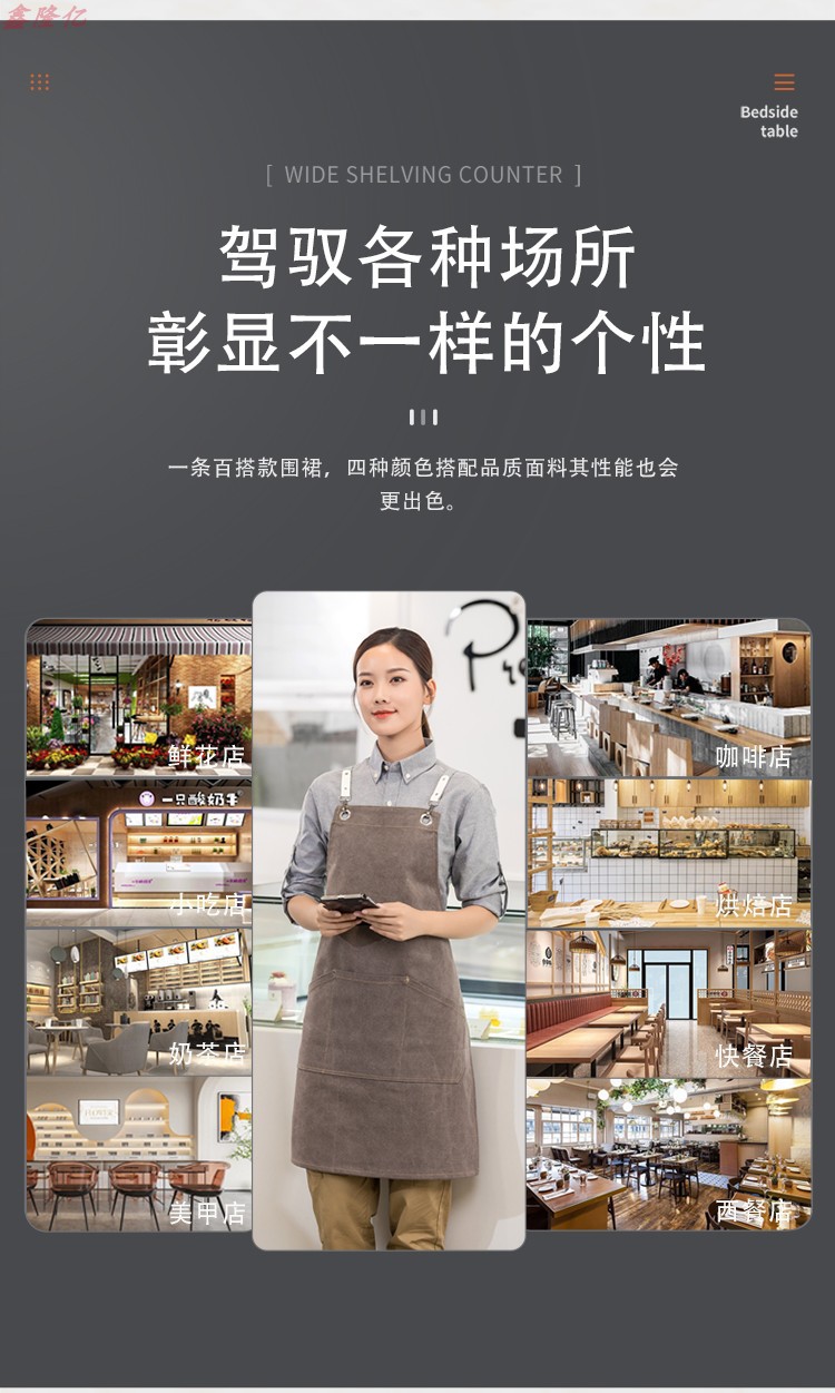 바베큐 숍 서양 레스토랑 스테이크 숍 카페 밀크 티 샵 웨이터 작업 두꺼운 앞치마 네일 아트 이발사 허리스토어 가기