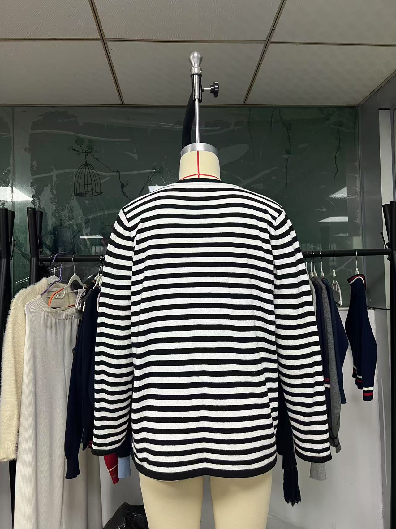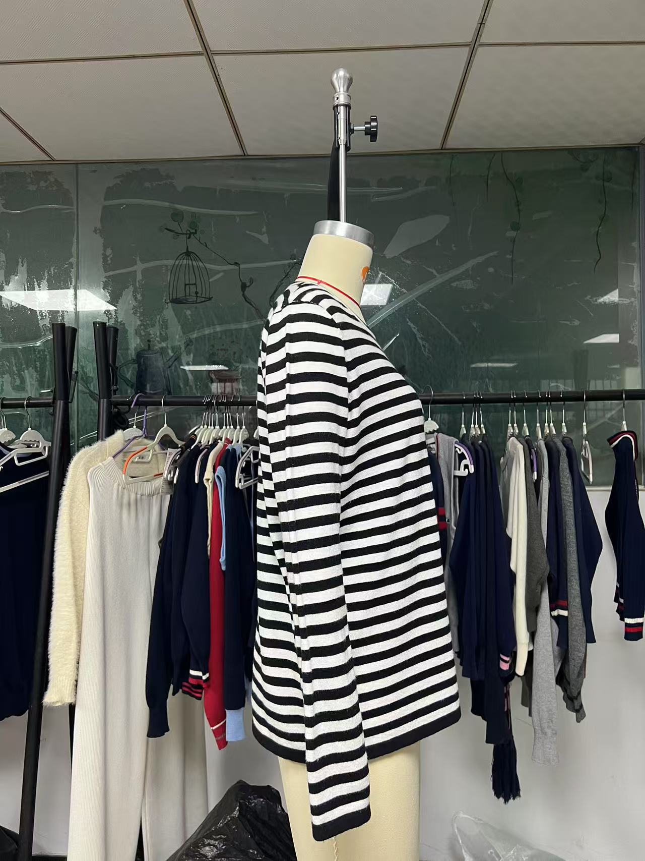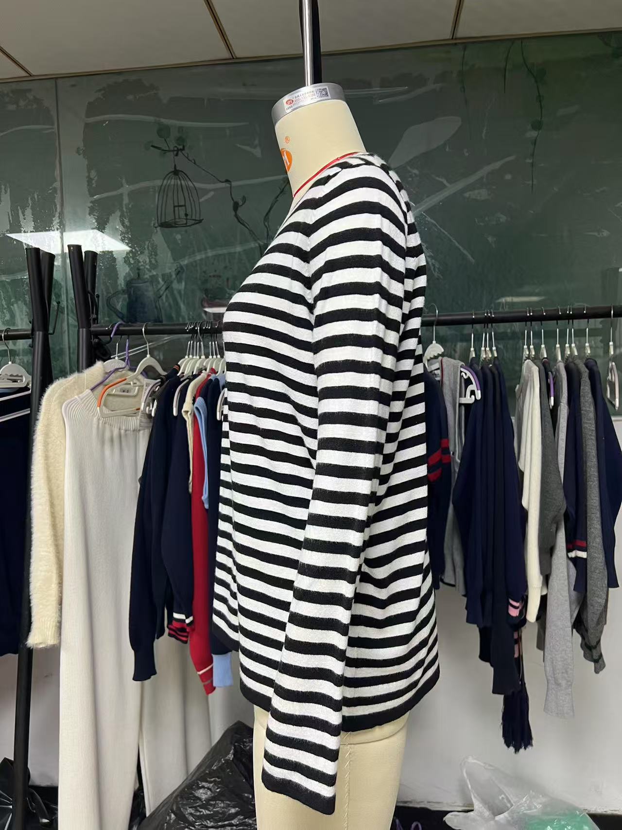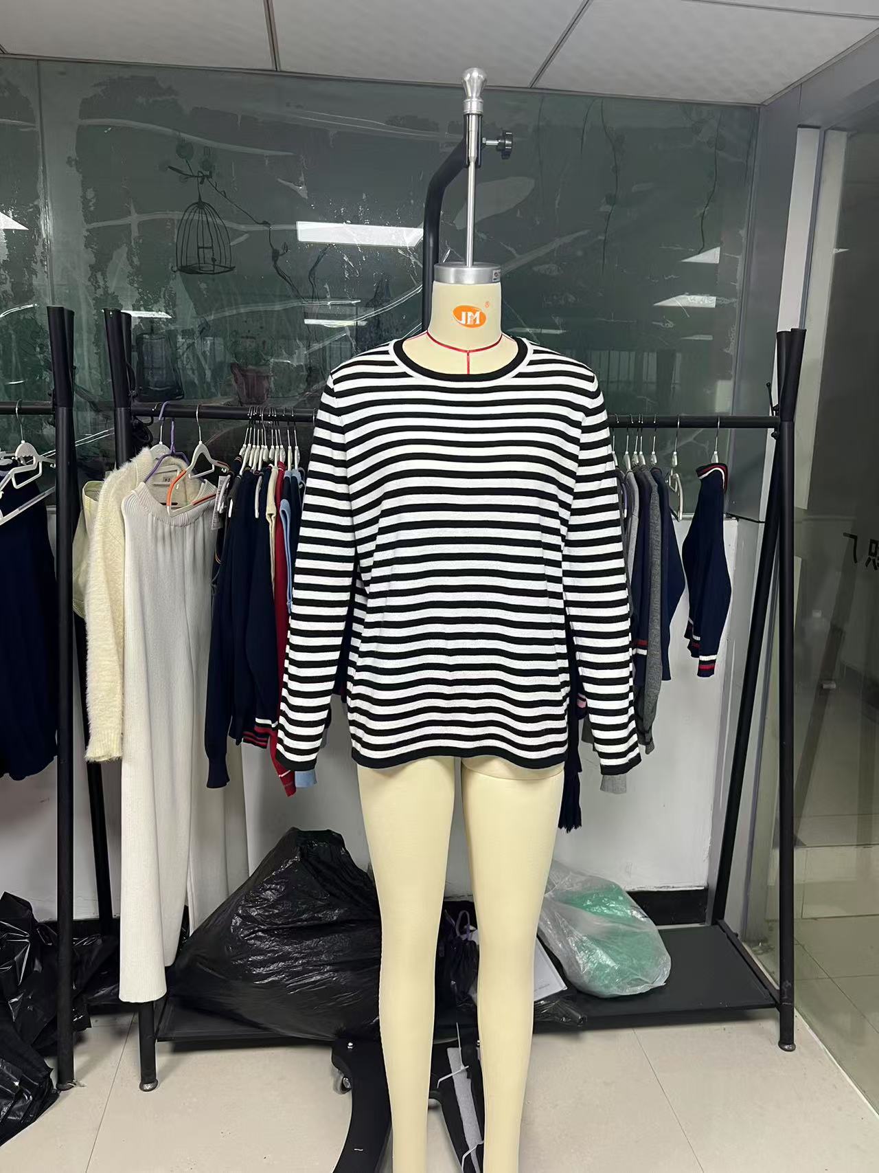 봄 가을 아마존 스트라이프 니트웨어 크로스보더 무역 라운드넥 니트 클래식 레트로 스트라이프 풀오버 여성용스토어 가기
