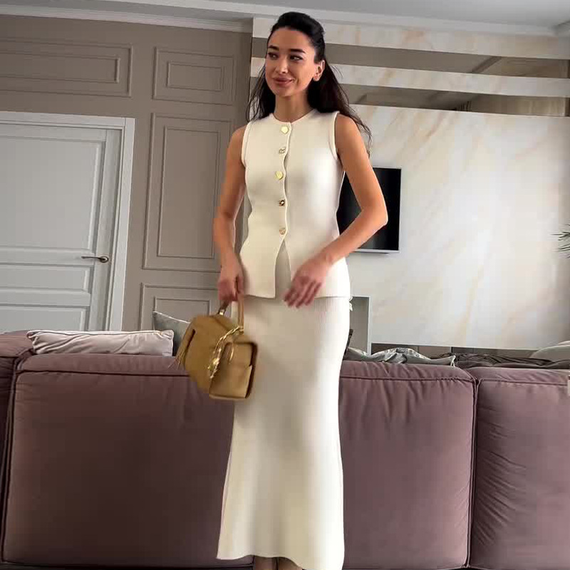 2024 여름 새로운 유럽과 미국의 아마존 국경 여성 패션 슬림 핏 조끼 솔리드 컬러 슬림 핏 힙합 스커트 세트