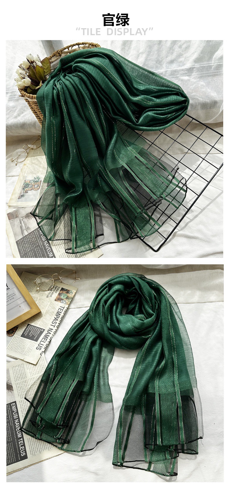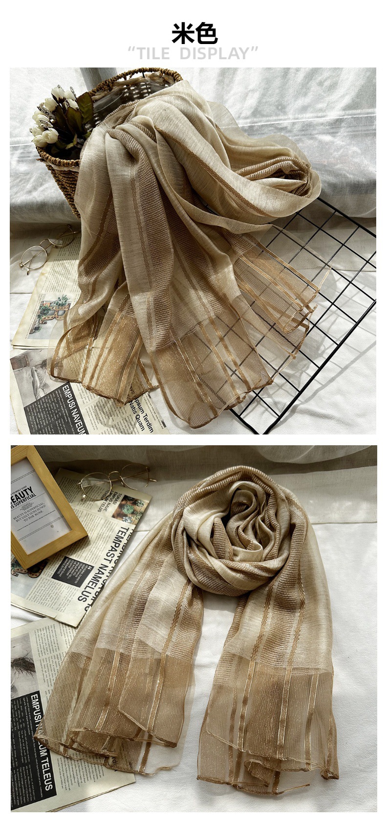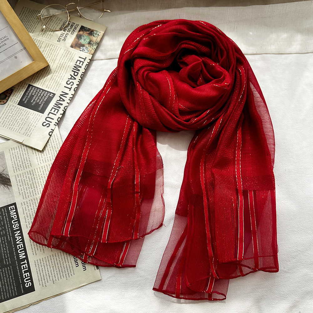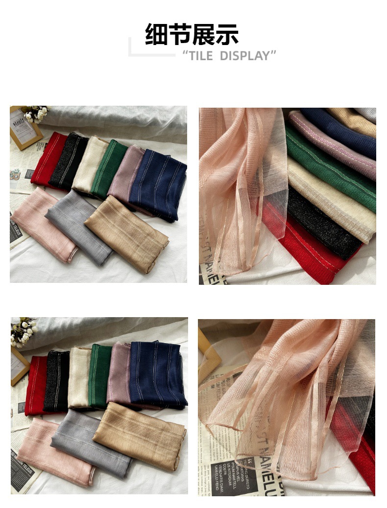 국경 간 실크 스카프 고급 단색 긴 머리 스카프 여성의 새로운 우아한 골드 라인 목도리 빈 스카프스토어 가기