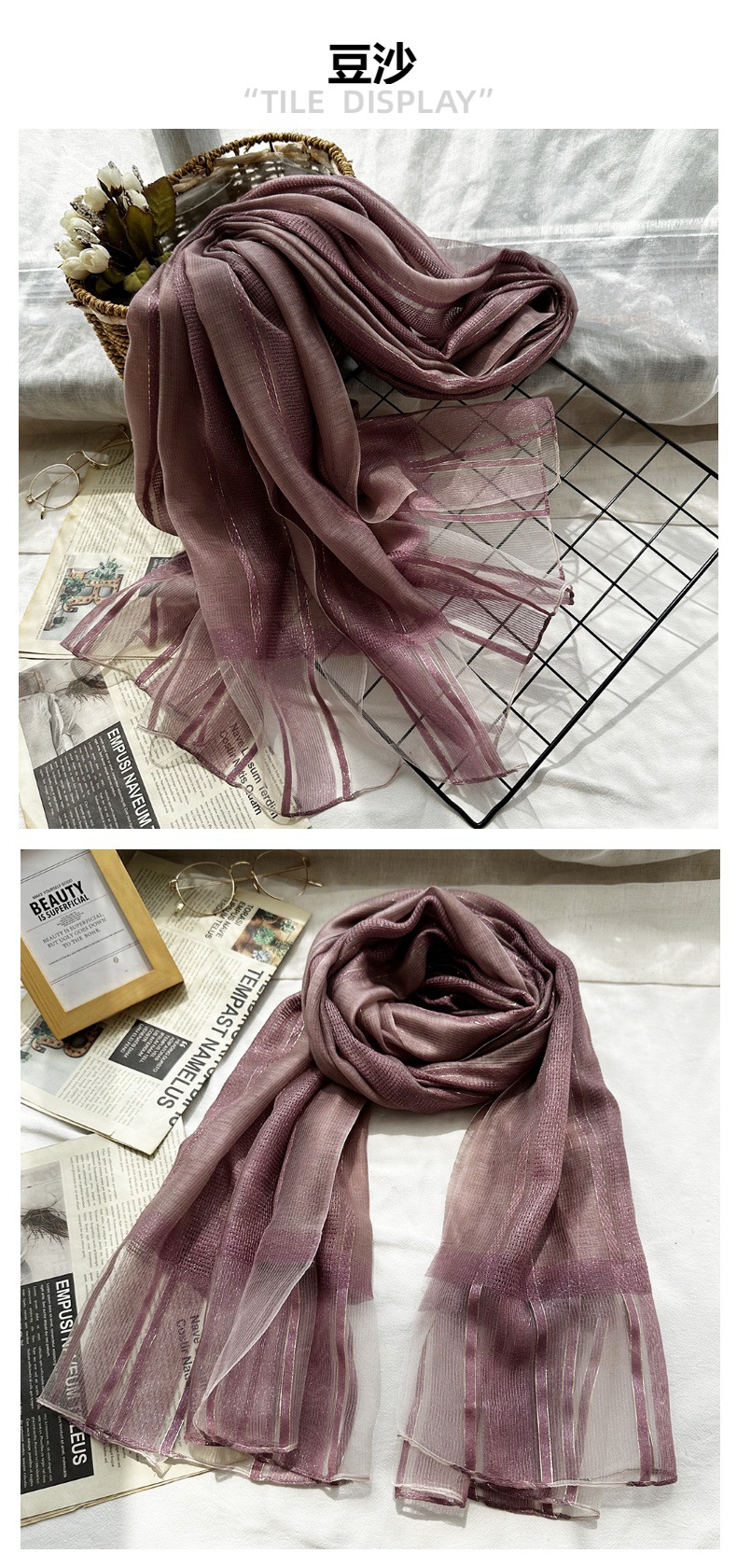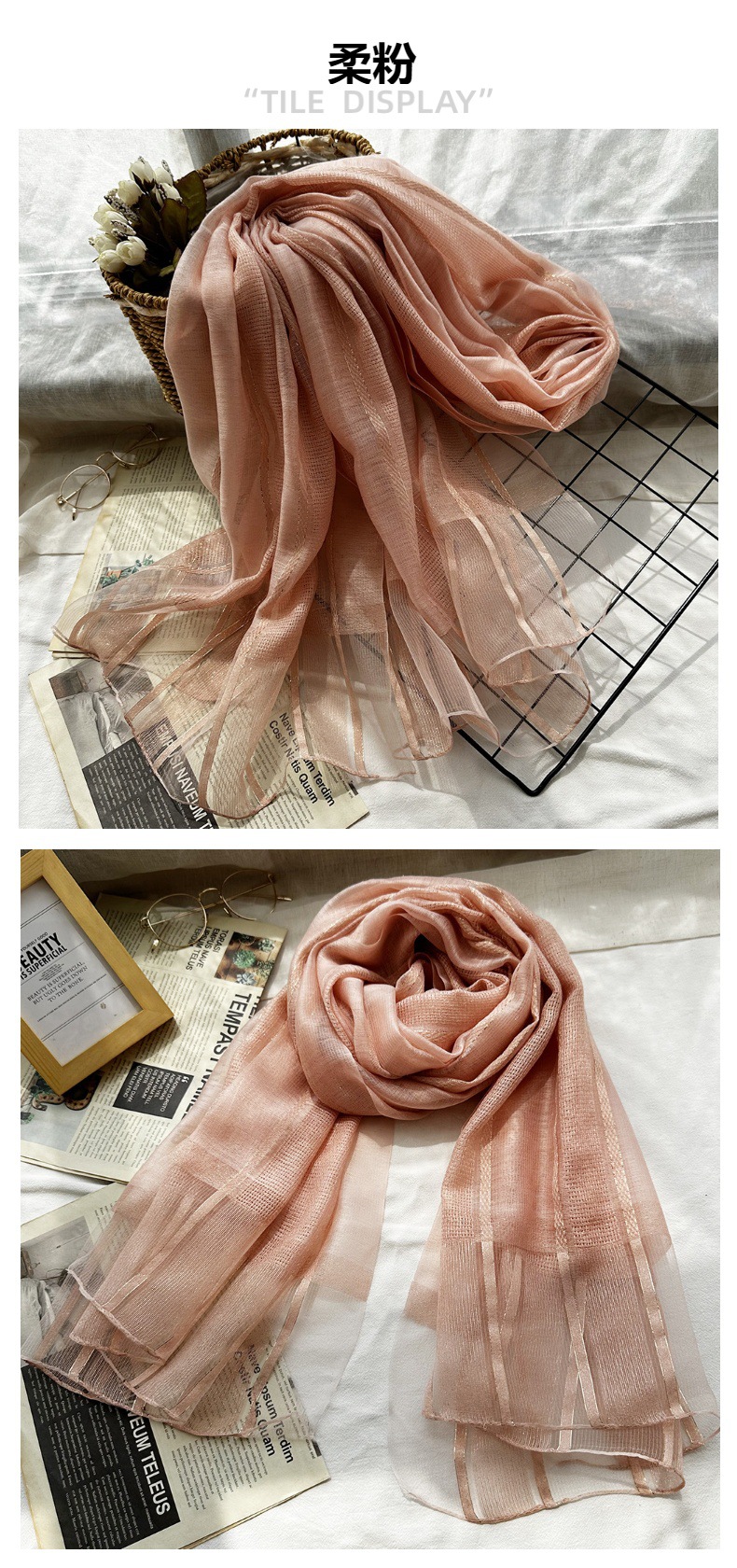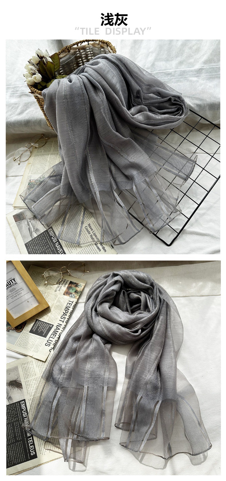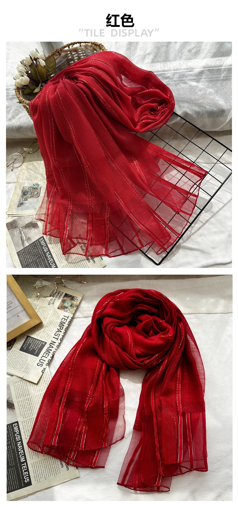 국경 간 실크 스카프 고급 단색 긴 머리 스카프 여성의 새로운 우아한 골드 라인 목도리 빈 스카프스토어 가기