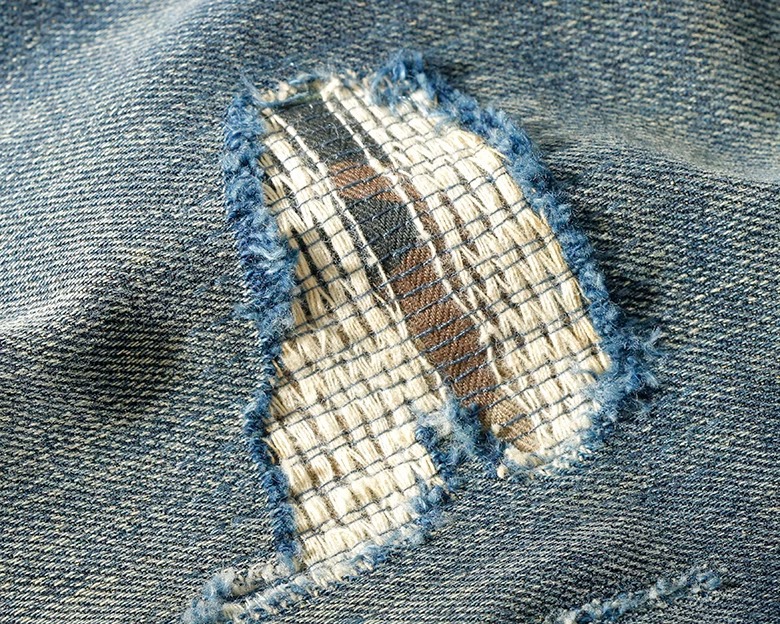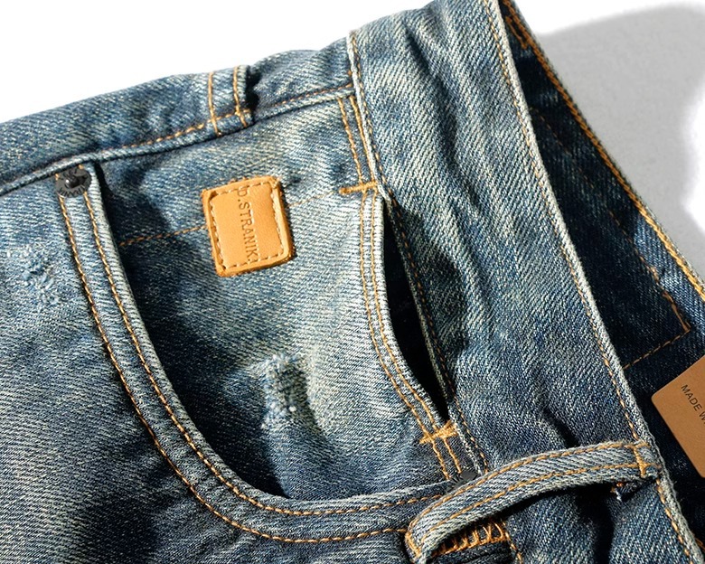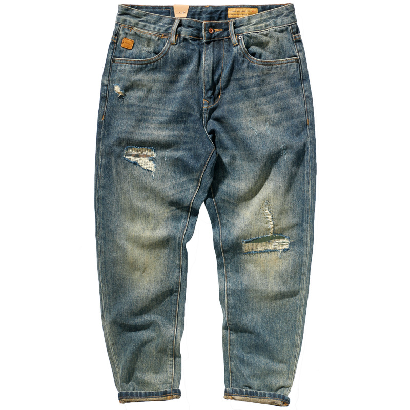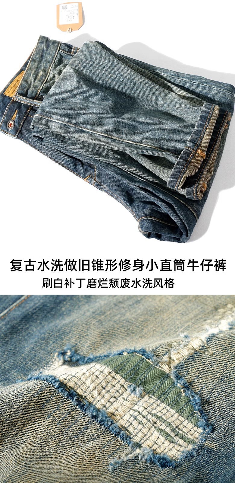 패치워크 데님 팬츠 남성용 찢어진 패치워크 스트레이트 레그 트렌디 브러쉬드 화이트 고양이털 워싱 데님 롱 팬츠 캐주얼 만능템스토어 가기