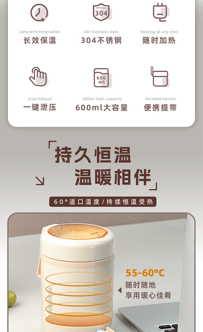 304 스테인레스 스틸 플러그인 전기 일정한 온도 물 컵 사무실 직원은 아침 식사 컵 자동차 휴대용 컵 도매로 가열 될 수 있습니다.스토어 가기