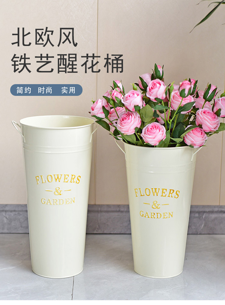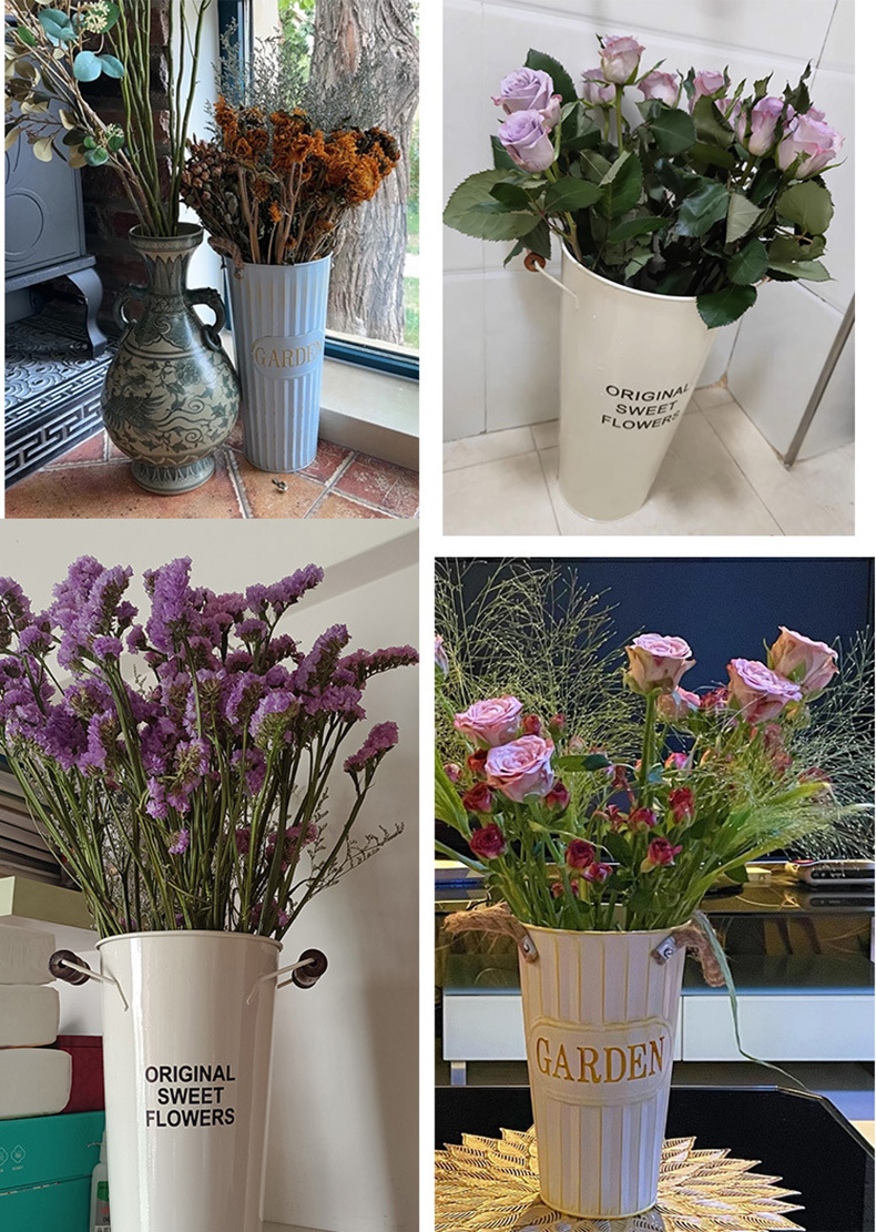철 아크 꽃 양동이 식물 가정 꽃 꽃 꽃 배열 말린 꽃 양동이 북유럽 스타일 장식 주석 양동이 큰 바닥 서 꽃 양동이스토어 가기