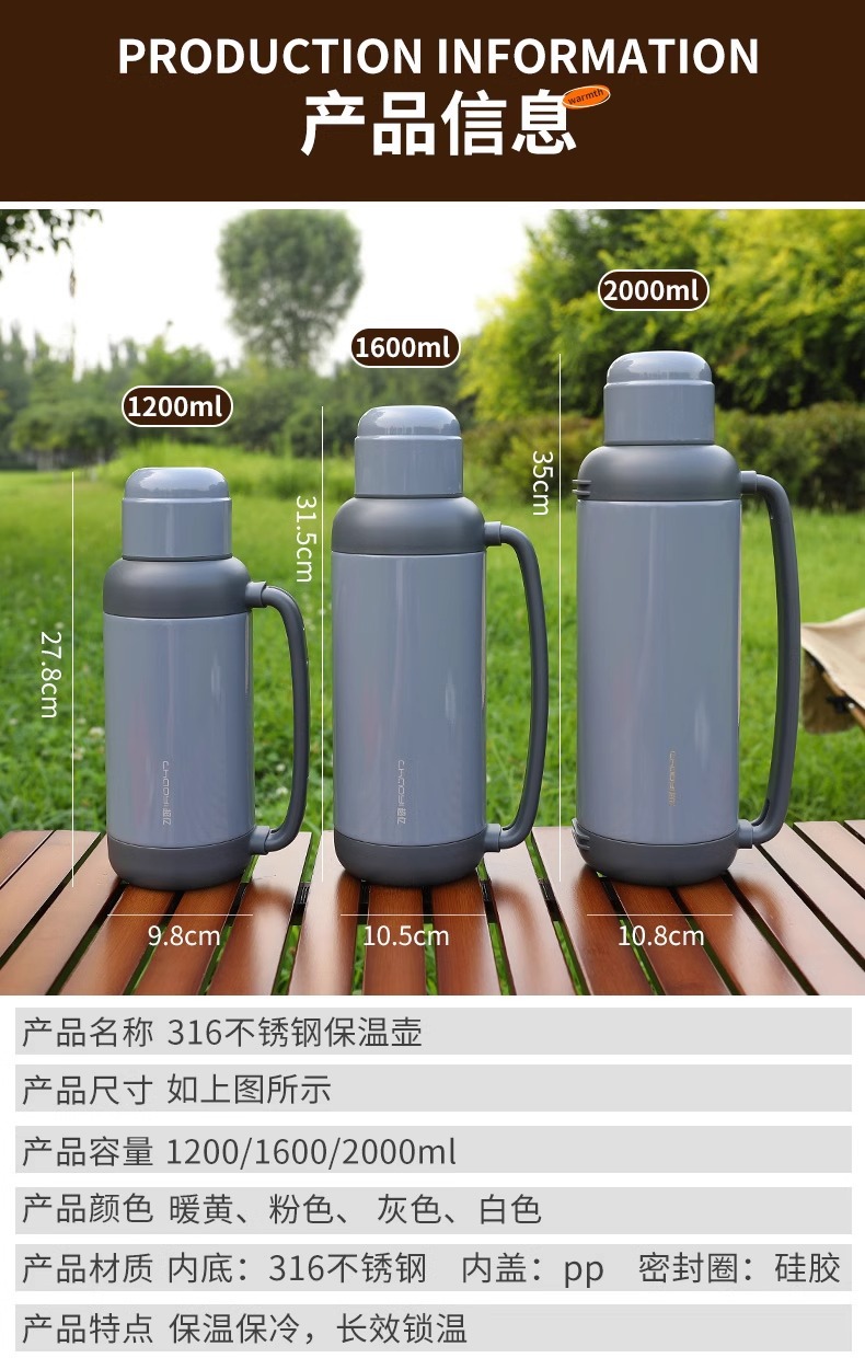 절연 주전자 316 스테인레스 스틸 대용량 절연 컵 야외 자동차 휴대용 절연 주전자 여행 주전자 도매