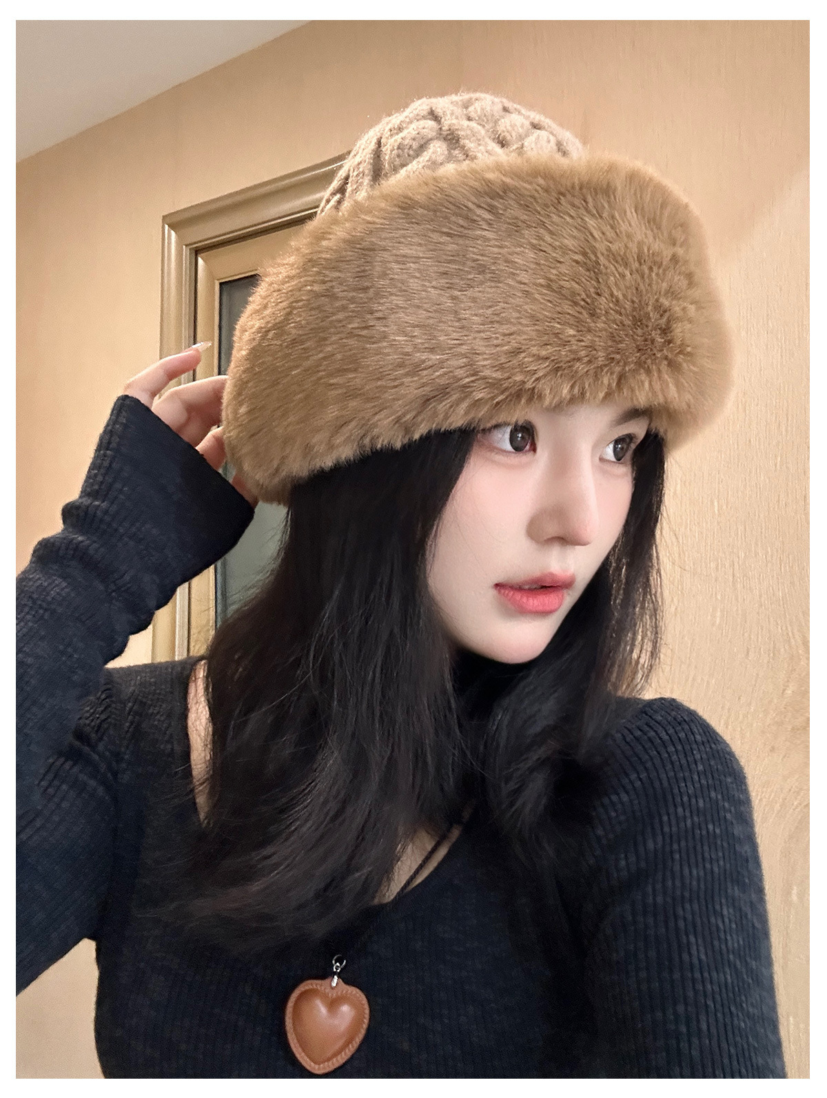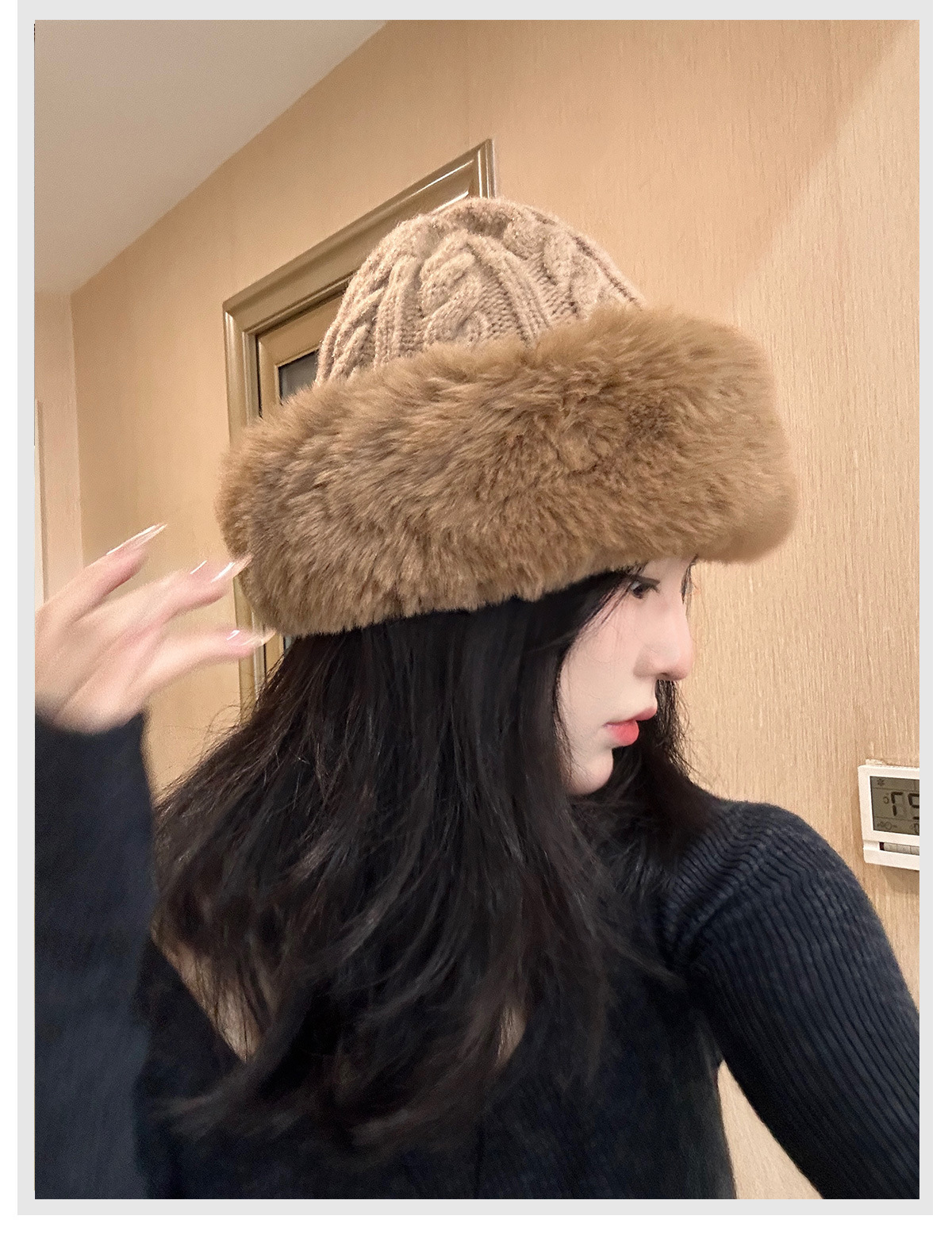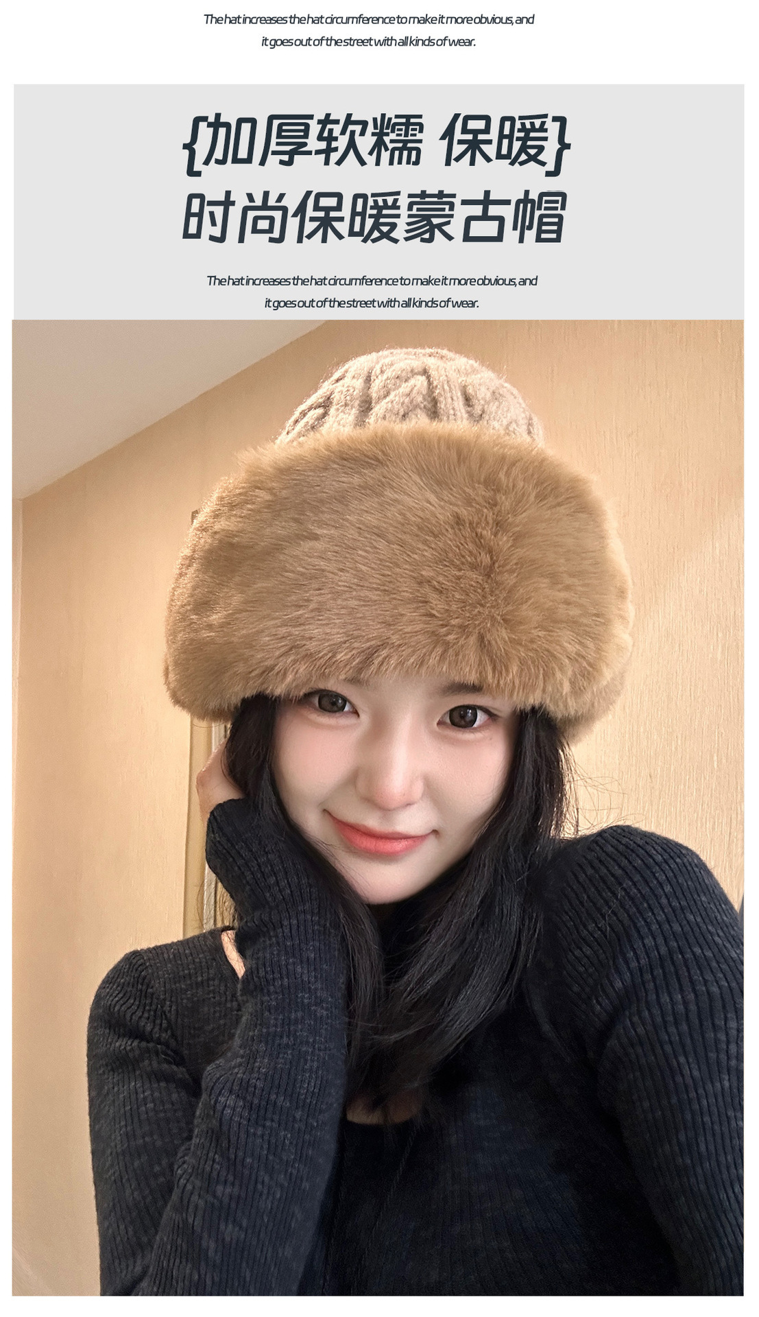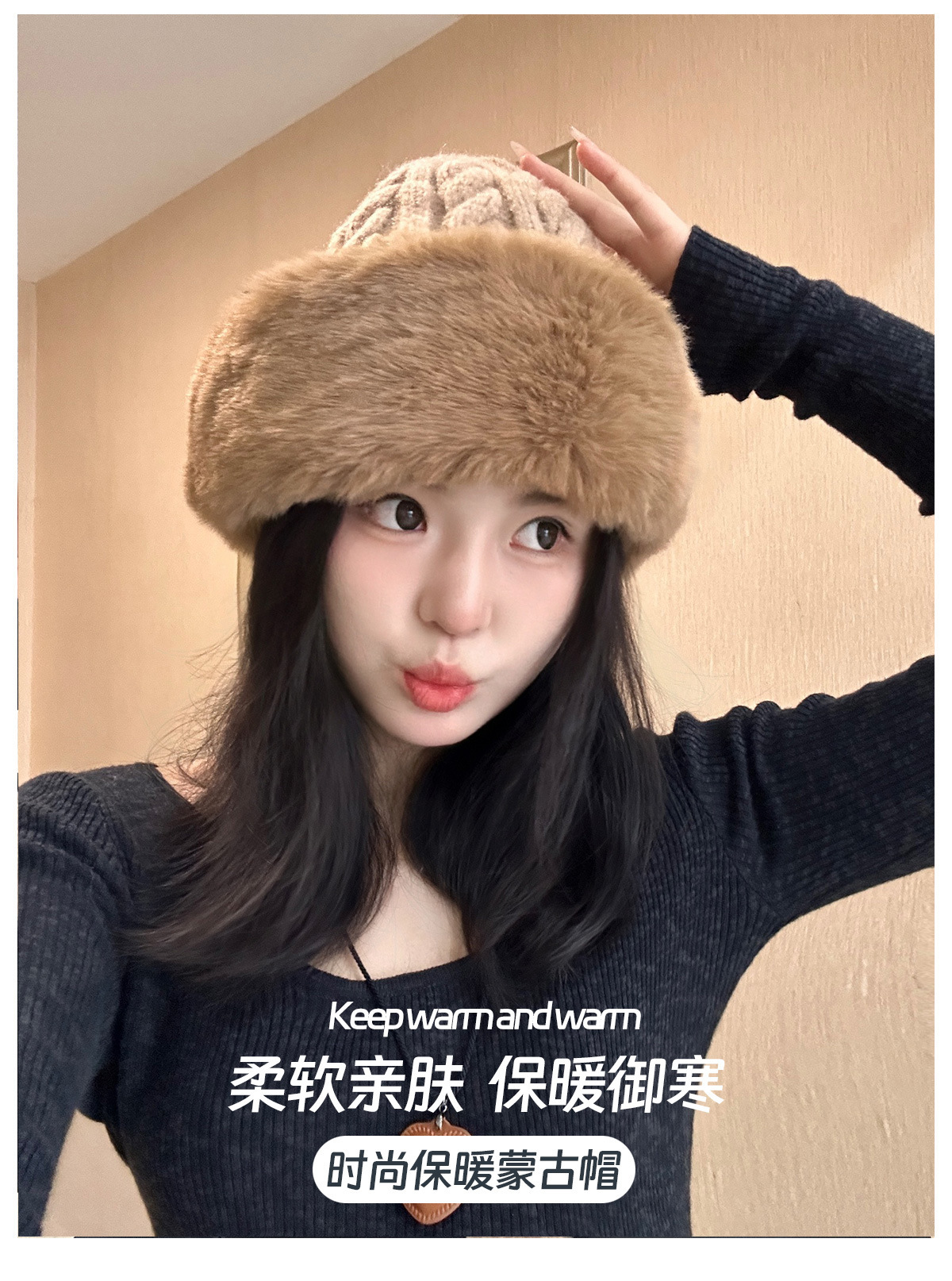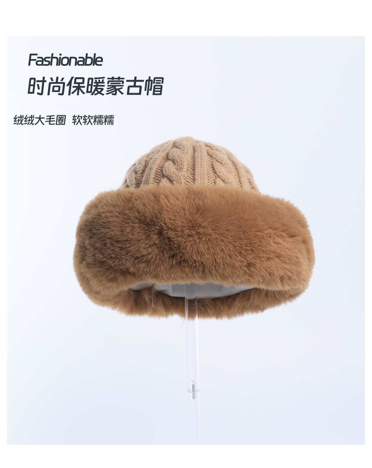• 베이지/트위스트 몽골 플러시 모자