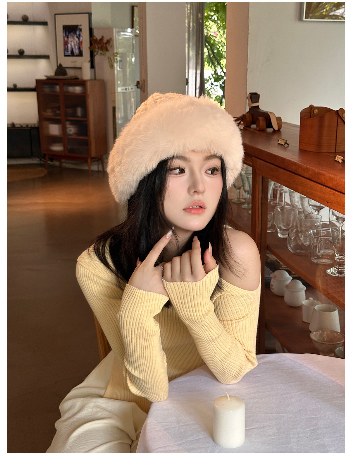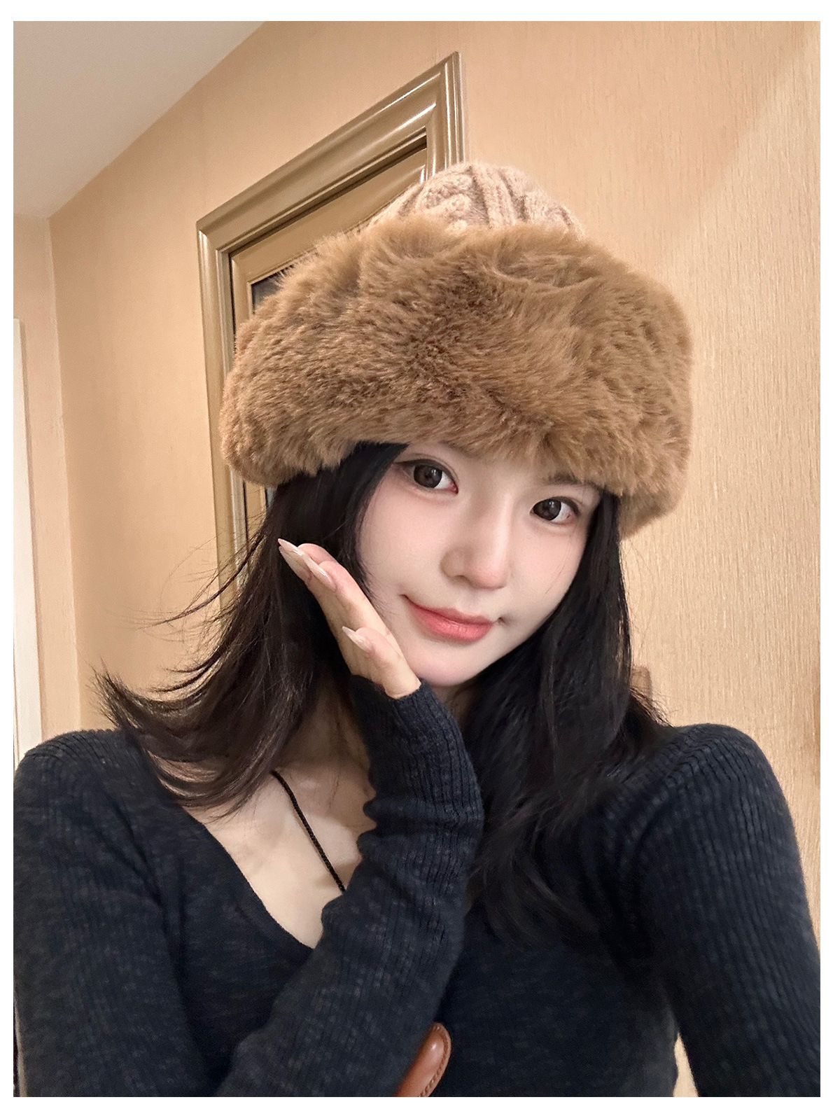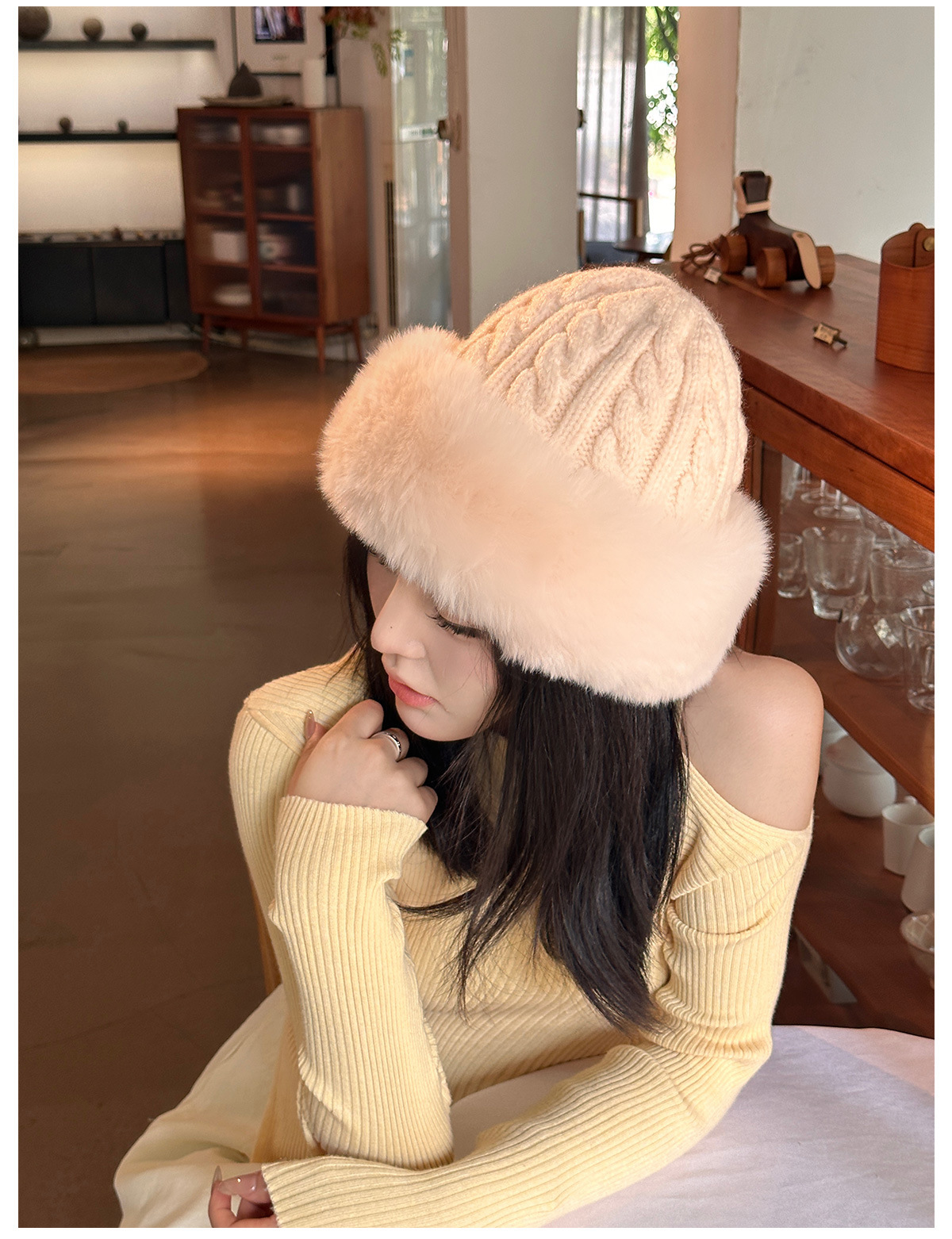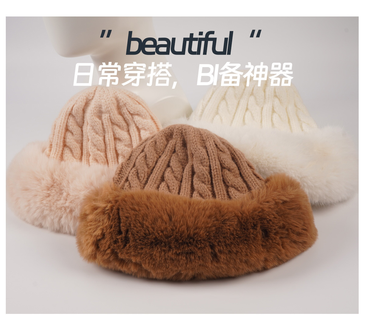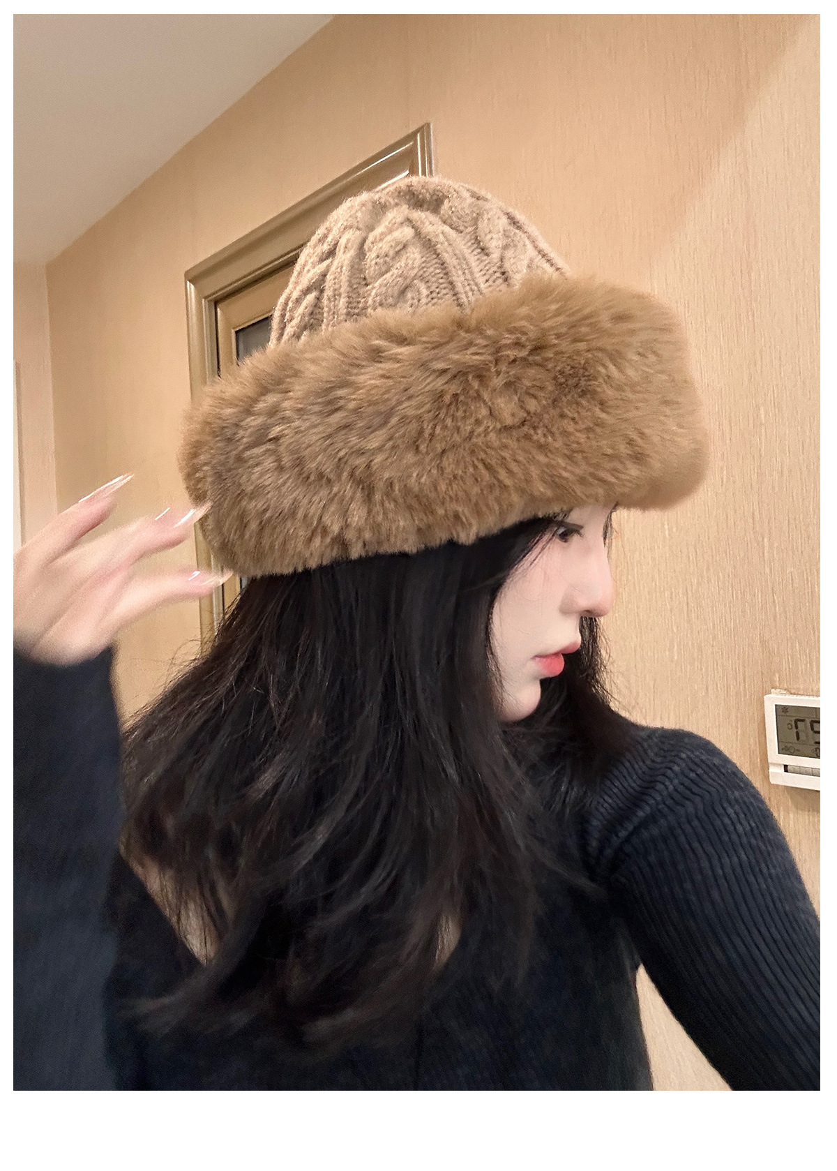 • 베이지/트위스트 몽골 플러시 모자