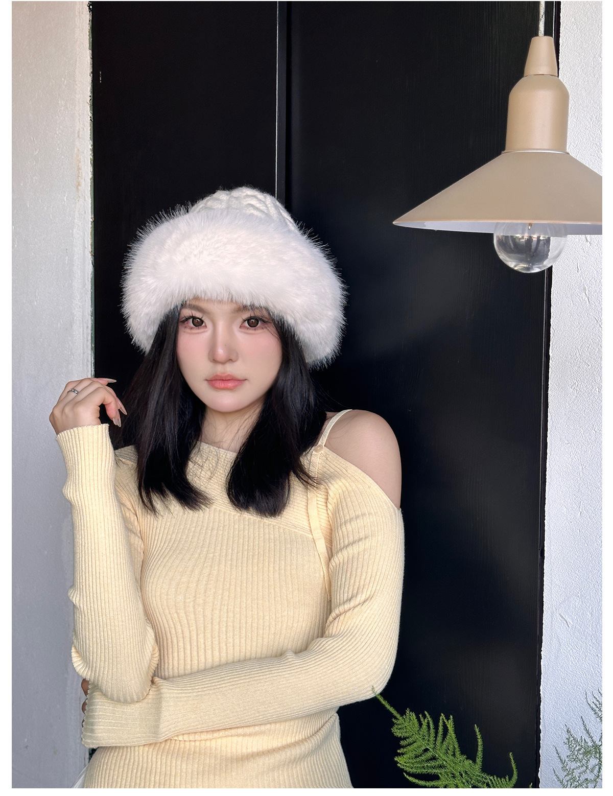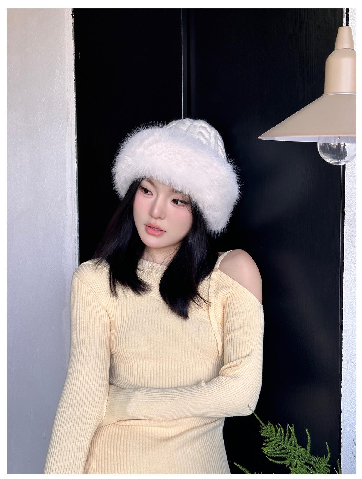 • 화이트/트위스트 몽골 플러시 모자
