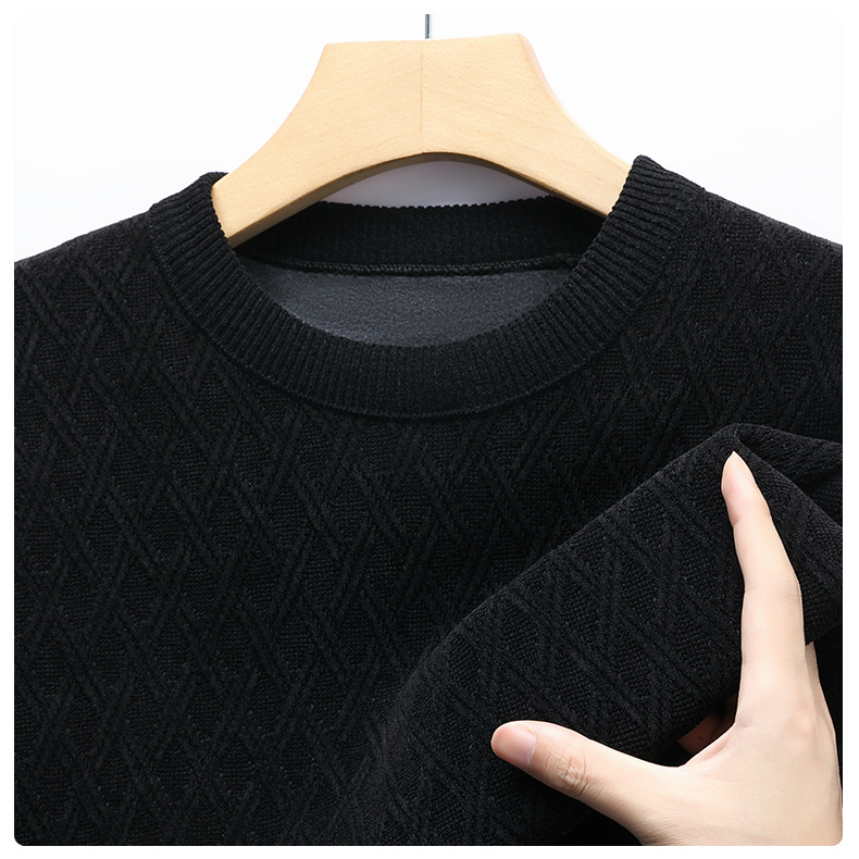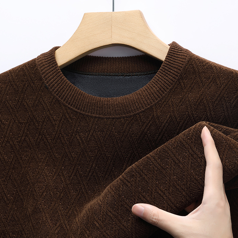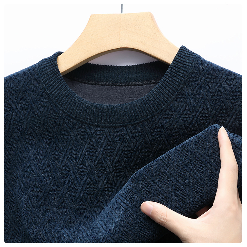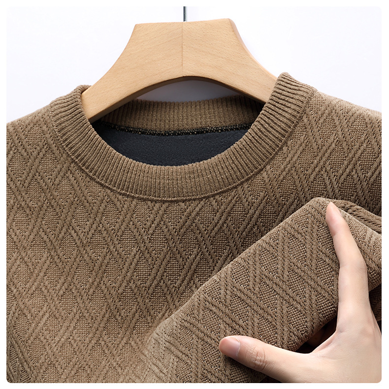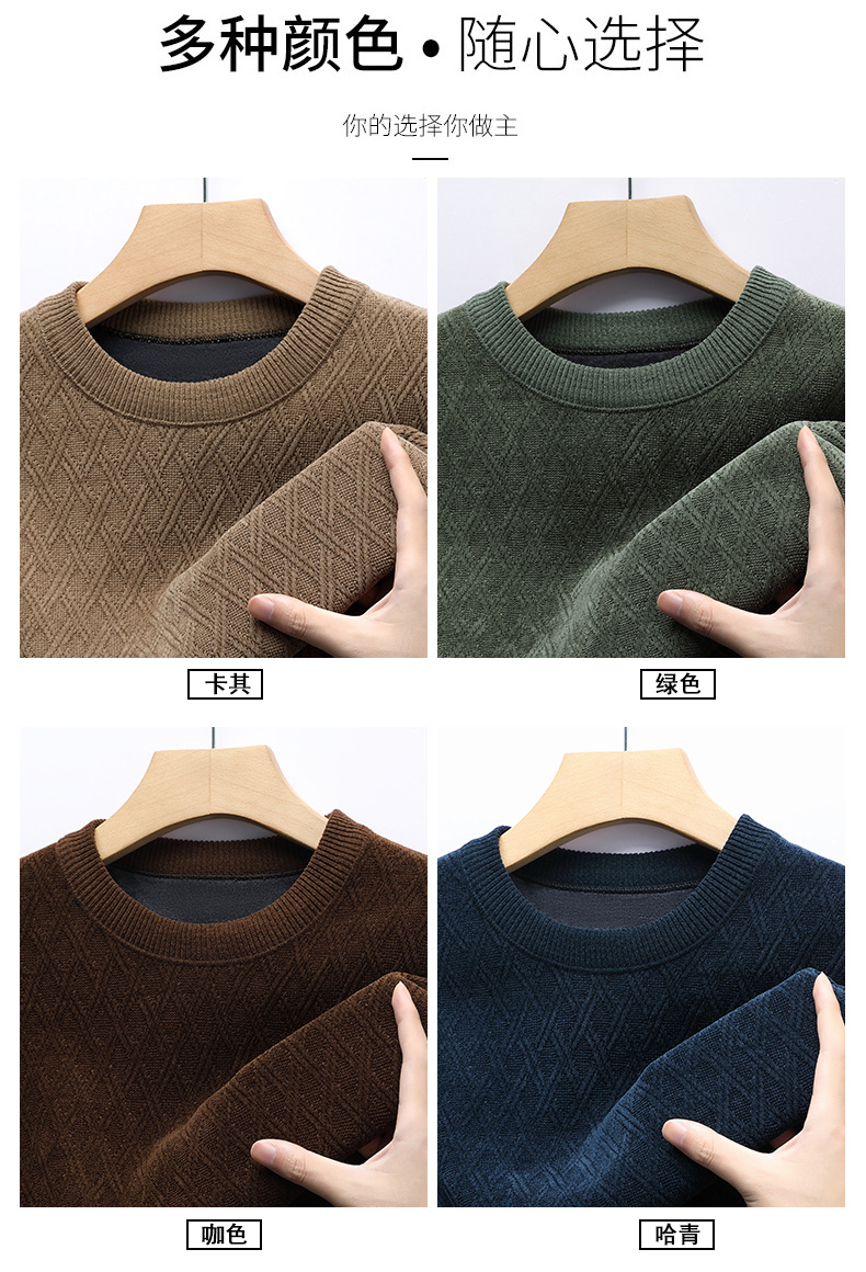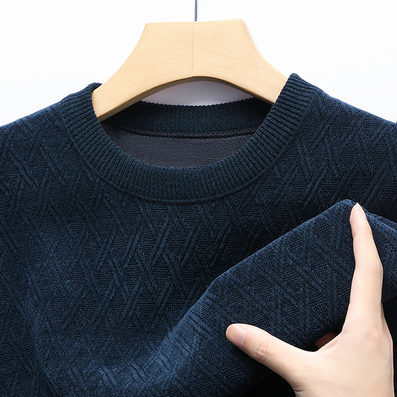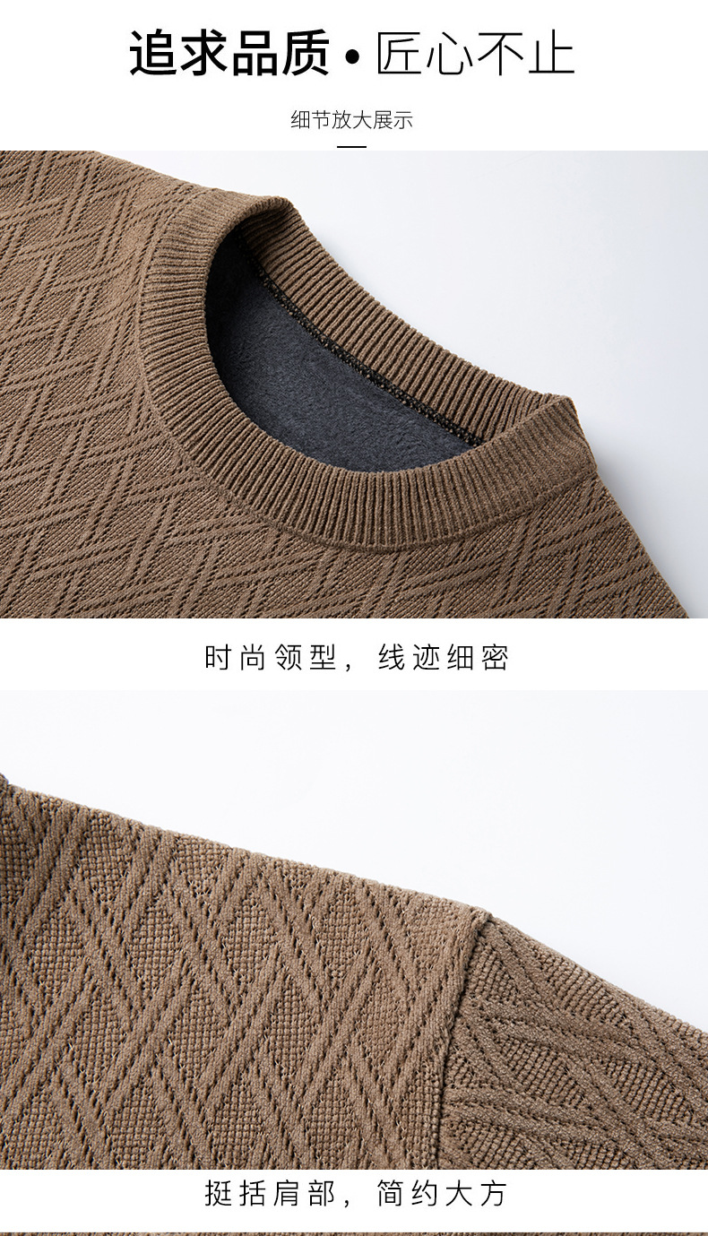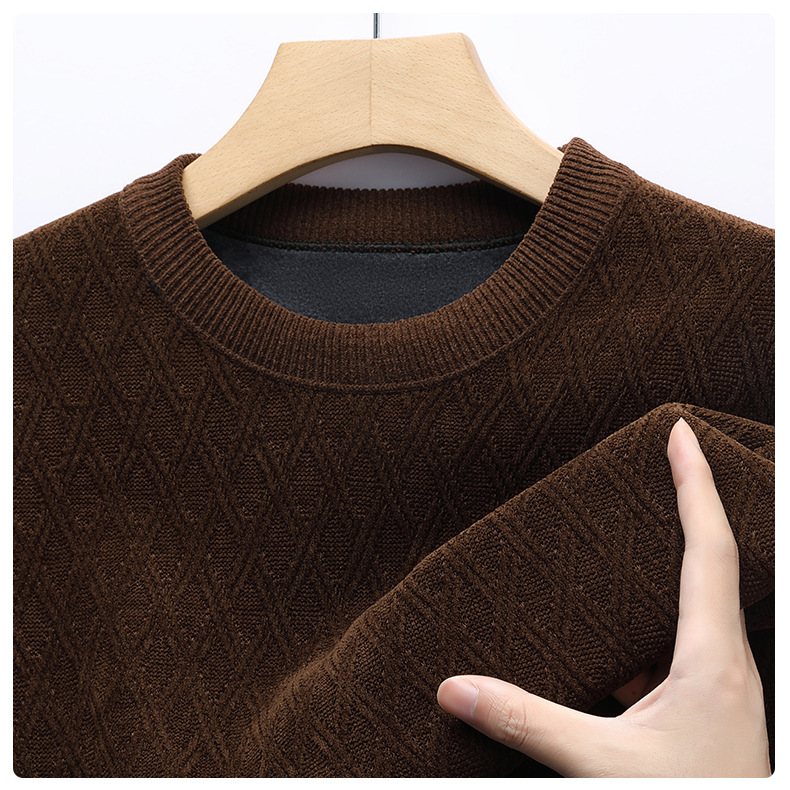 겨울 기모 두꺼운 크루 넥 스웨터 남자 캐주얼 따뜻한 내복 아빠 올 매치 다이아몬드 자카드 스웨터