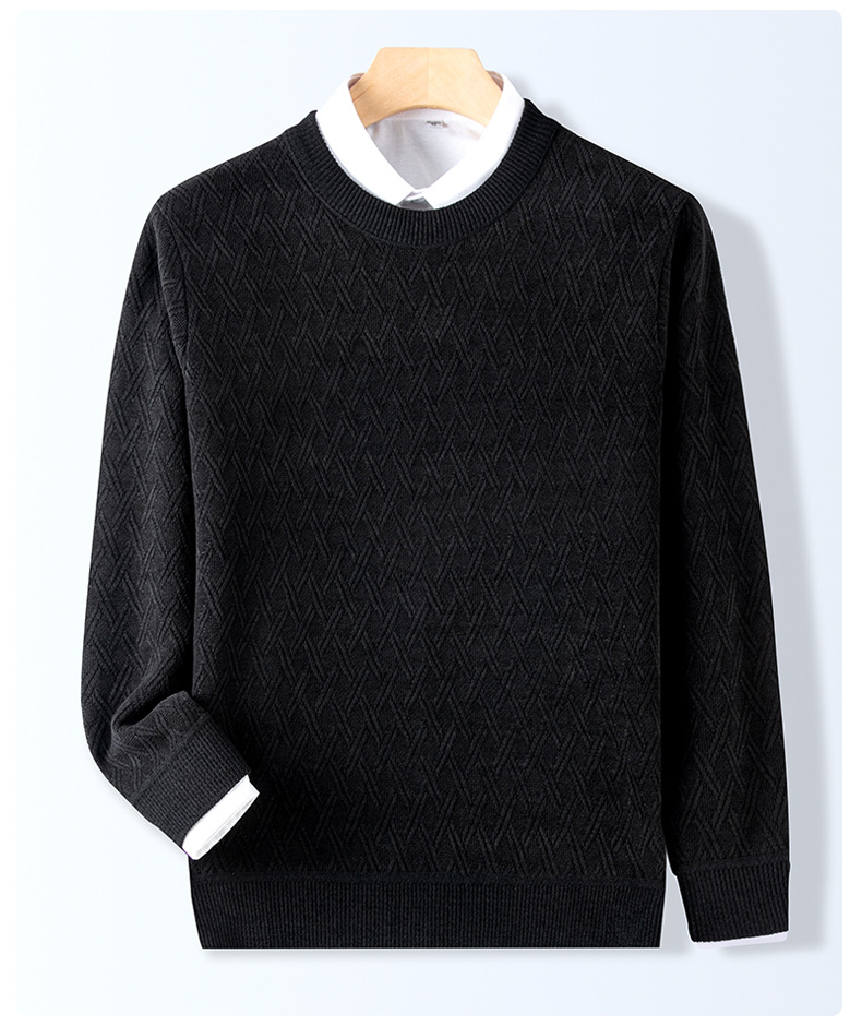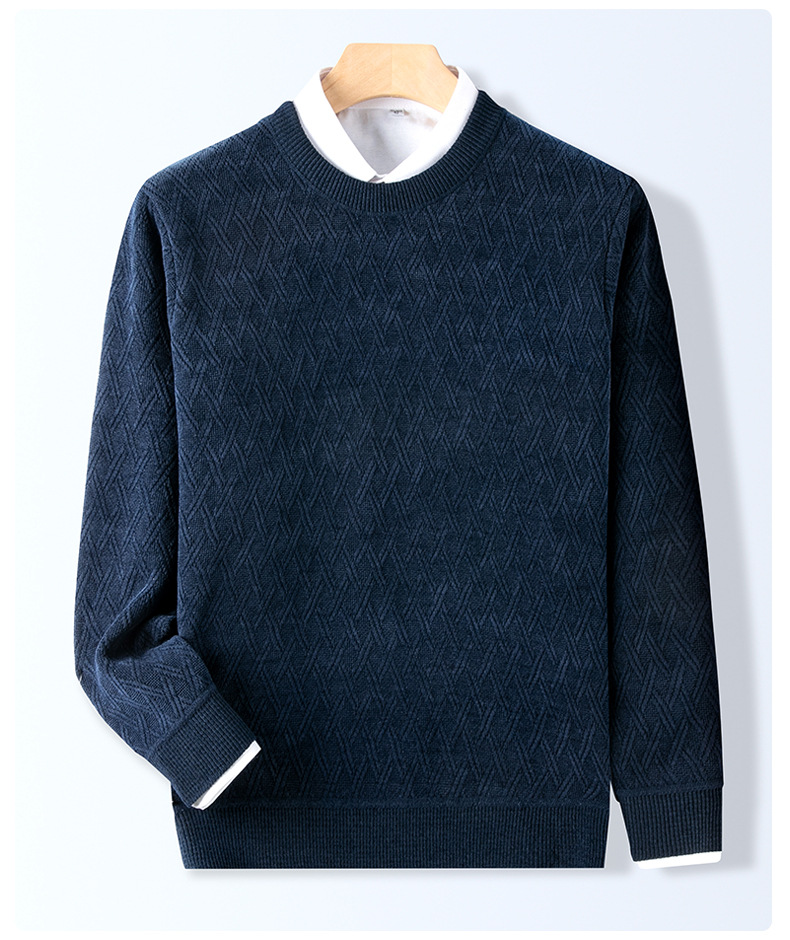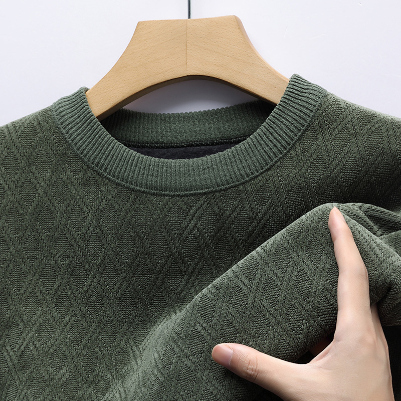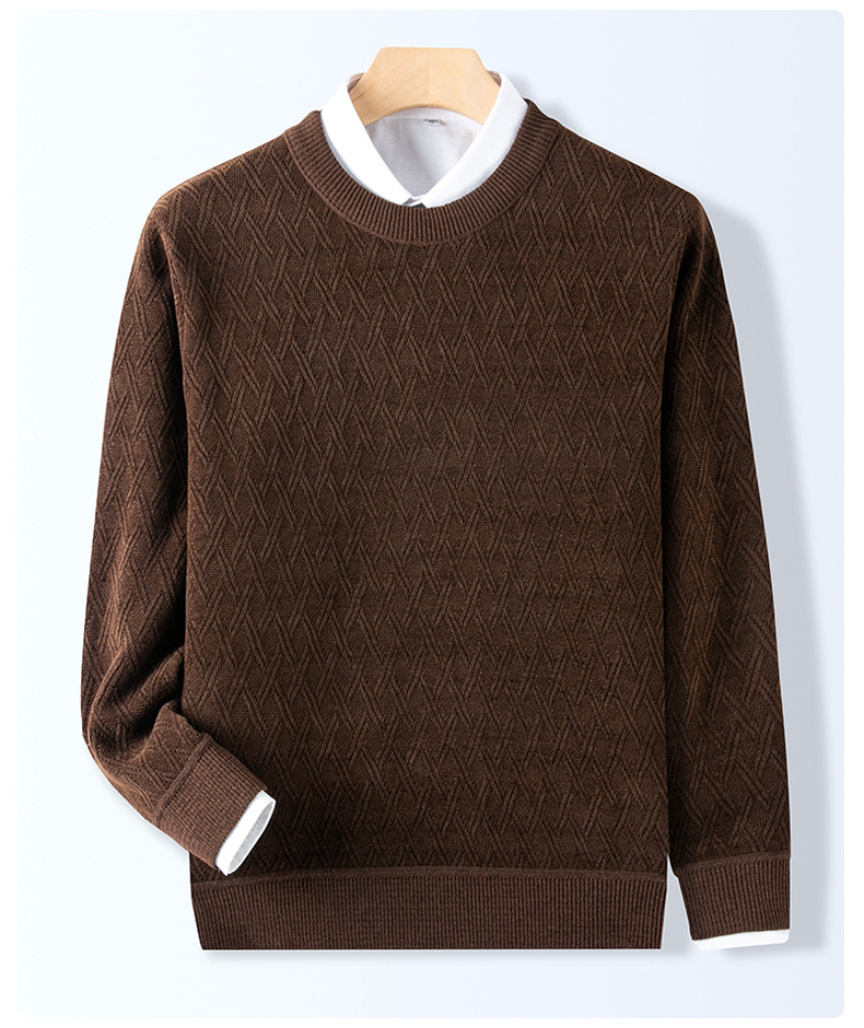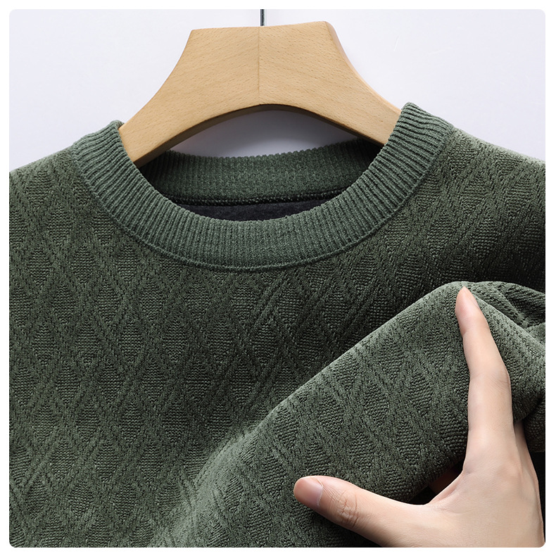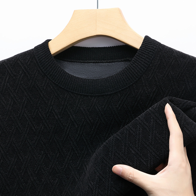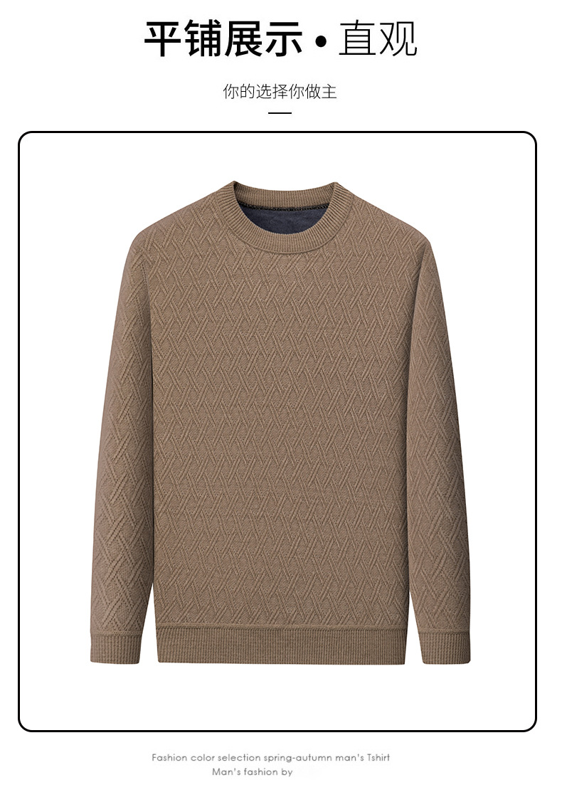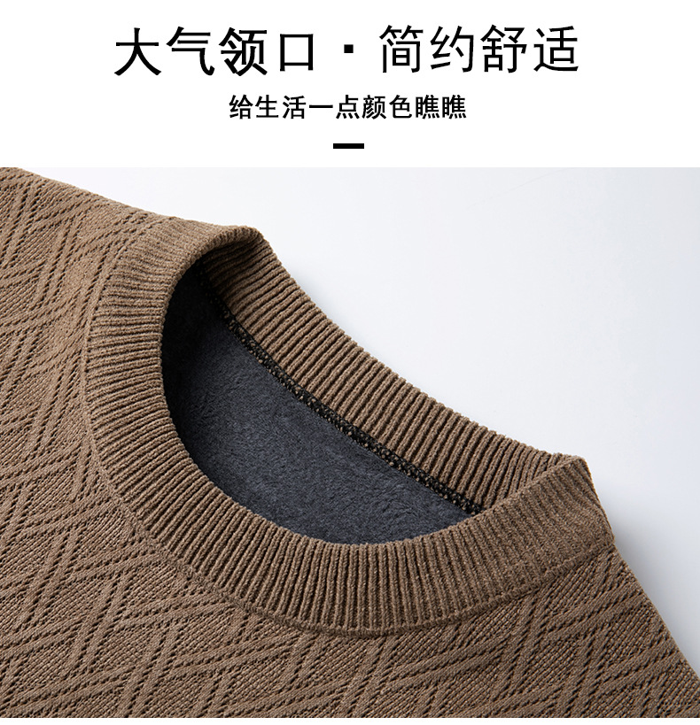 겨울 기모 두꺼운 크루 넥 스웨터 남자 캐주얼 따뜻한 내복 아빠 올 매치 다이아몬드 자카드 스웨터