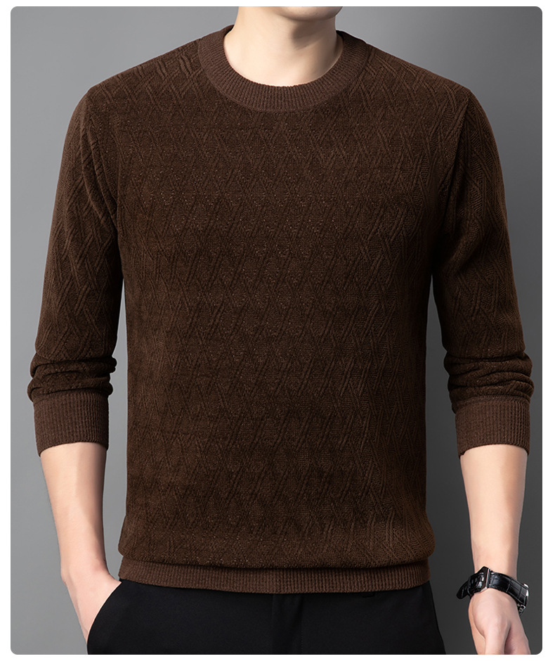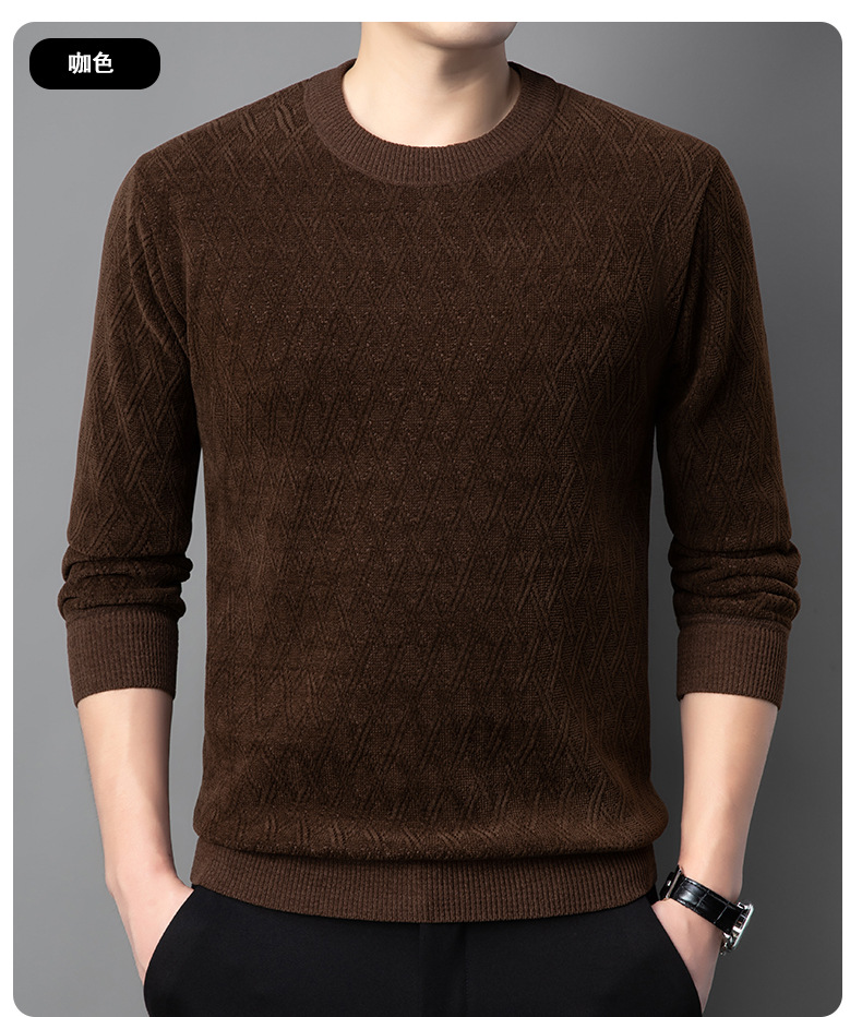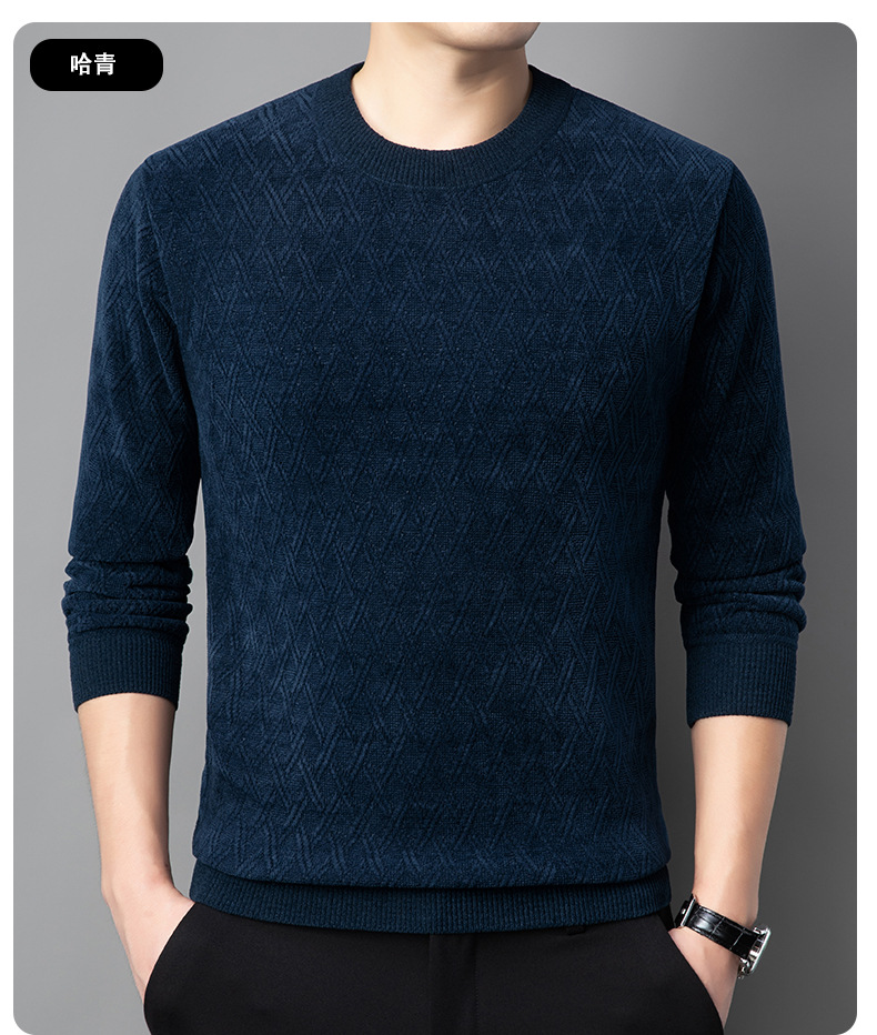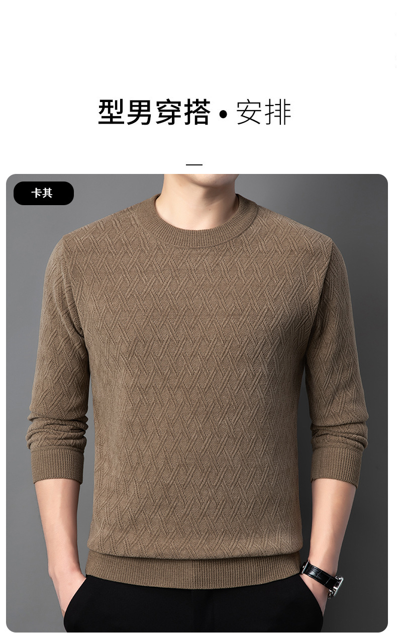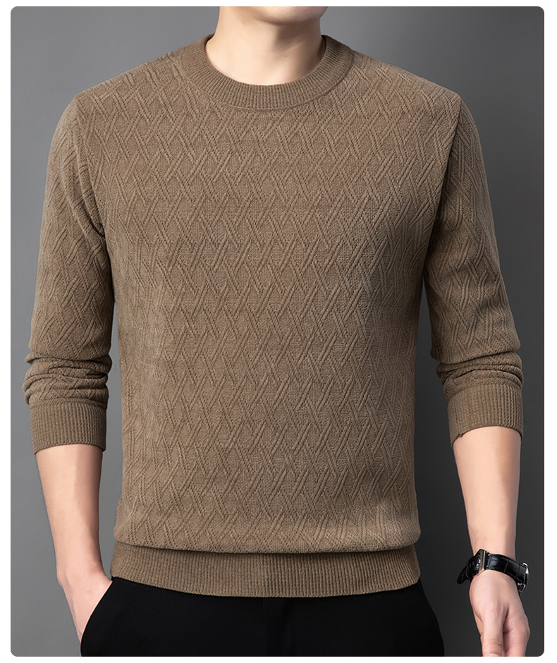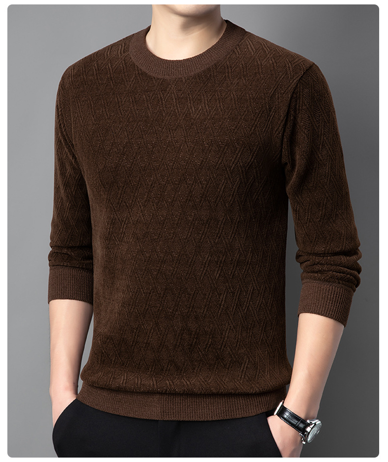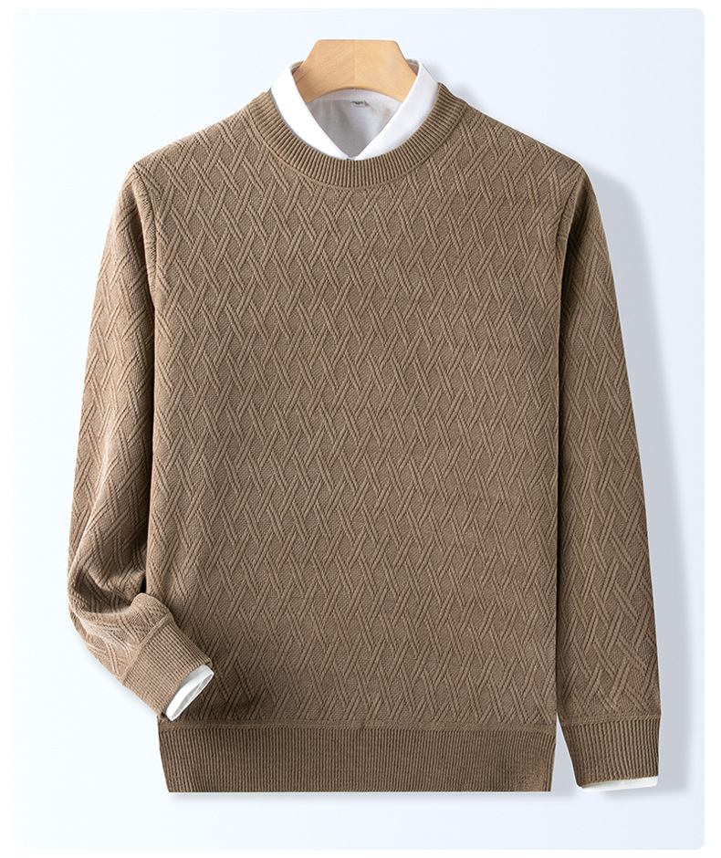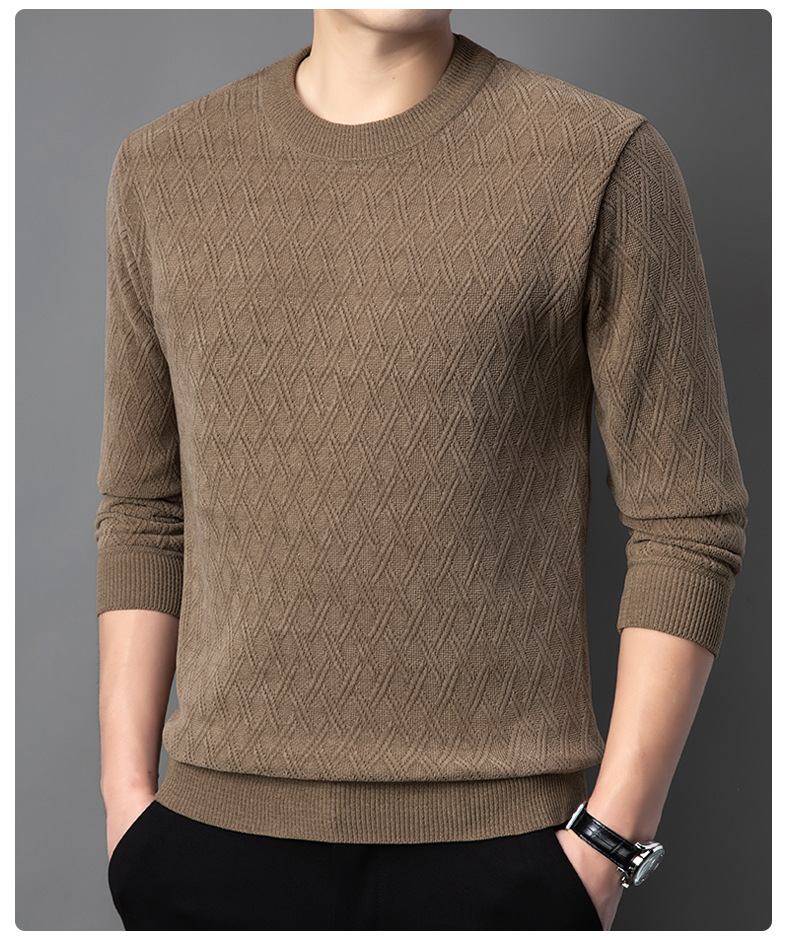 겨울 기모 두꺼운 크루 넥 스웨터 남자 캐주얼 따뜻한 내복 아빠 올 매치 다이아몬드 자카드 스웨터