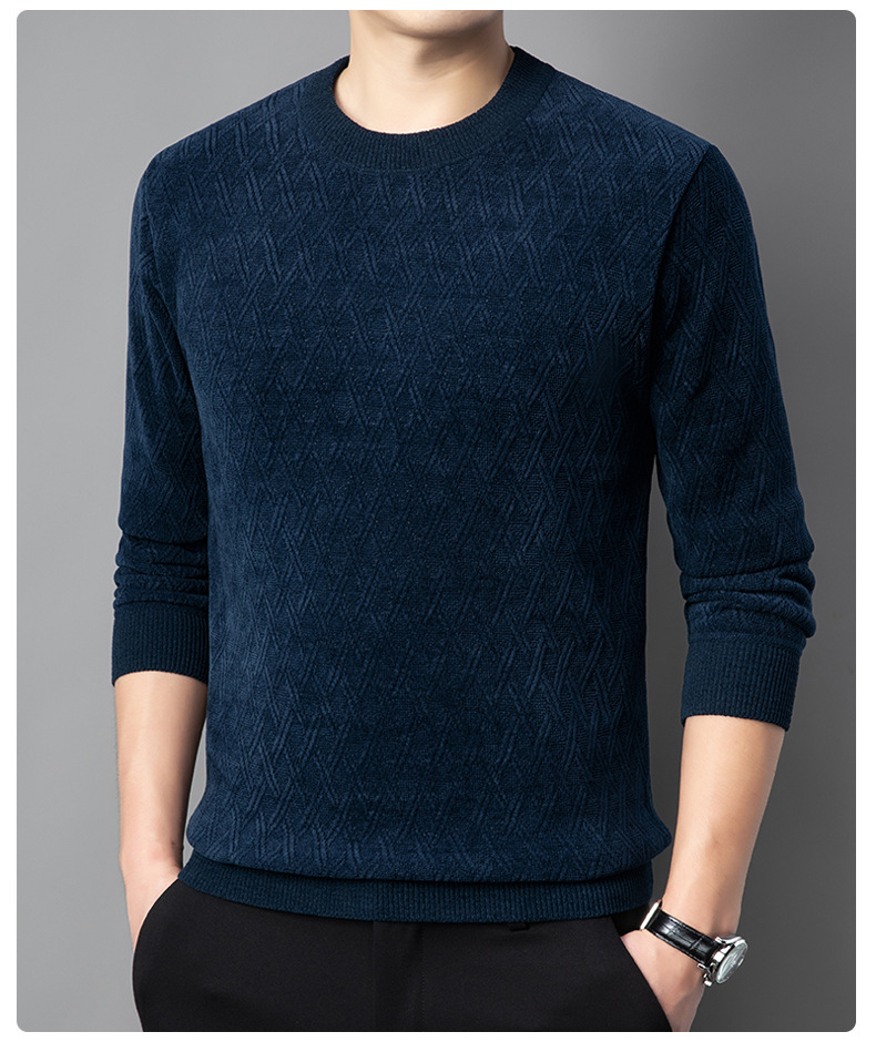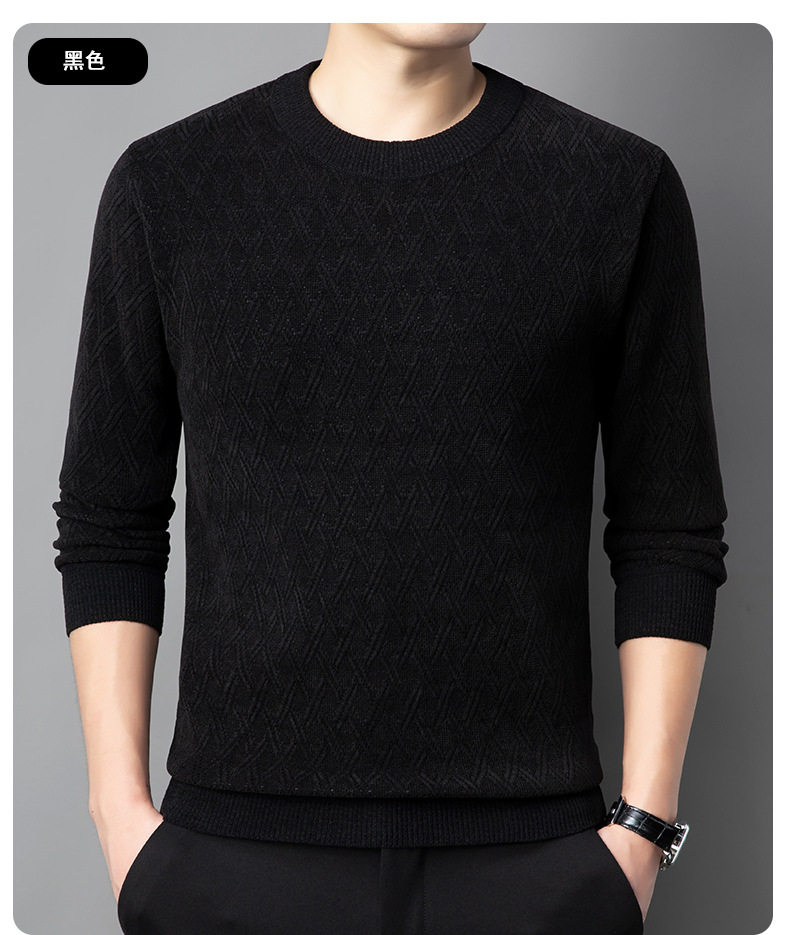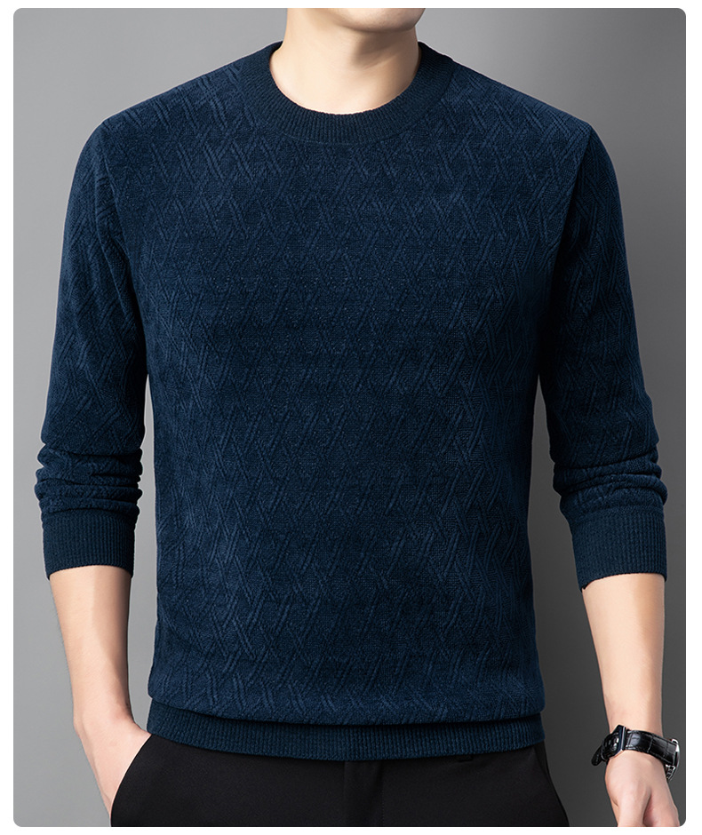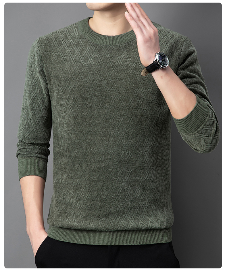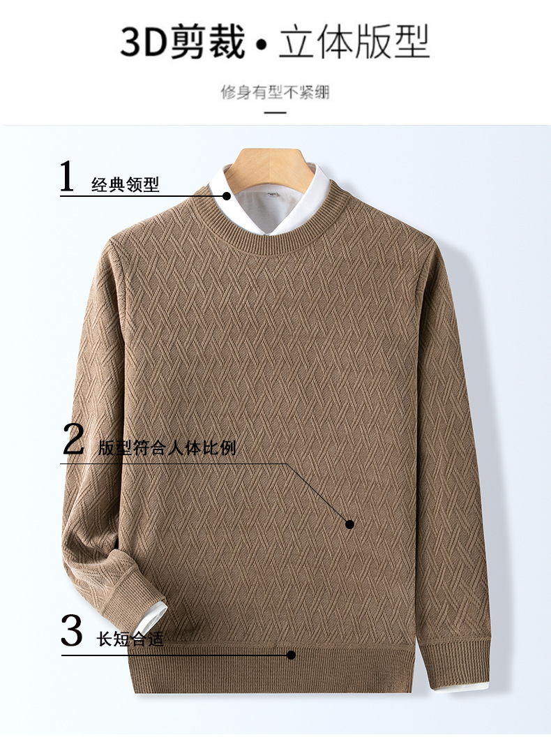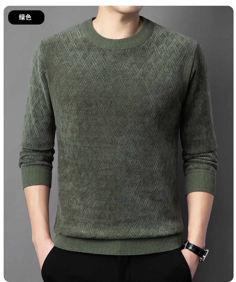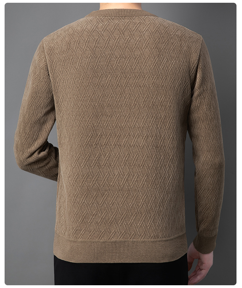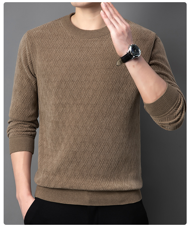 겨울 기모 두꺼운 크루 넥 스웨터 남자 캐주얼 따뜻한 내복 아빠 올 매치 다이아몬드 자카드 스웨터