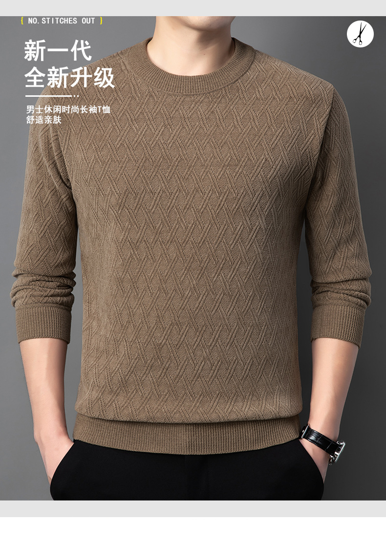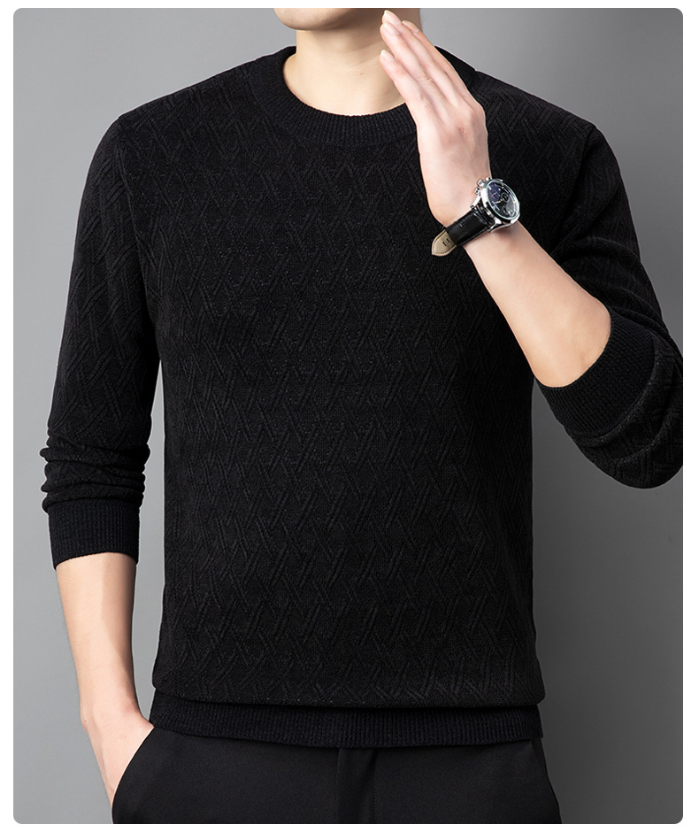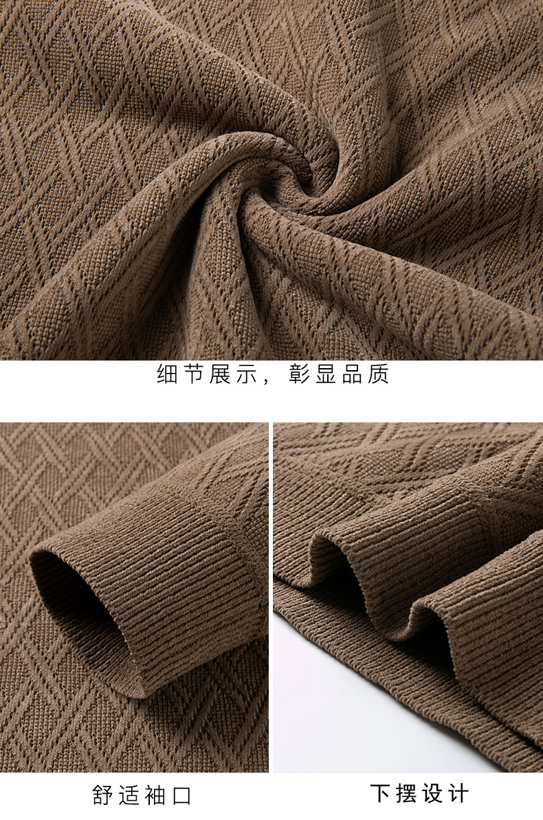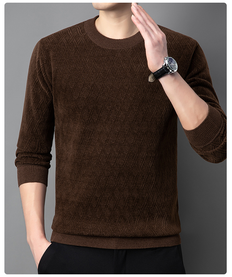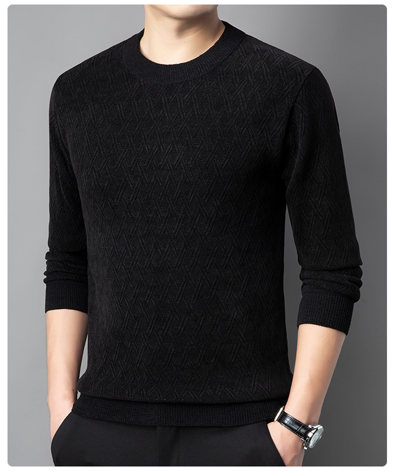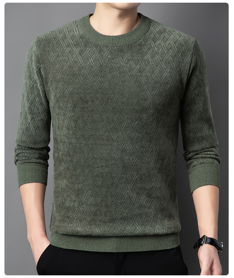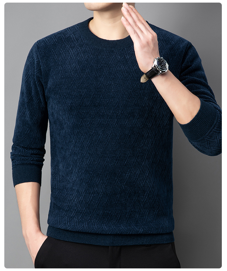 겨울 기모 두꺼운 크루 넥 스웨터 남자 캐주얼 따뜻한 내복 아빠 올 매치 다이아몬드 자카드 스웨터